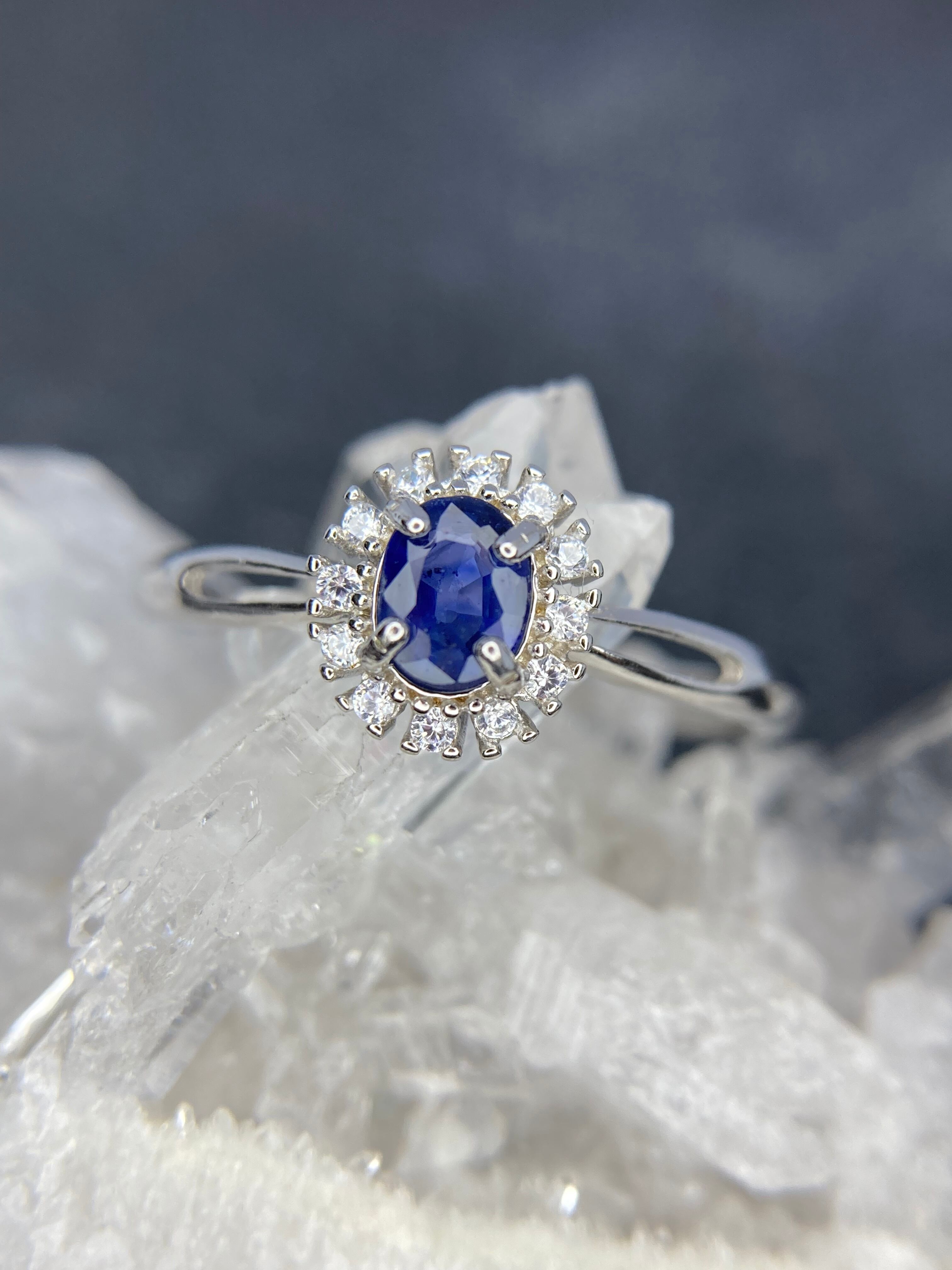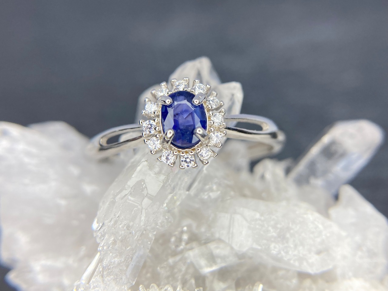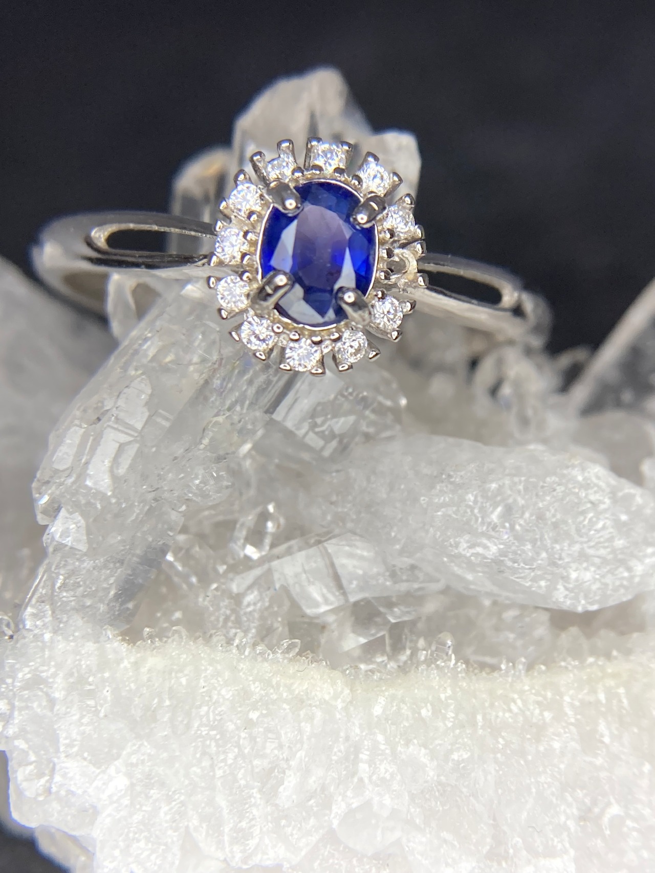 小さなジルコニアたちがサファイアの輝きを引き立てます。