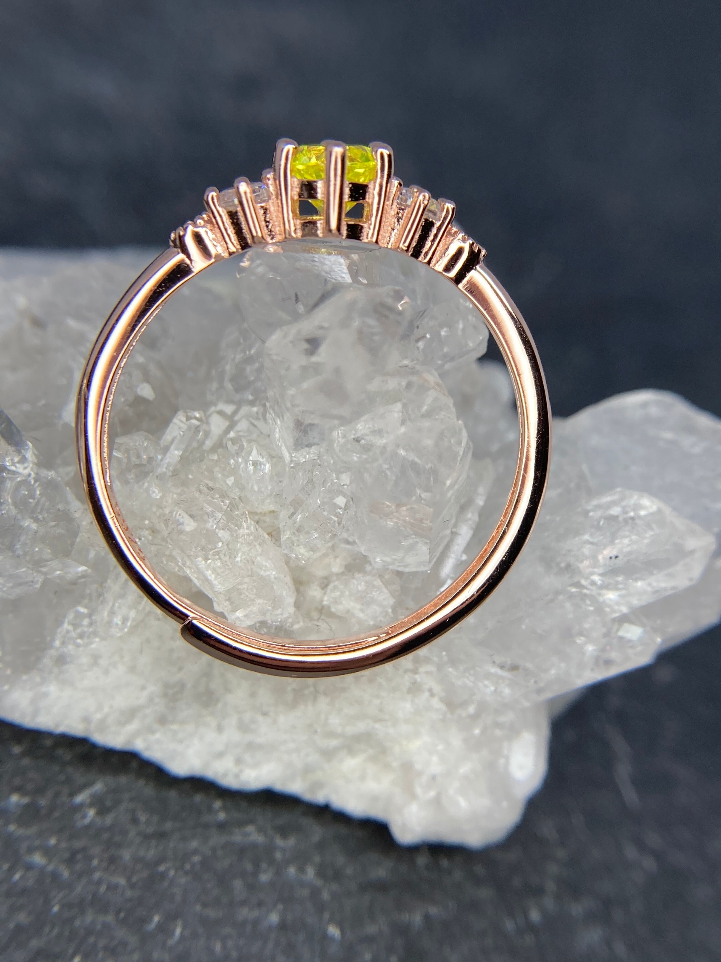 まるで蛍光しているかのような美しいビタミンイエローが菊の花のように鮮やかに咲き、遠くから見ても目立つリングです。