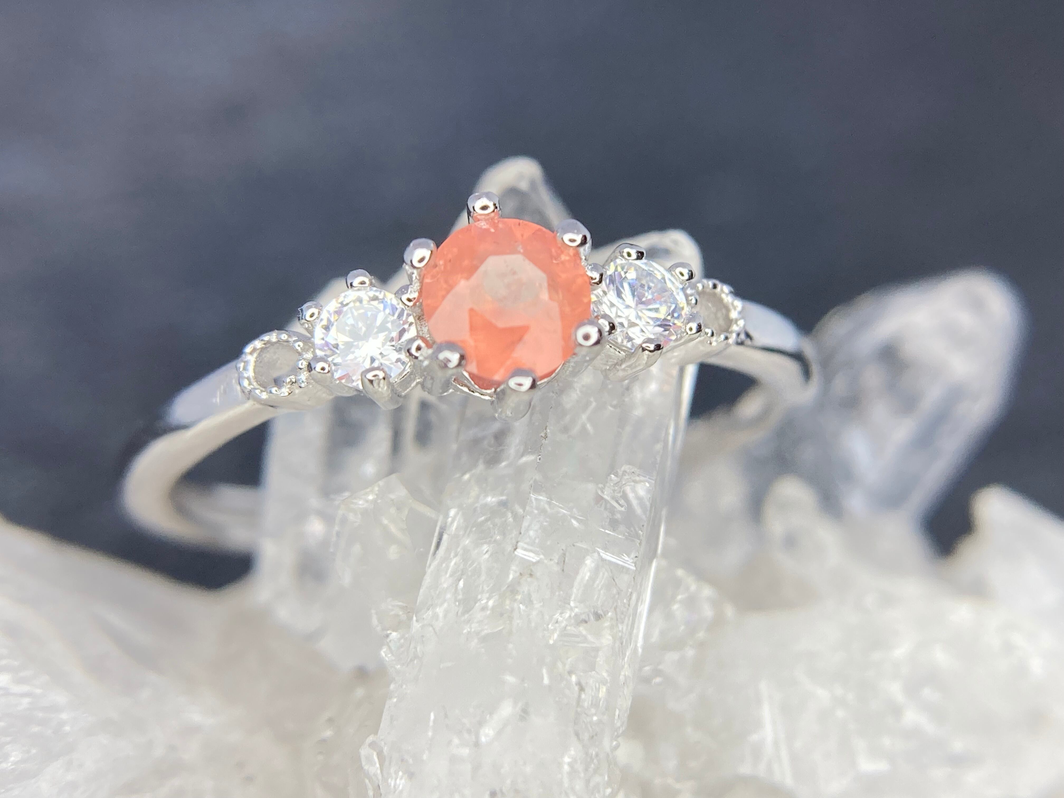 両端のジルコニアがロードクロサイトの美しい輝きをより一層引き立て、キラキラと輝きます。
