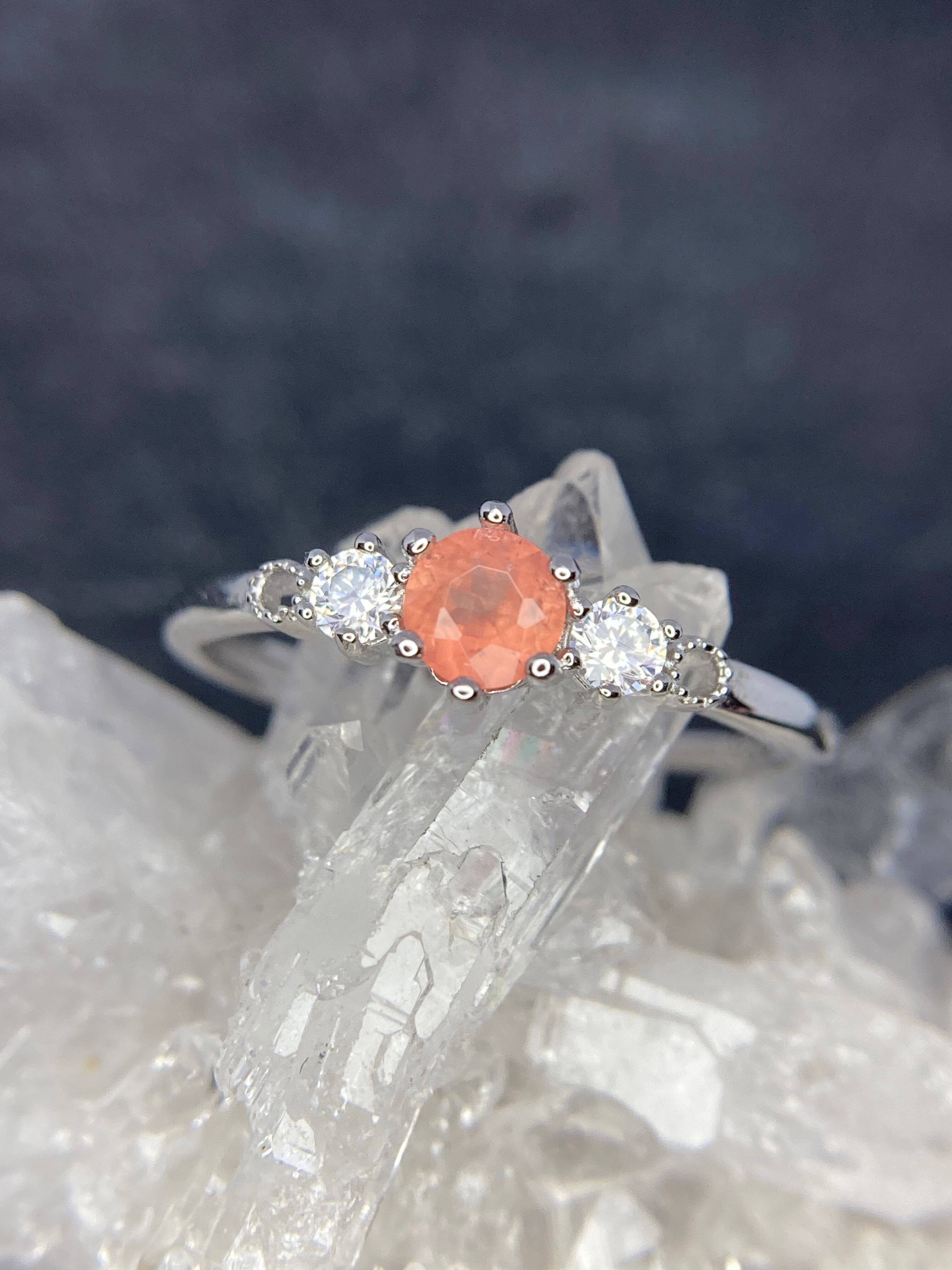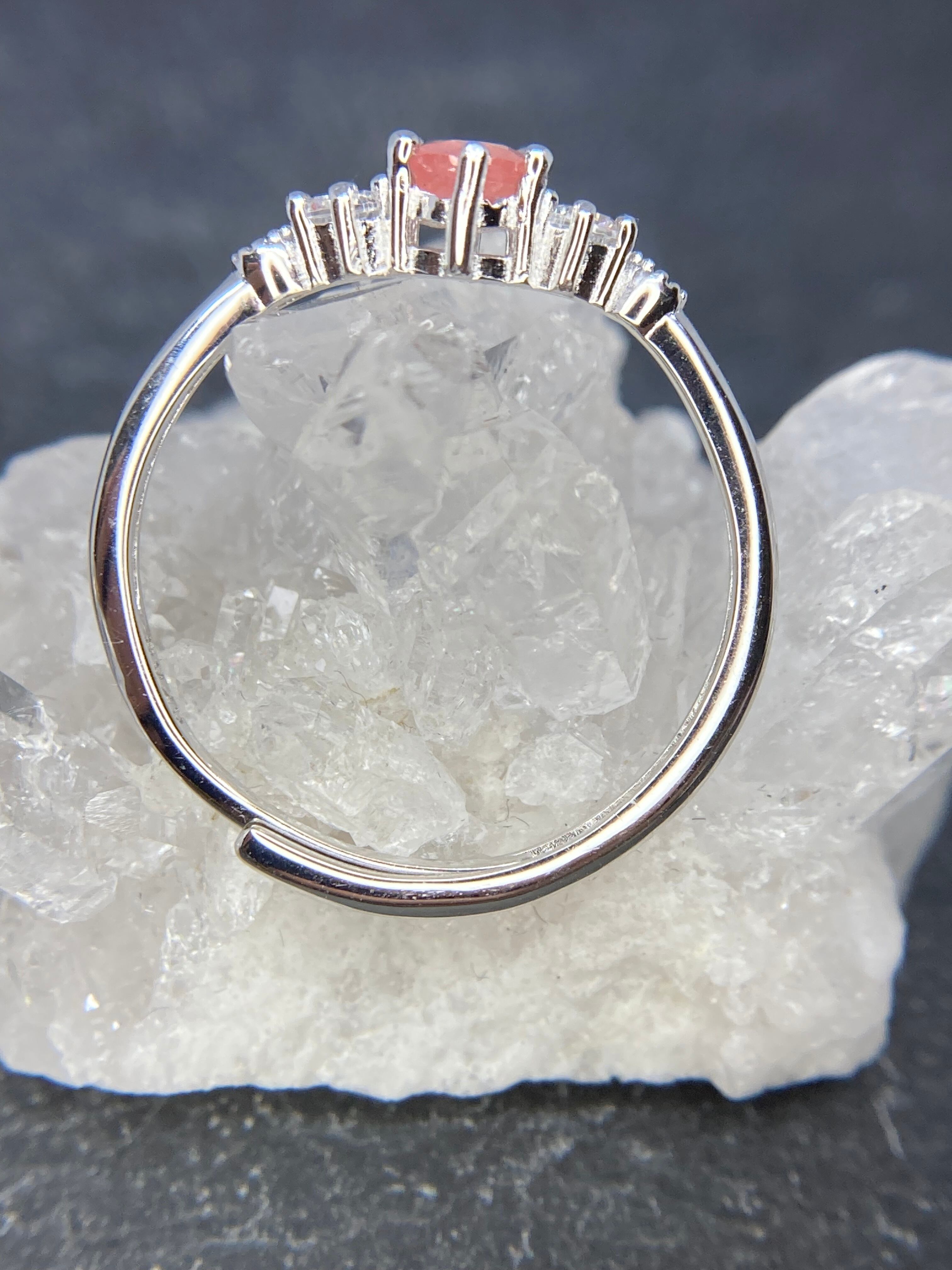 美しくとろけるロードクロサイトを中央に添えた、紫陽花リングができました。