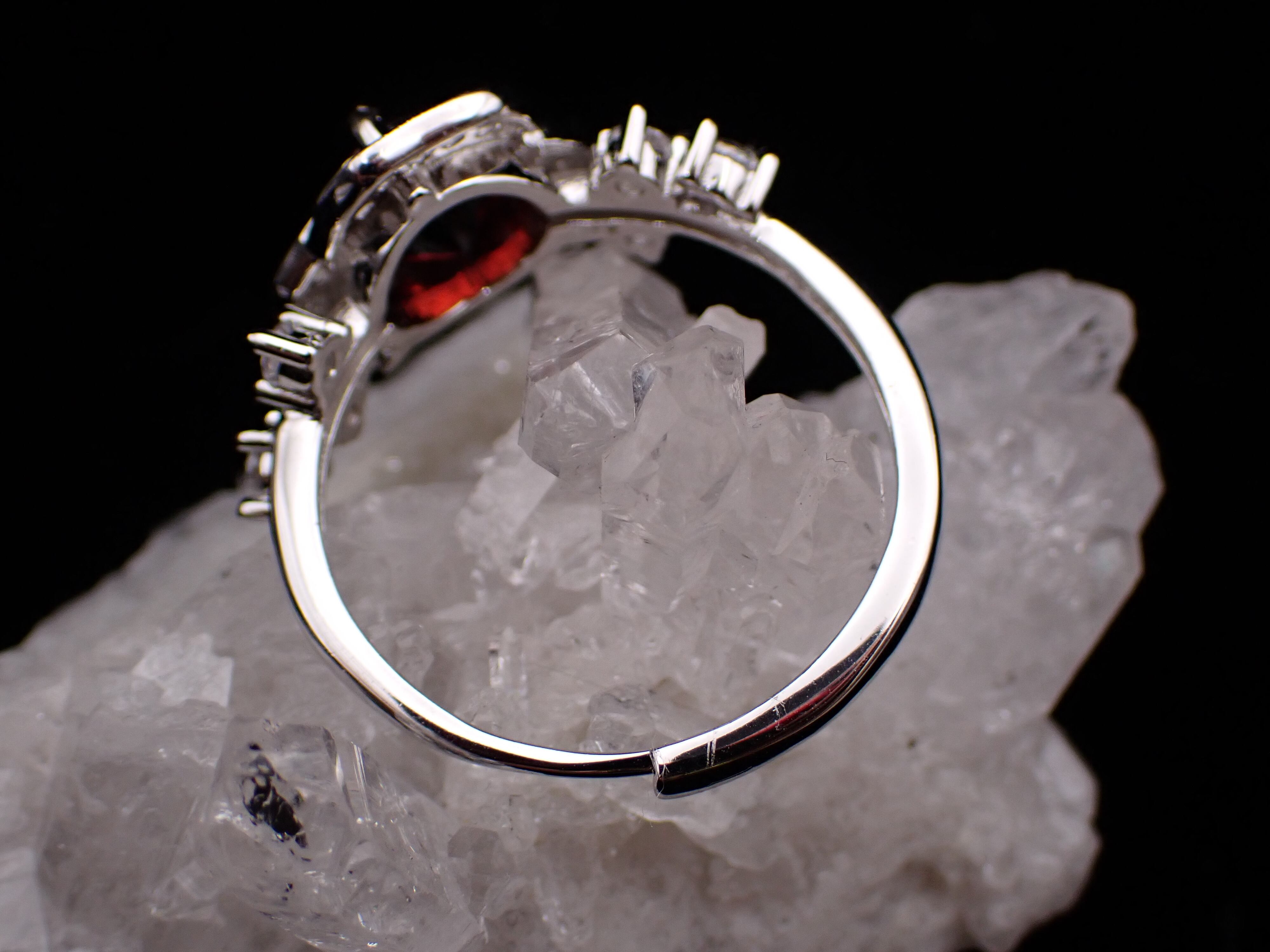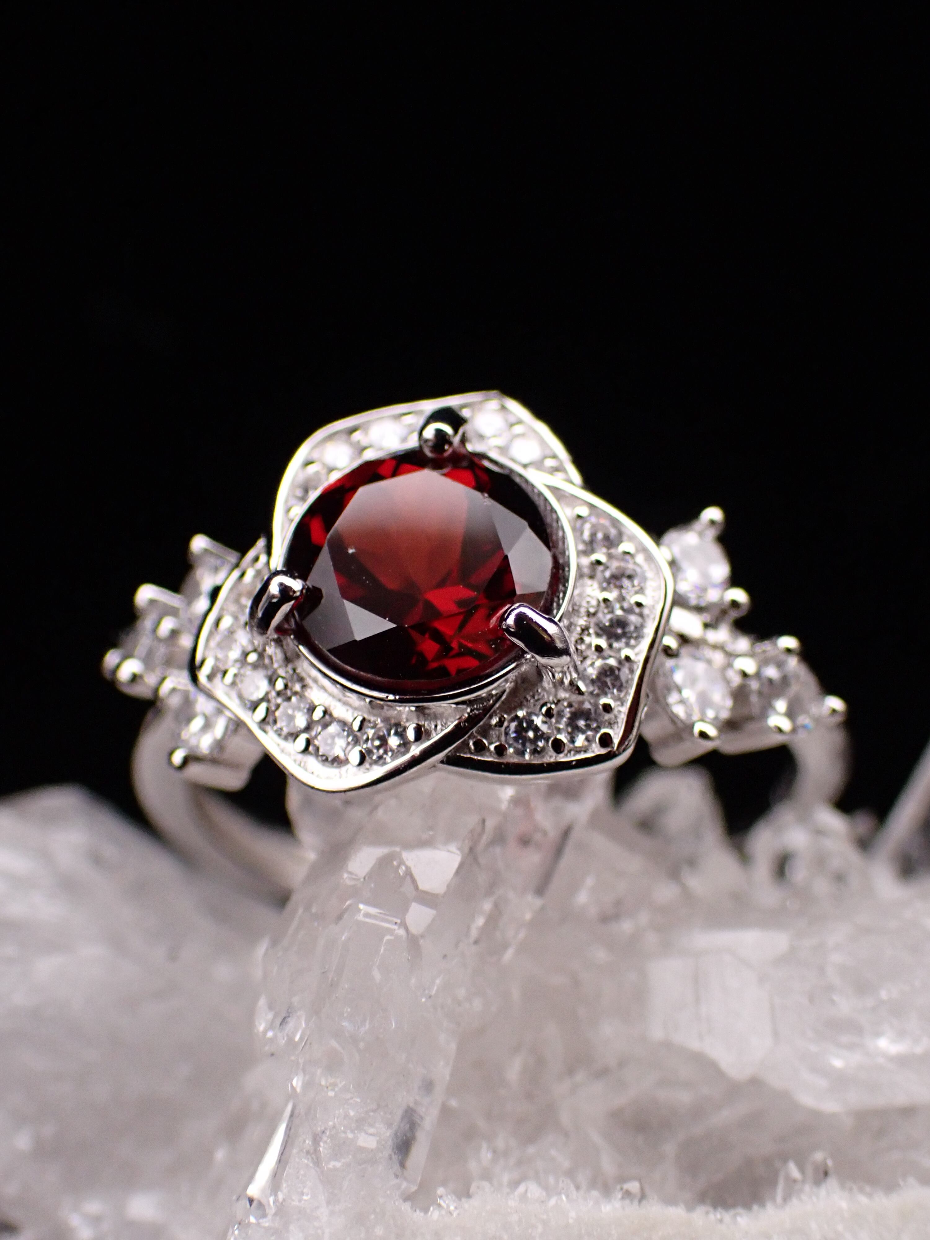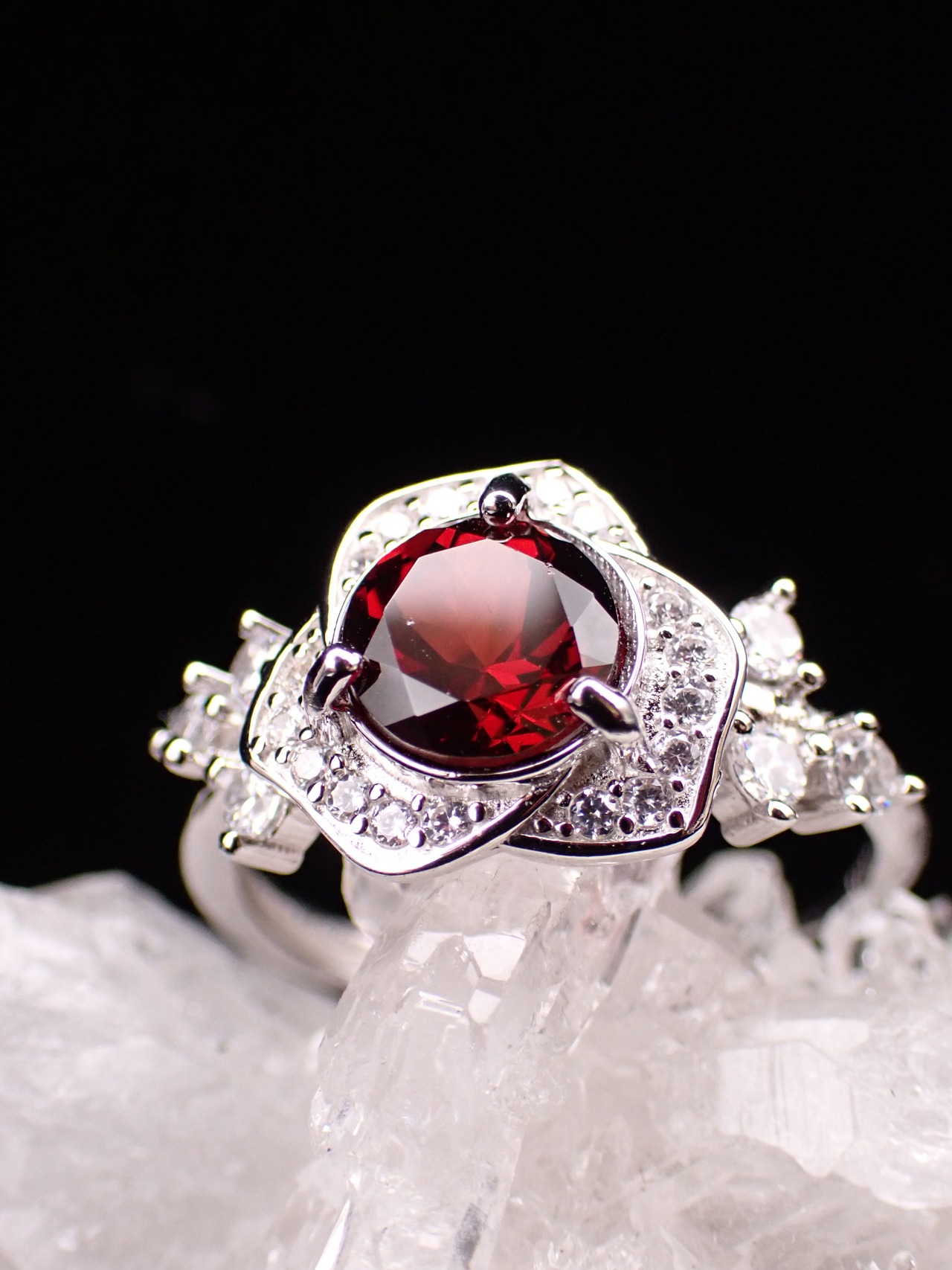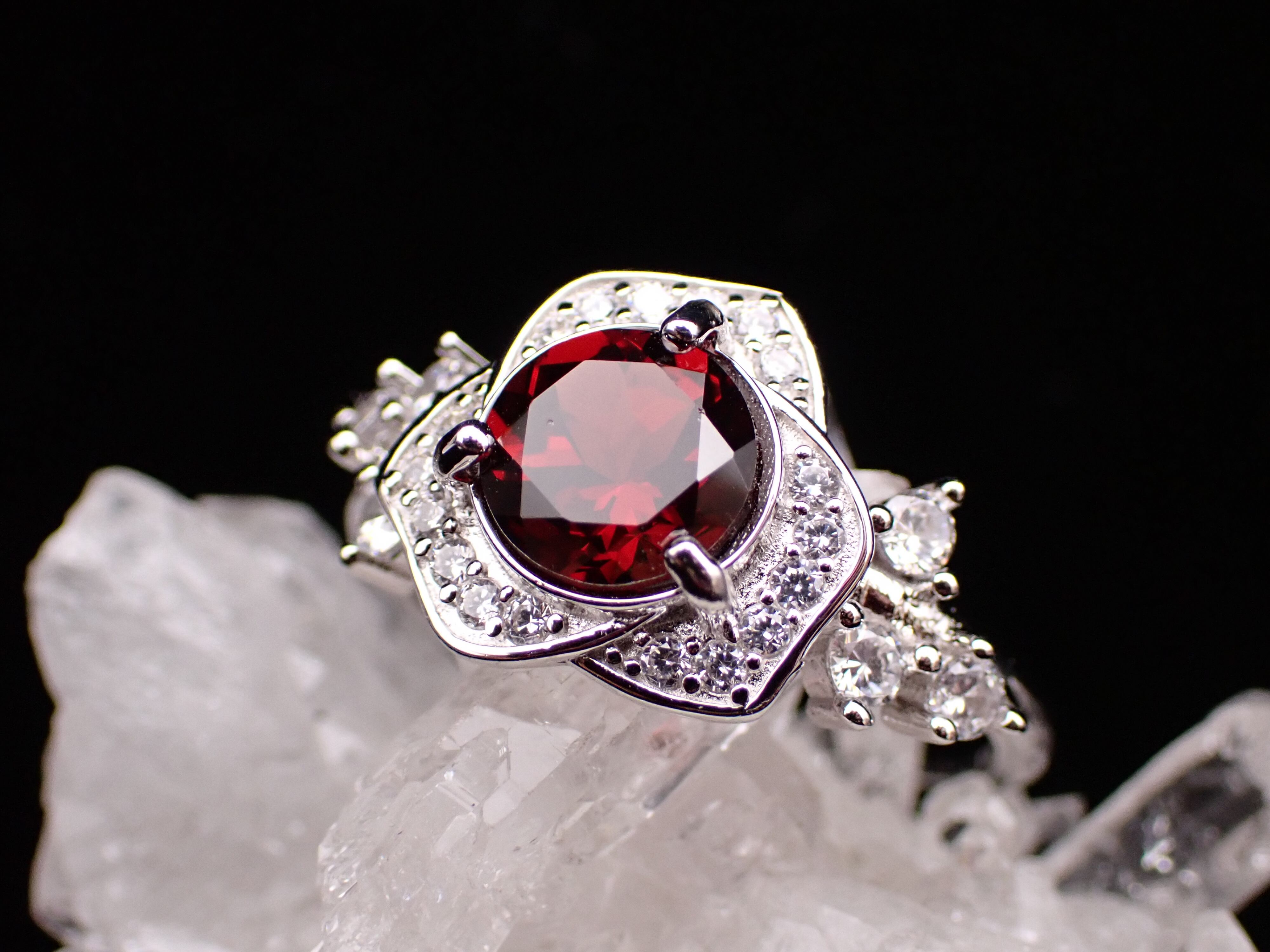 美しいジルコニアの中に7mmの大きなガーネットが豪華に輝きます。