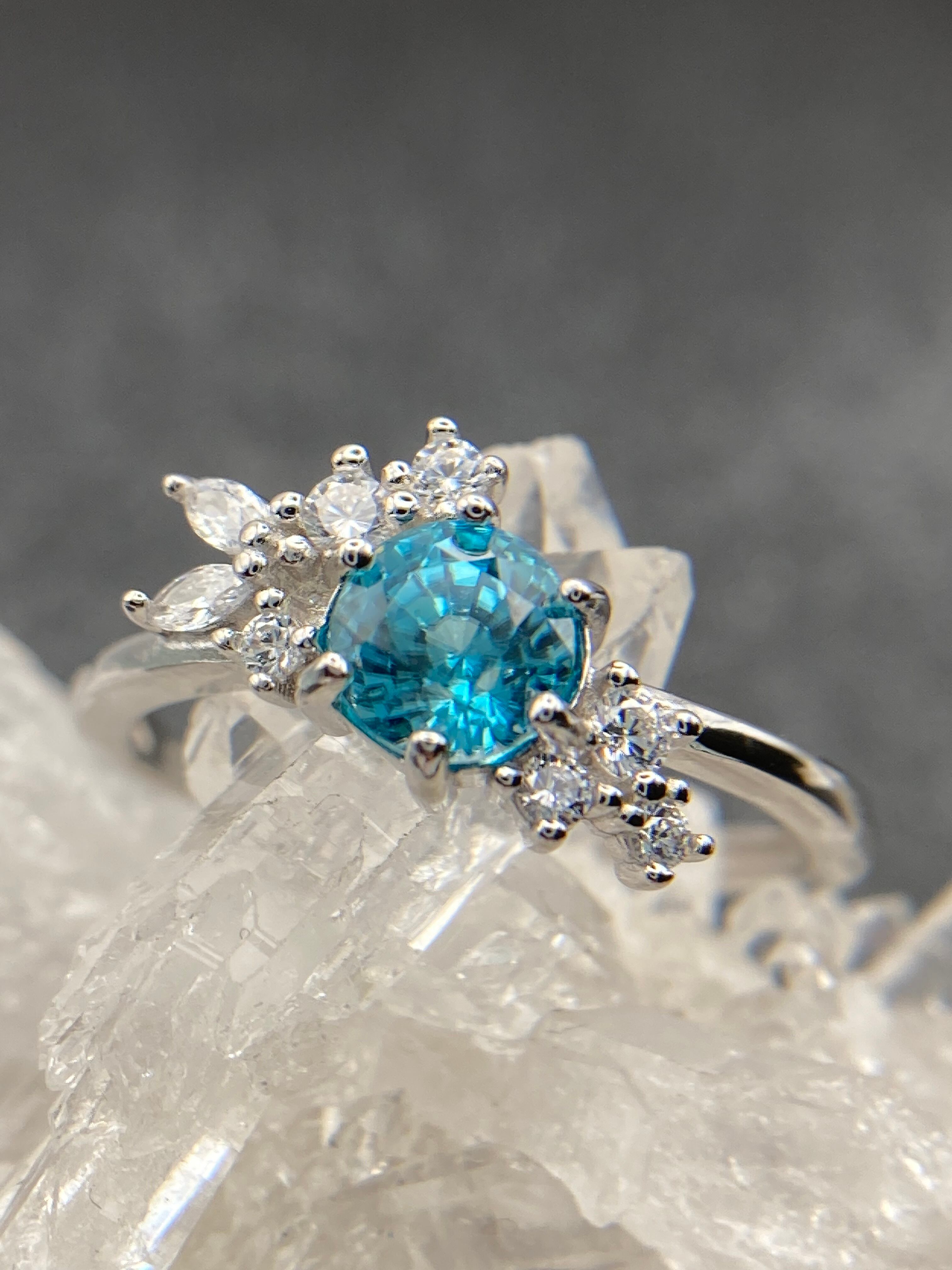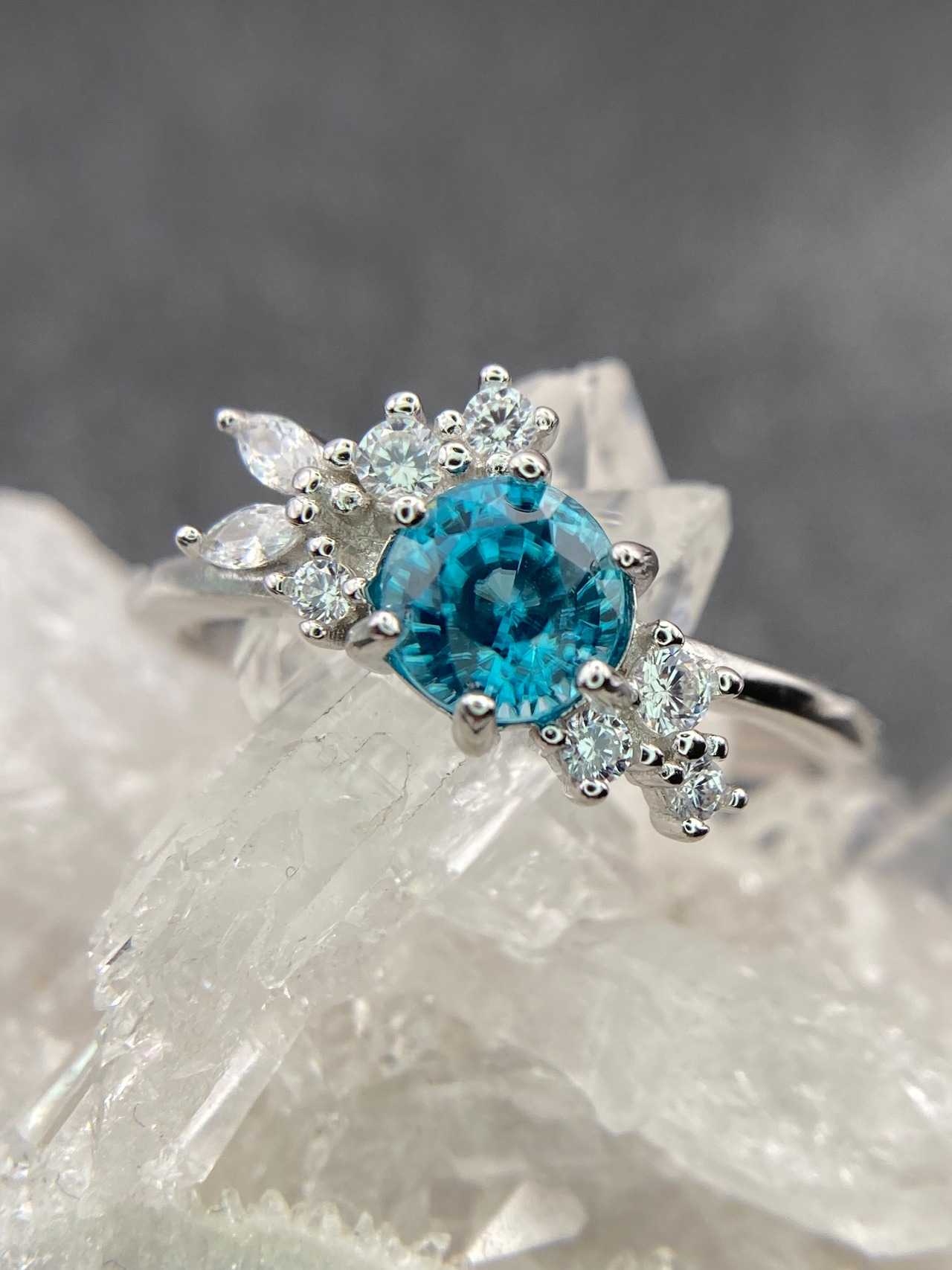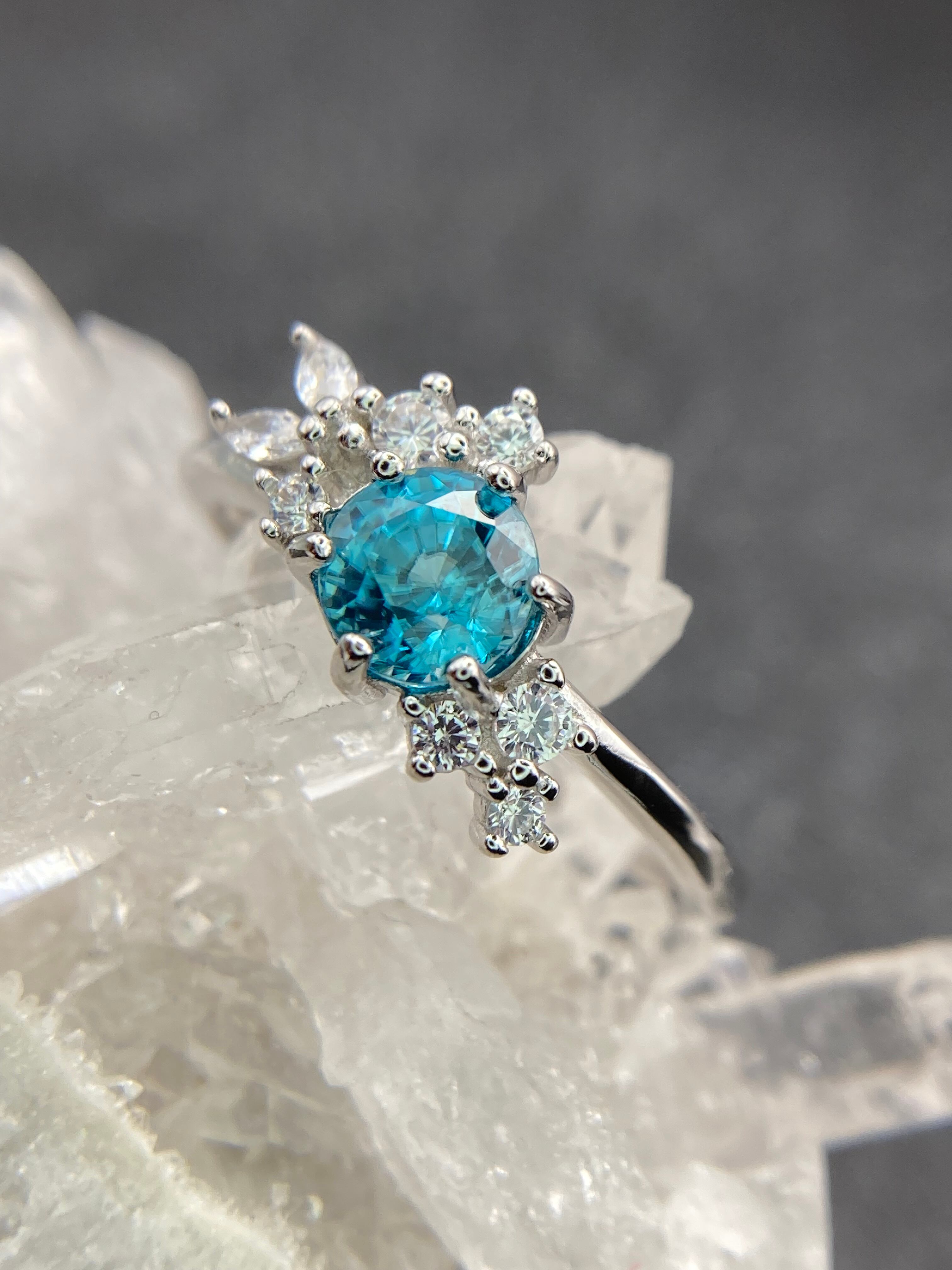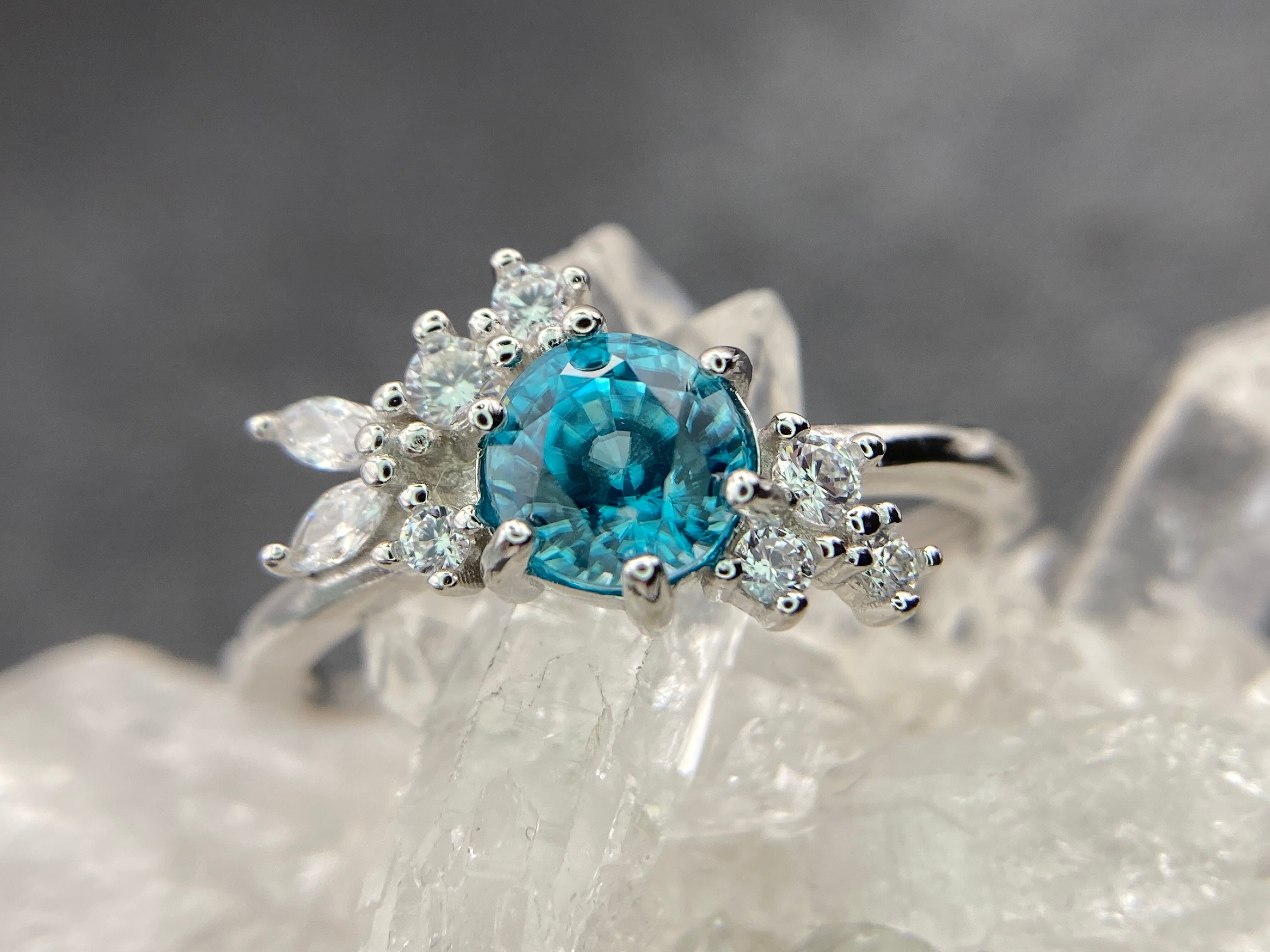 花束の中央に咲き誇る美しいラタナキリブルージルコン。