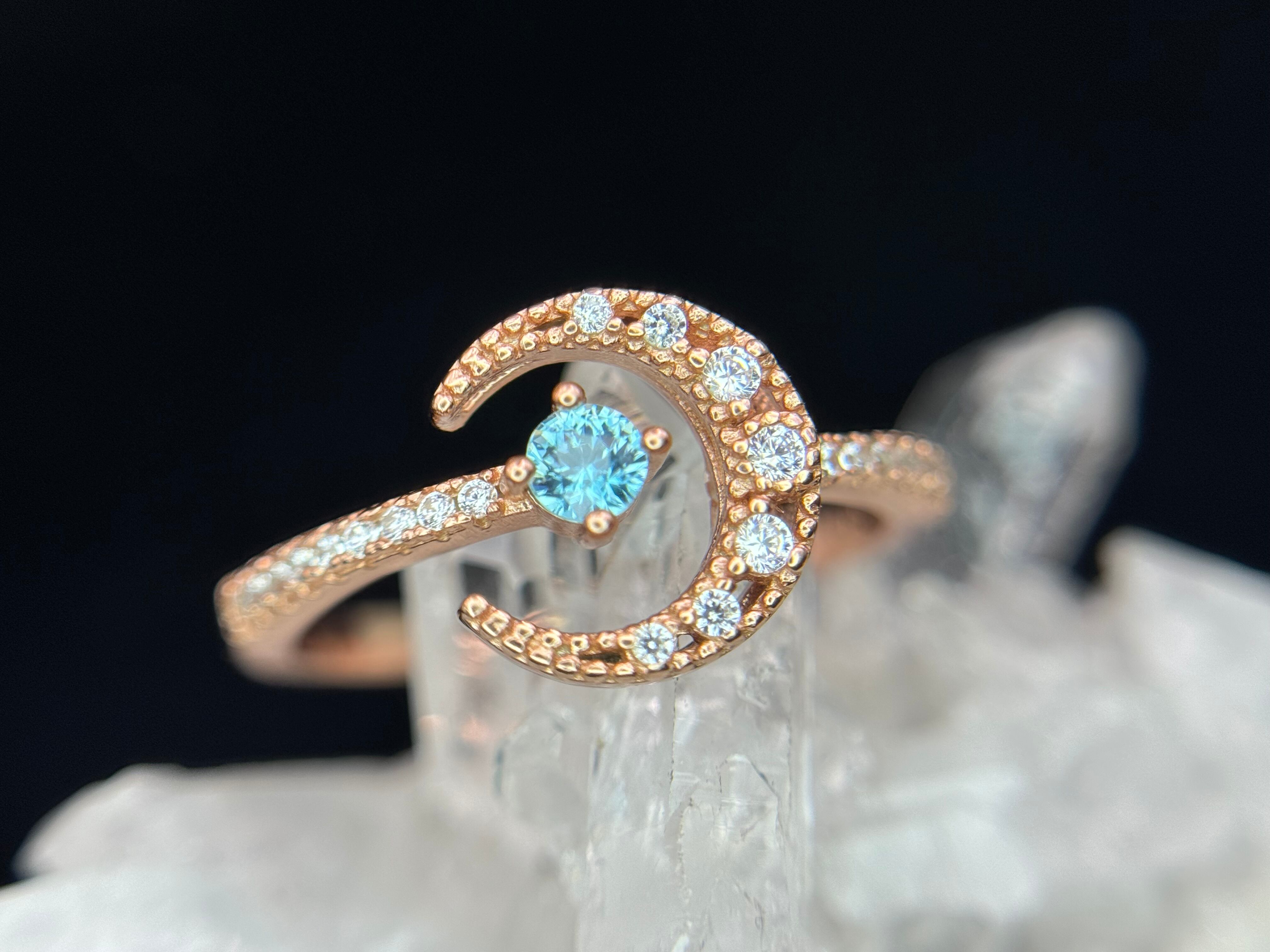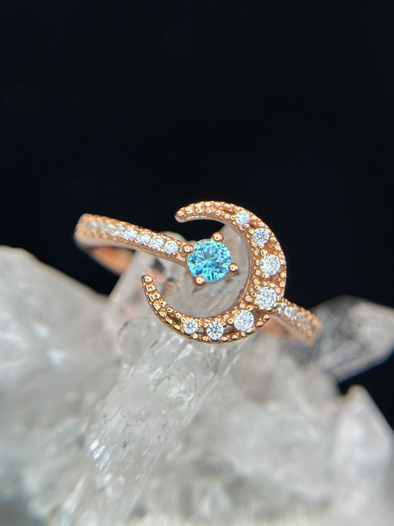 キラキラ煌めく三日月の真ん中には、美しすぎるブルージルコンが輝きます。