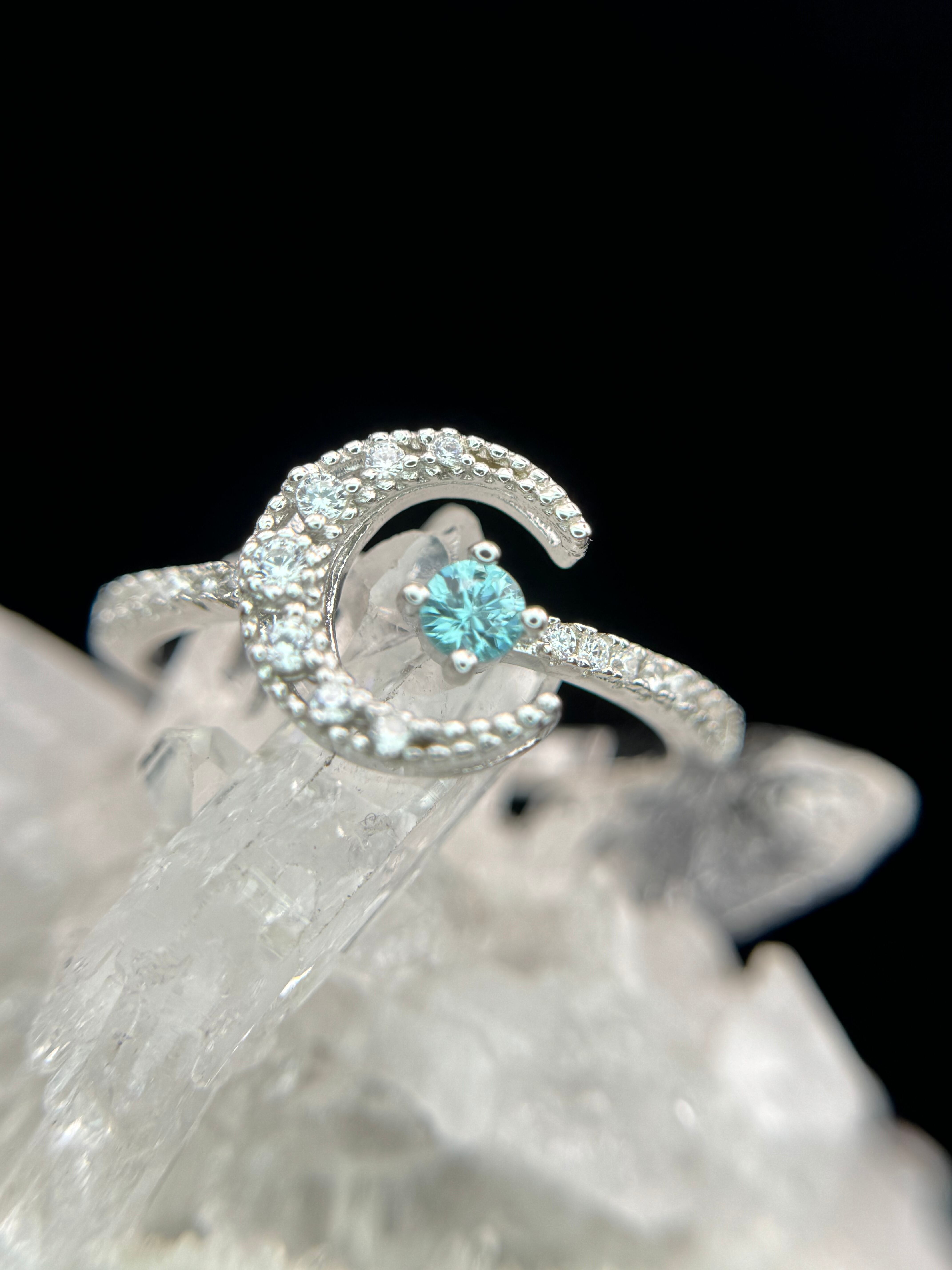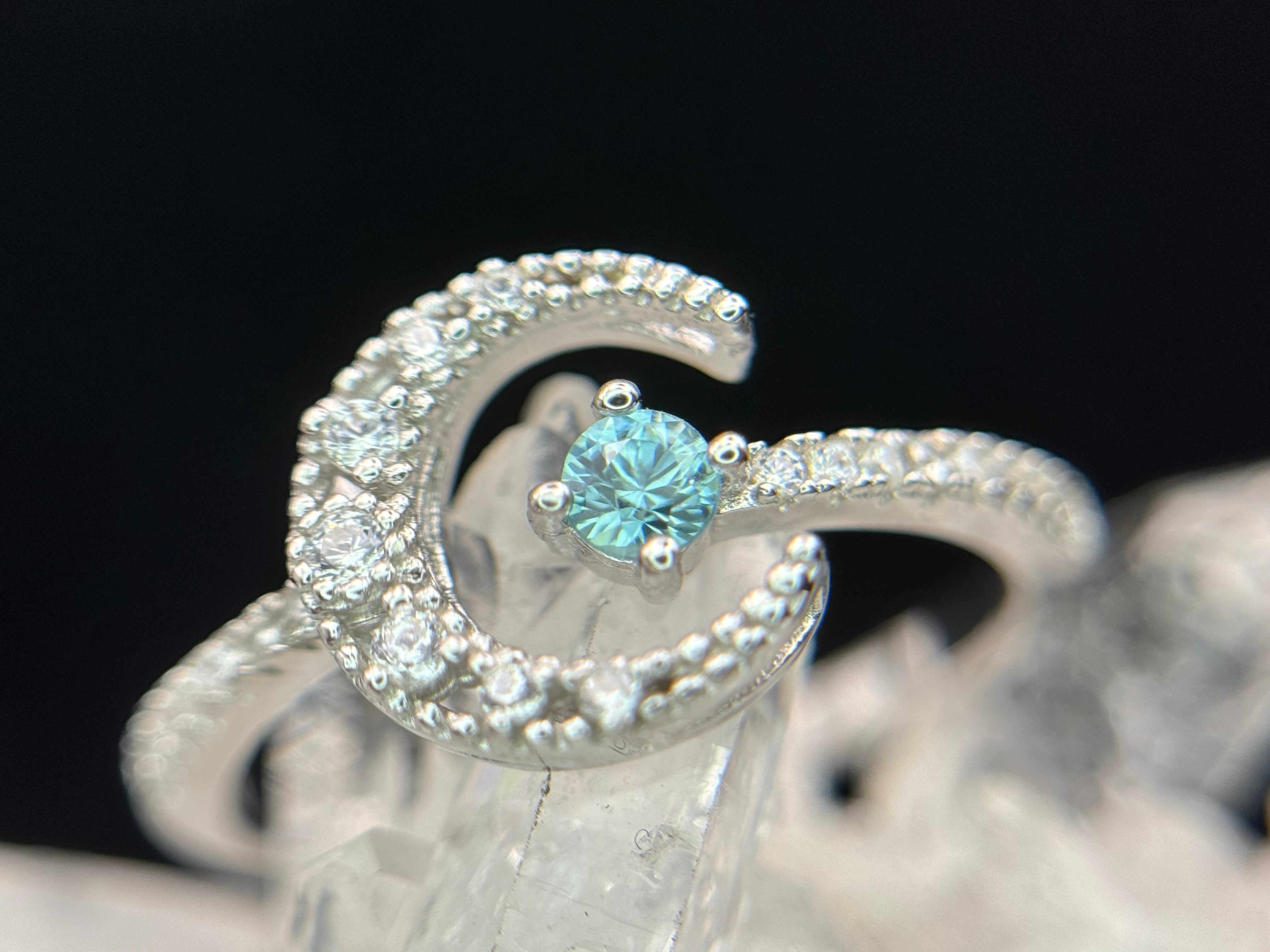 キラキラ煌めく三日月の真ん中には、美しすぎるブルージルコンが輝きます。
