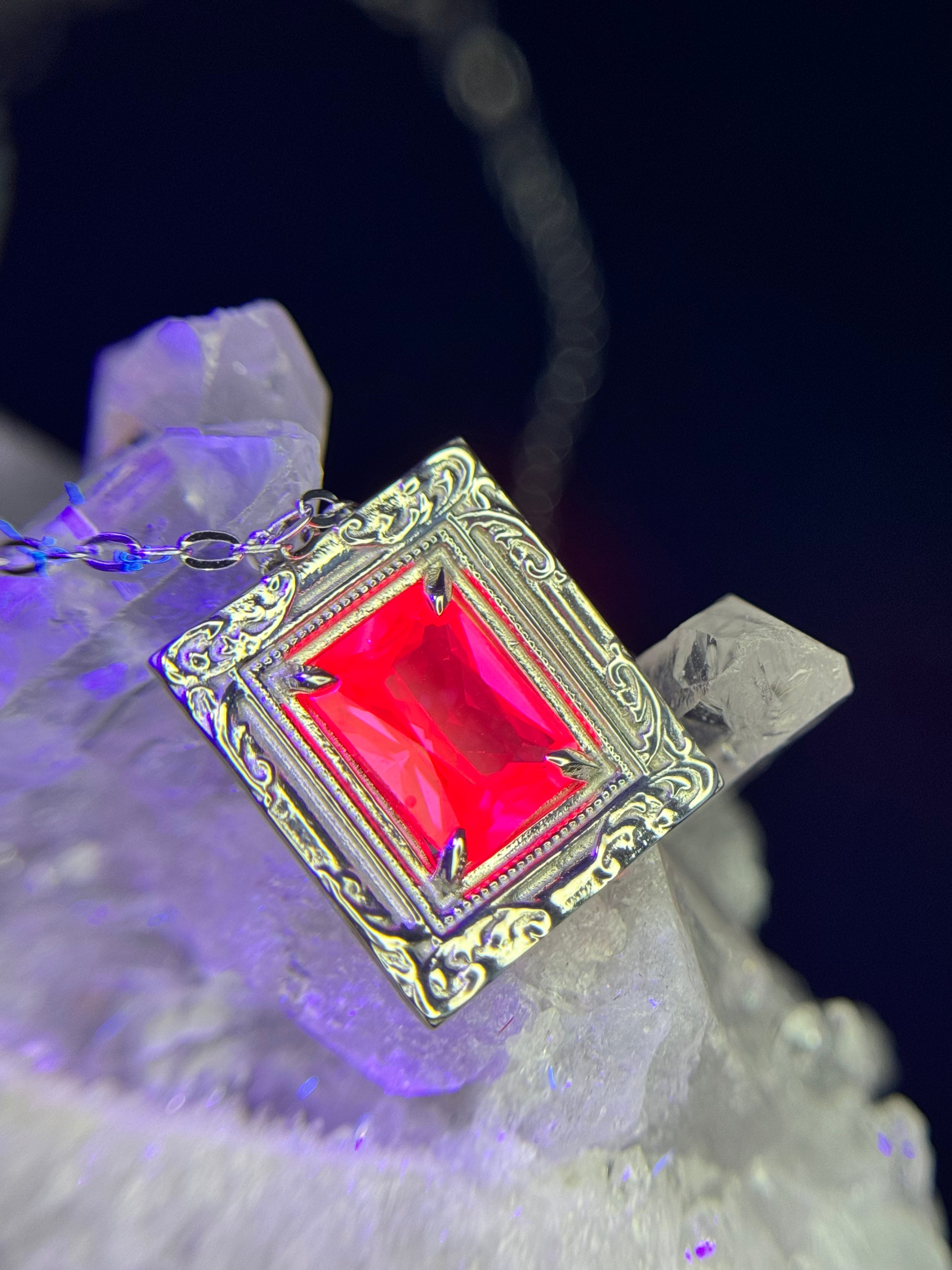【 R.nouveau 】額縁合成ピンクサファイア ペンダント