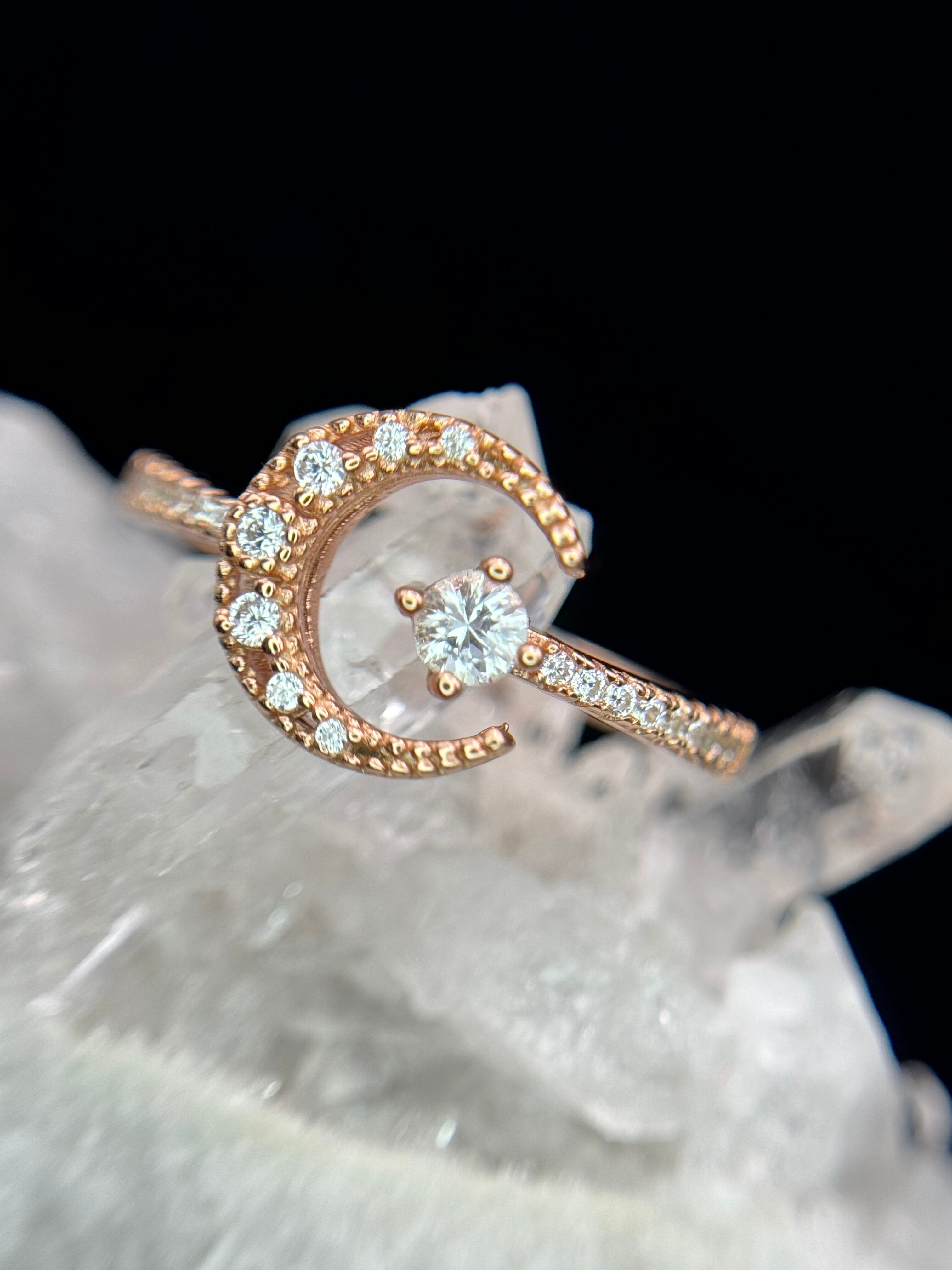 キラキラ煌めく三日月の真ん中には、美しいホワイトサファイアが輝きます。