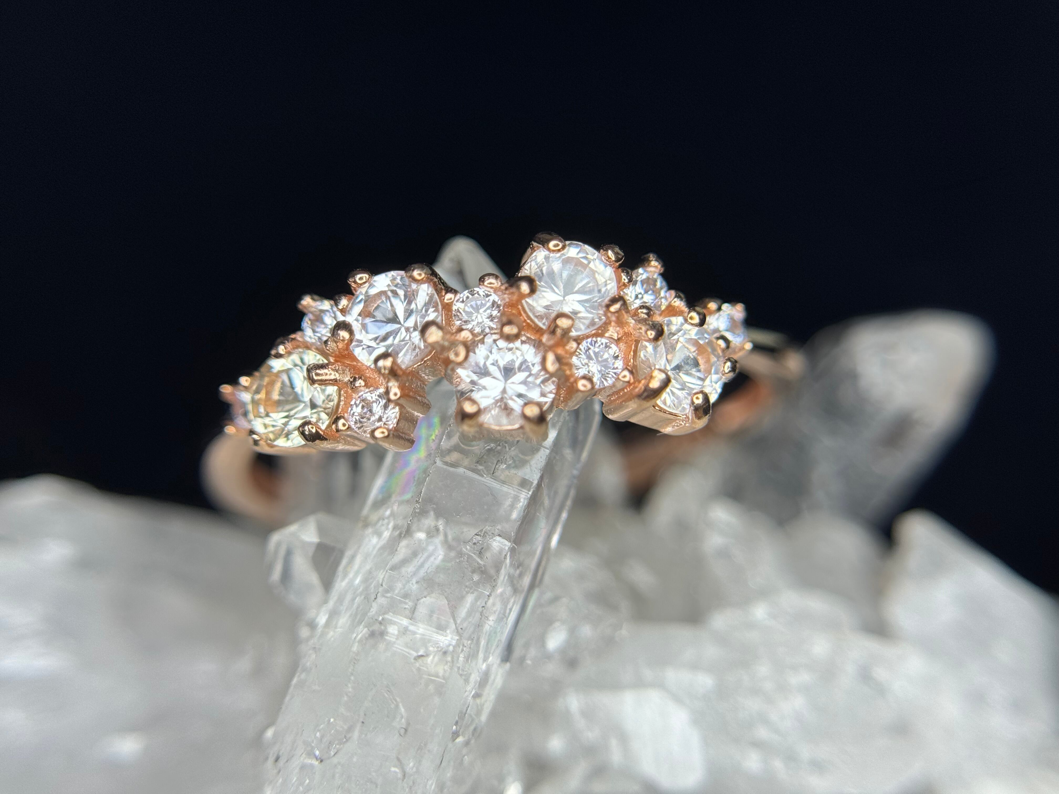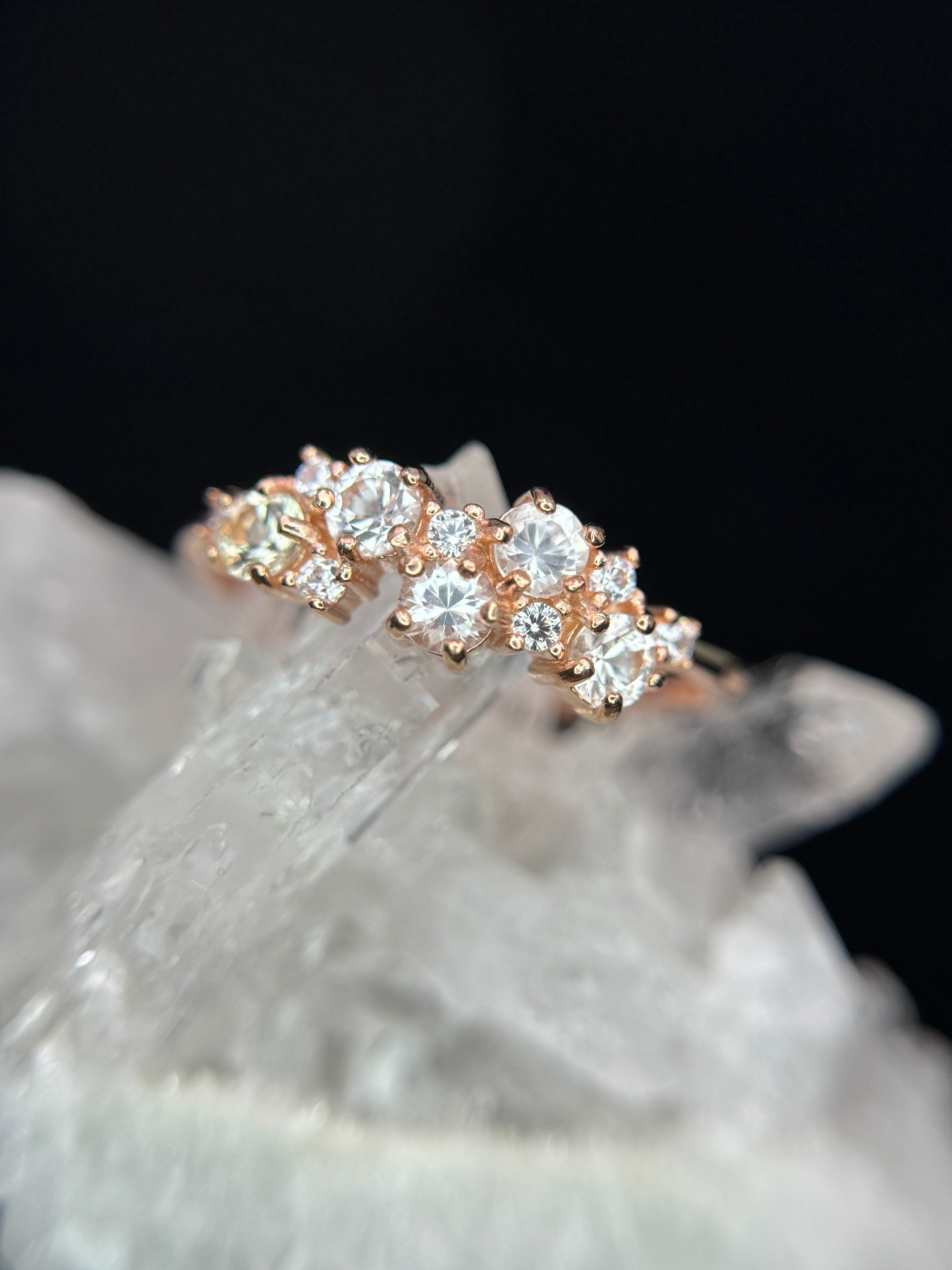 花かんむりのように配置されたホワイトサファイアたちが並んで咲いています。
