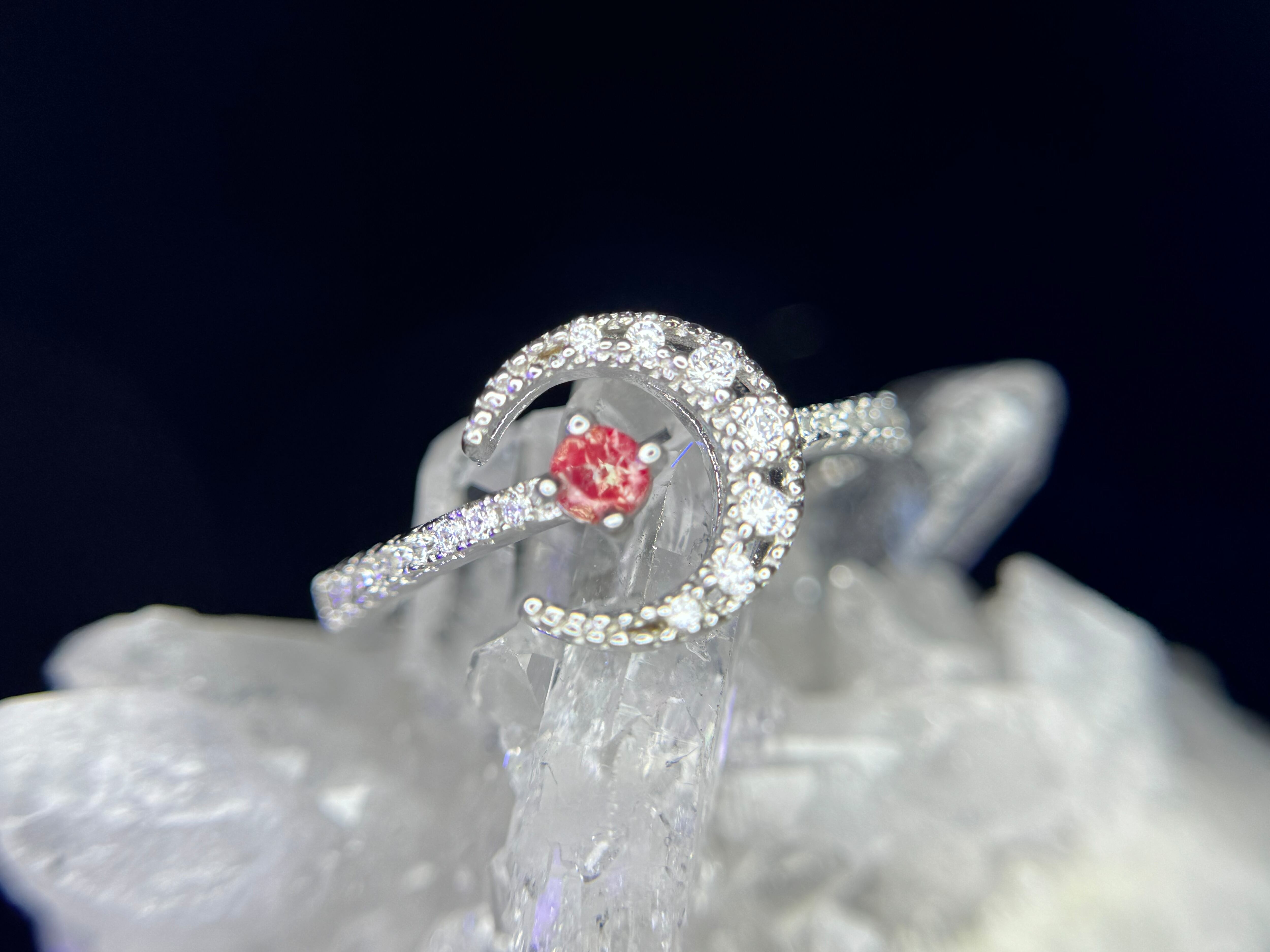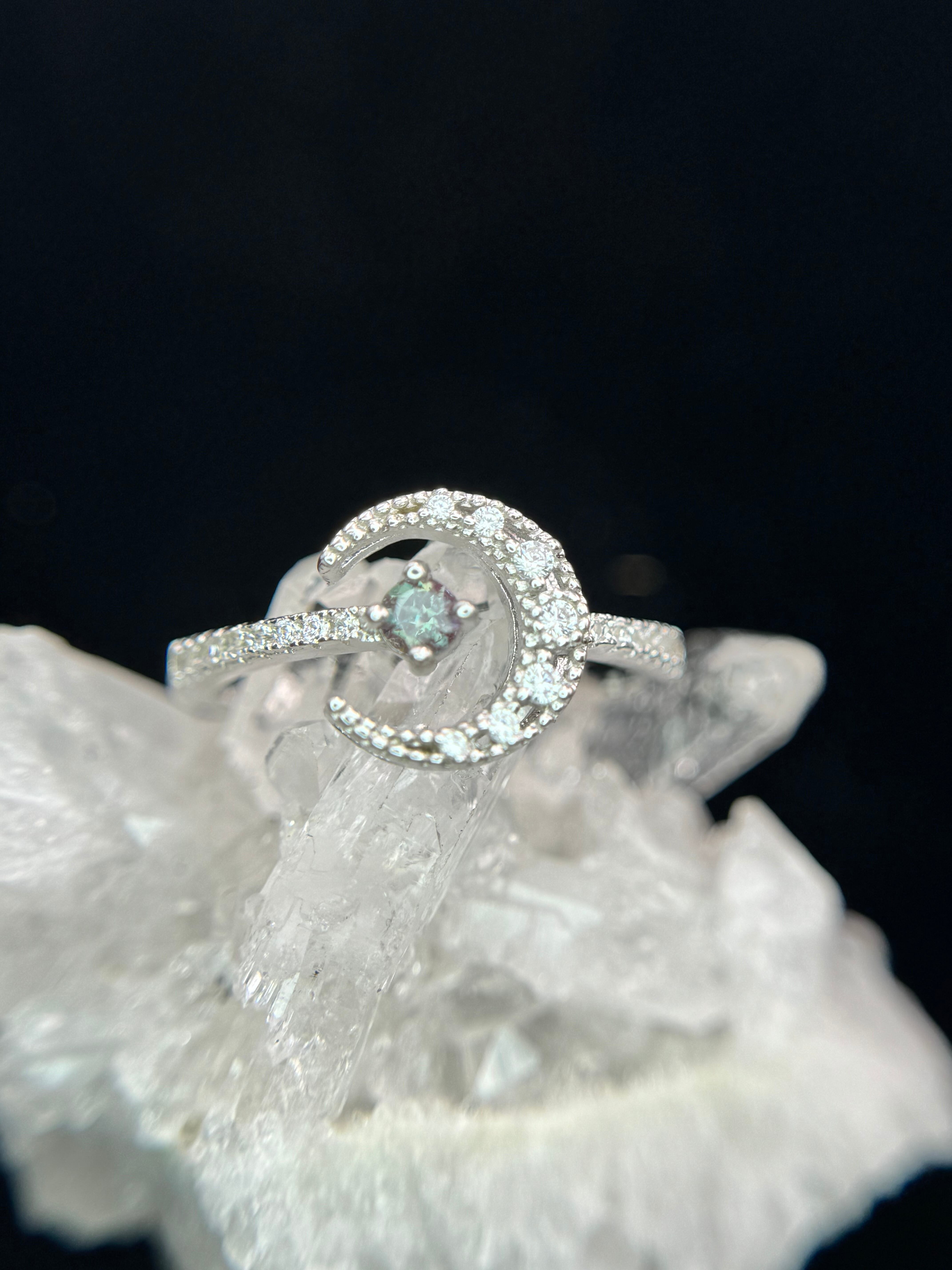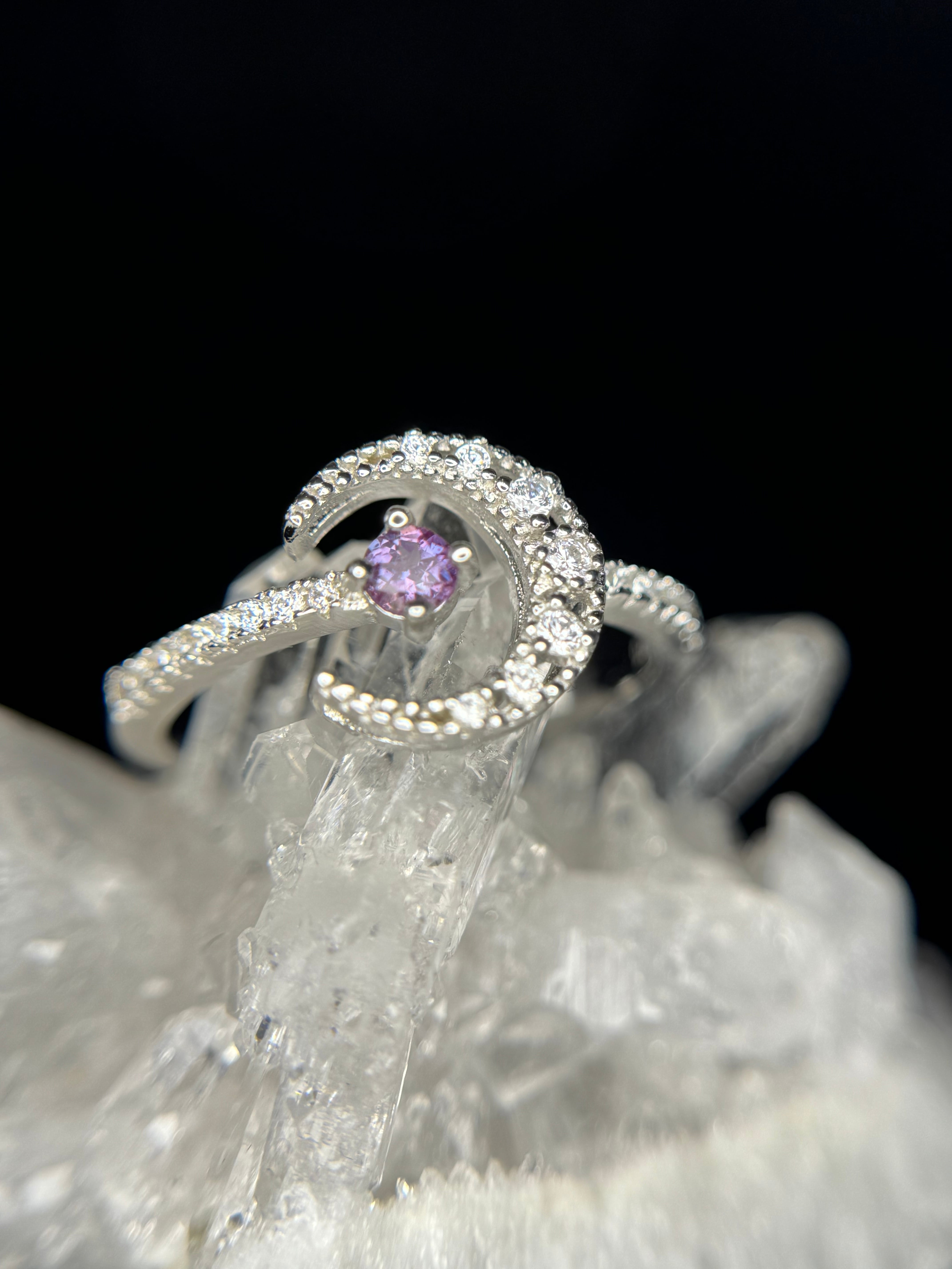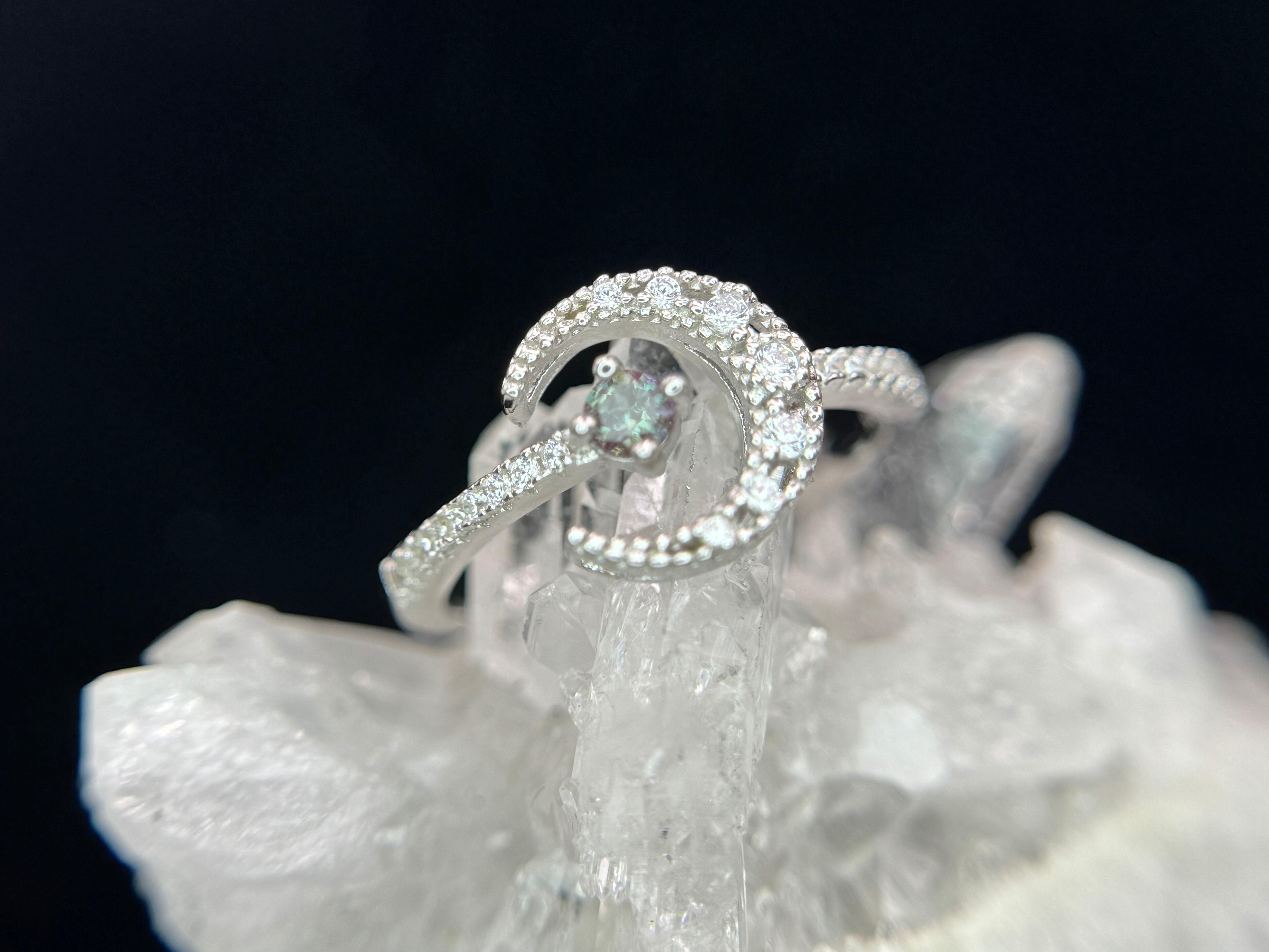 キラキラ煌めく三日月の真ん中には、美しい合成アレキサンドライトが輝きます。