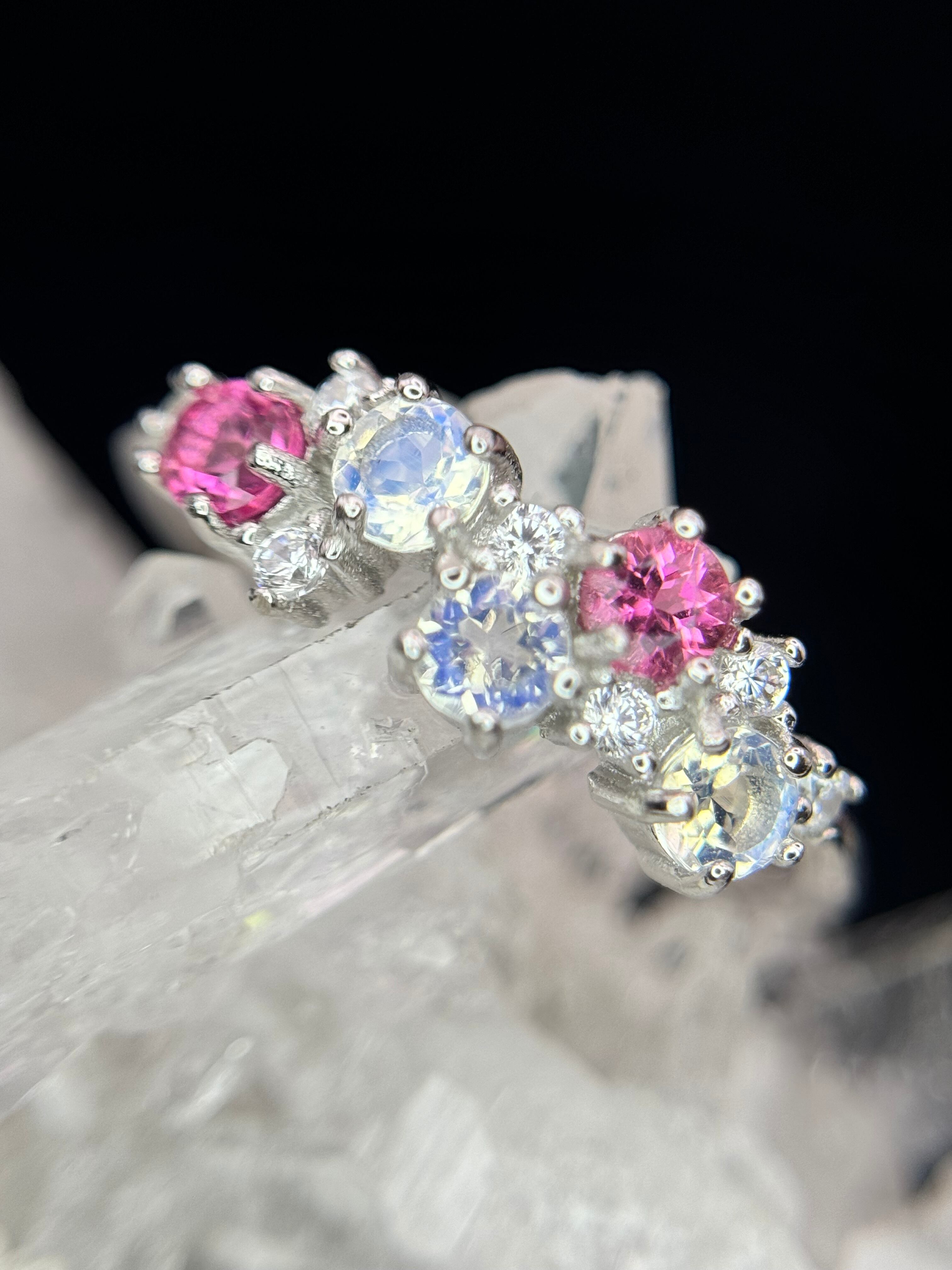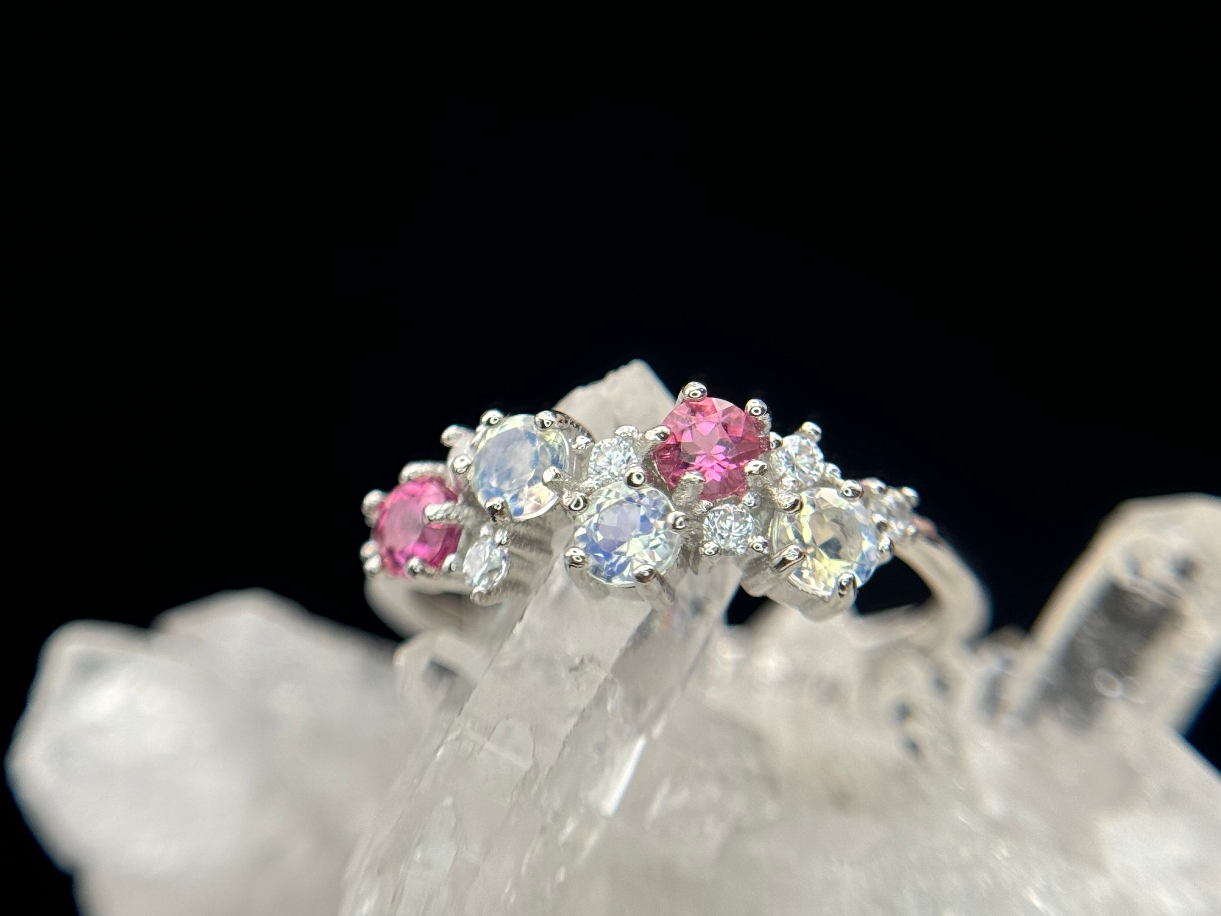 【限定】花かんむりピンクトルマリン&アンデシンラブラドライト フリーリングSV