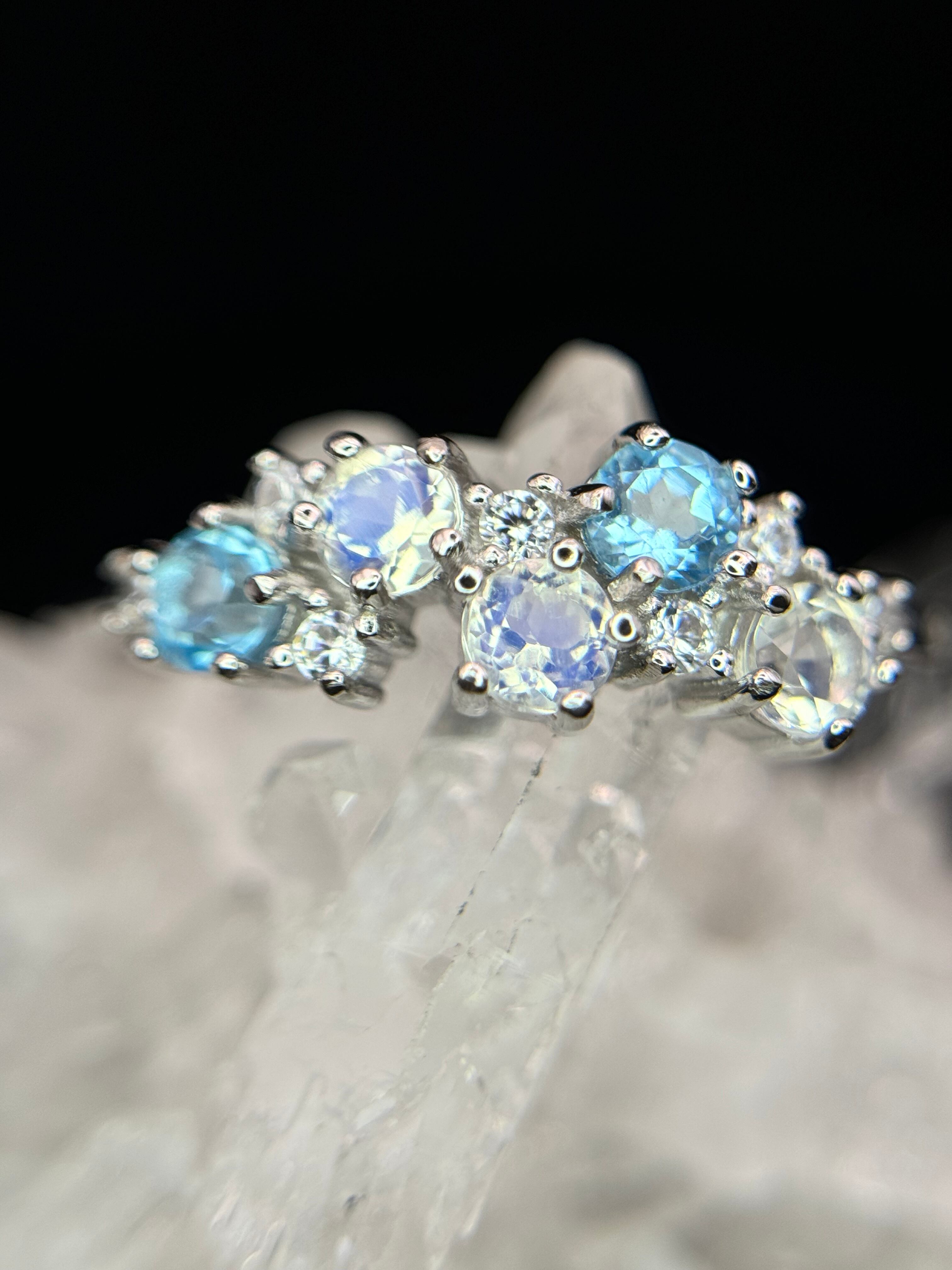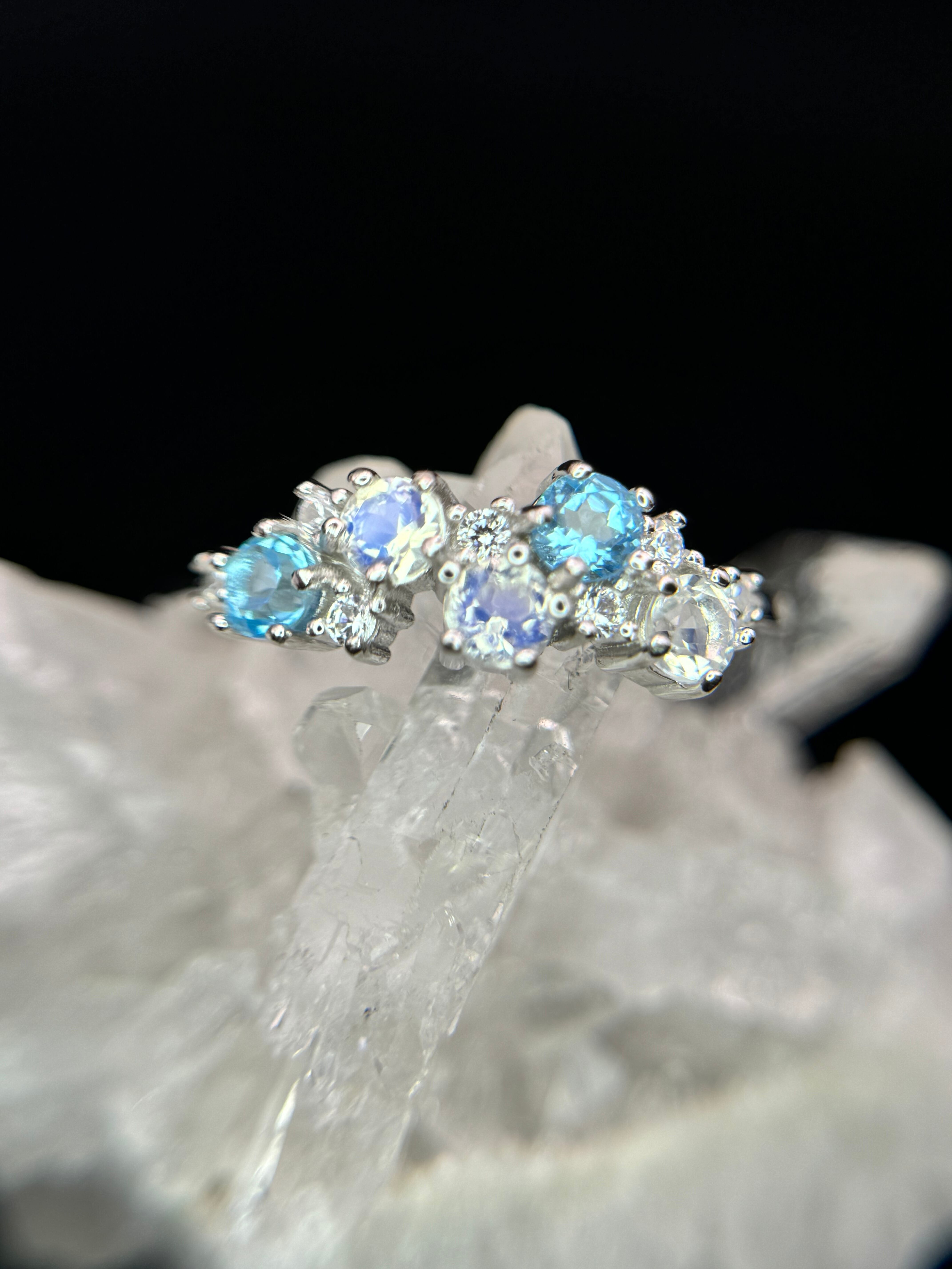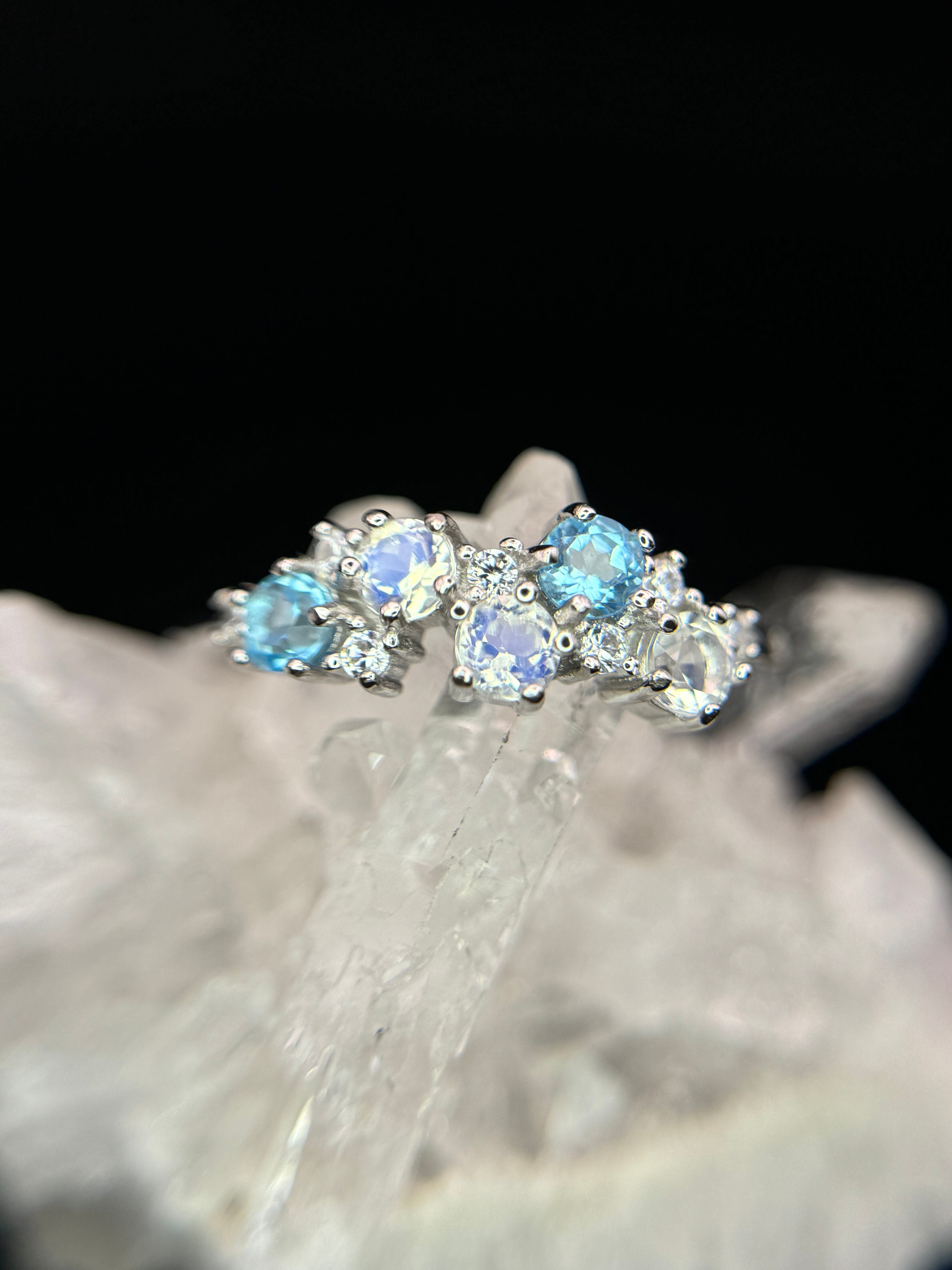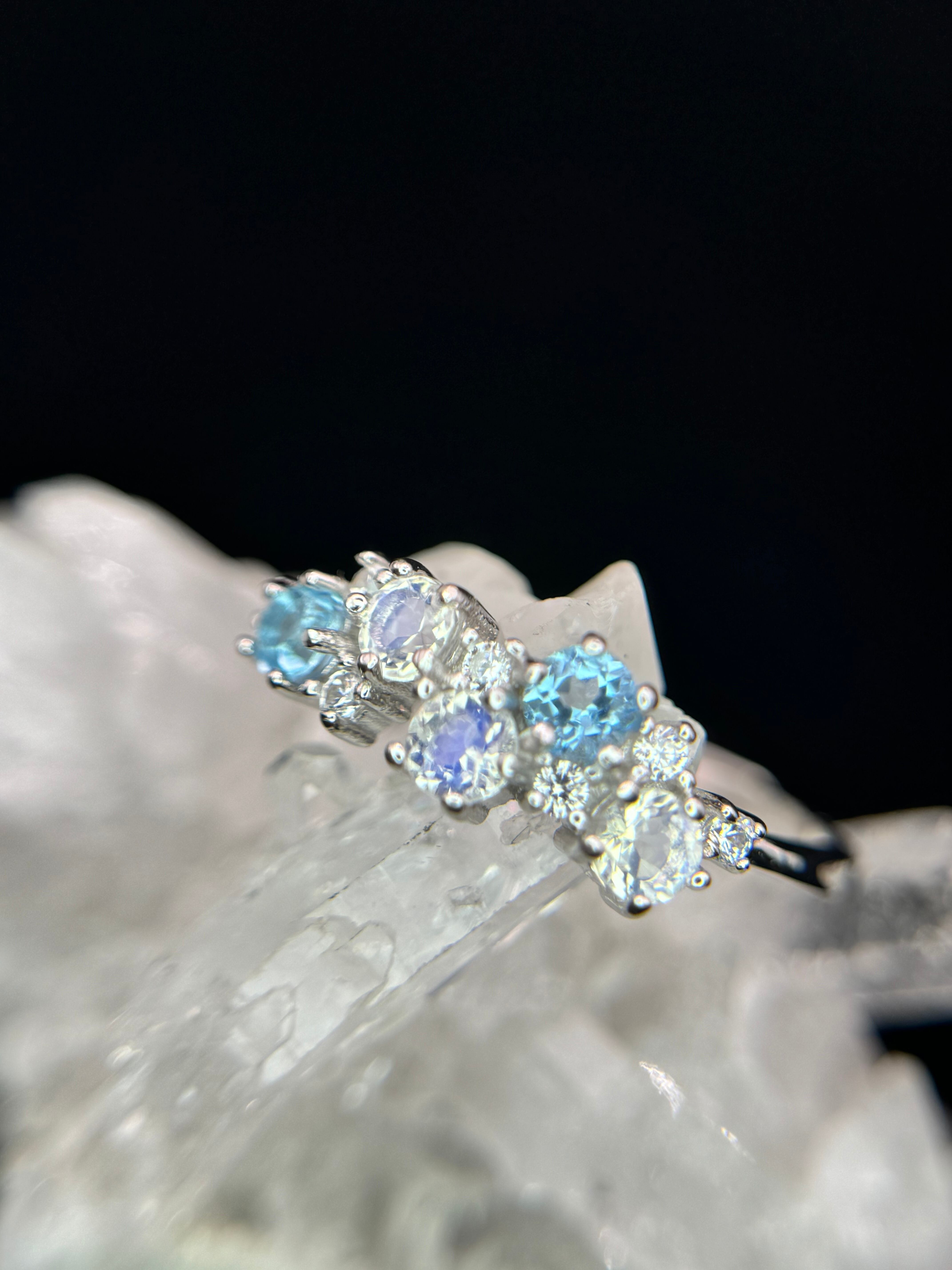 花かんむりブルートパーズ&アンデシンラブラドライト フリーリングSV