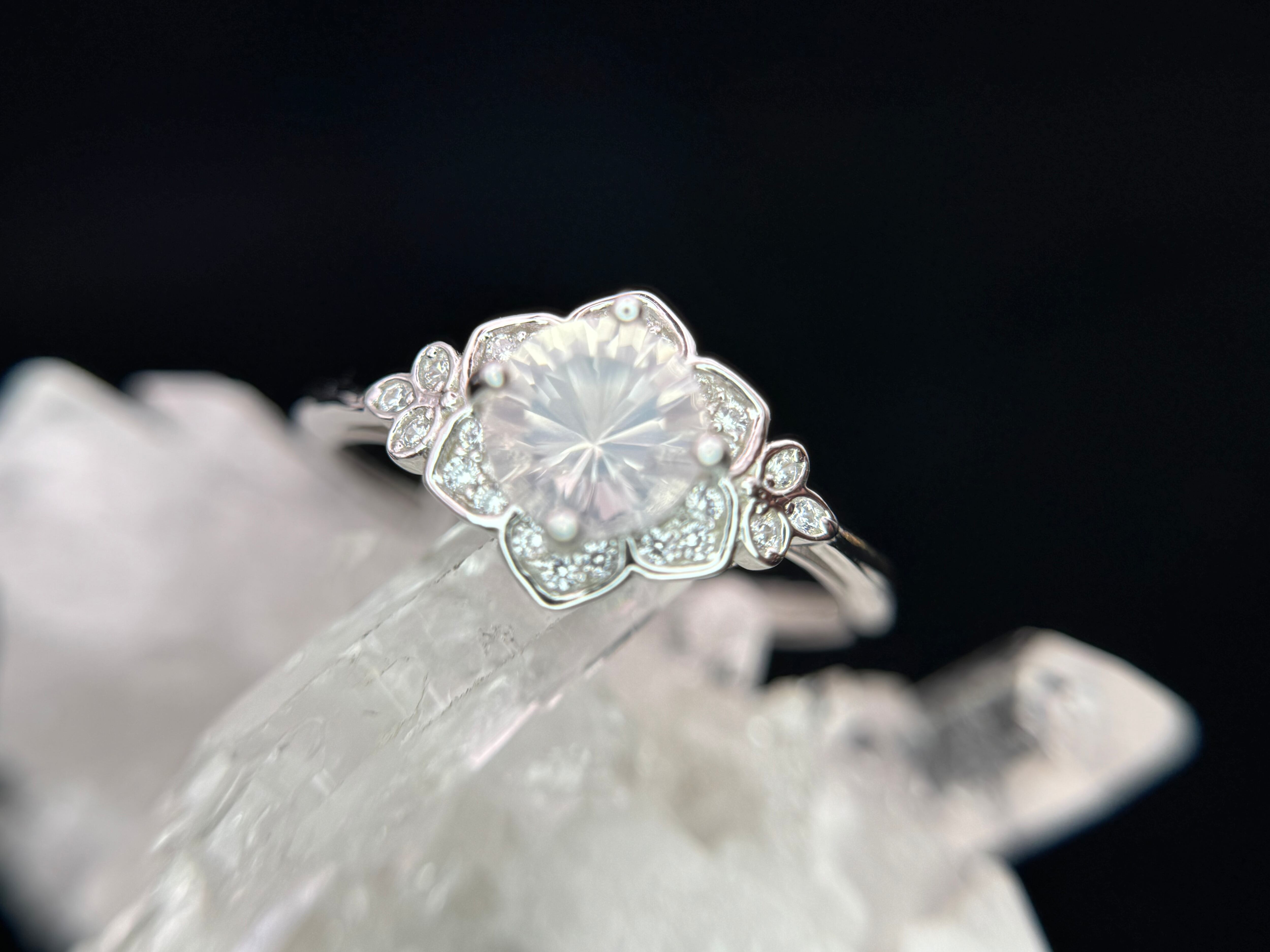 淡く美しい輝きは、宝石なのにどこか柔らかくほんわかとした印象です。