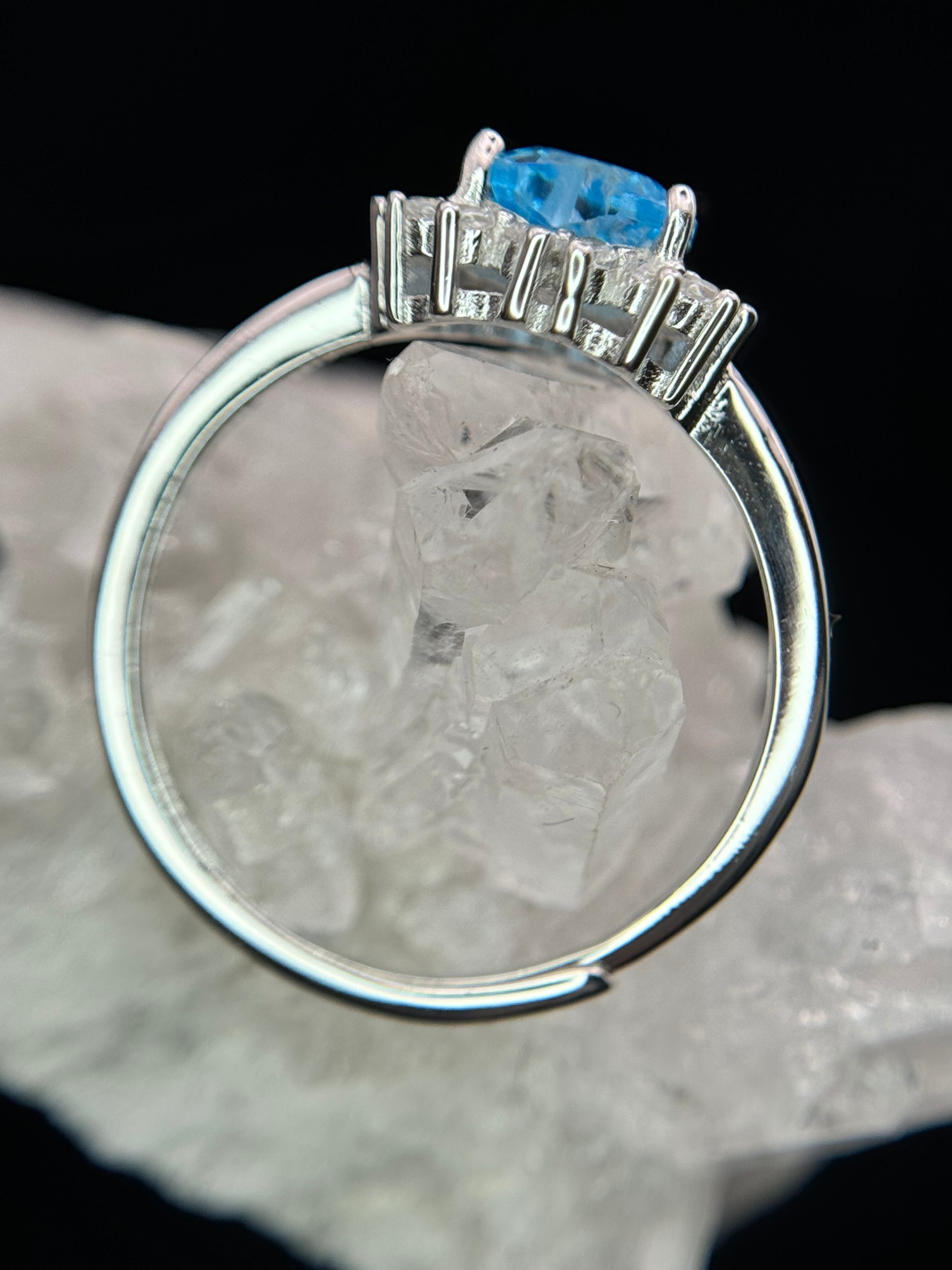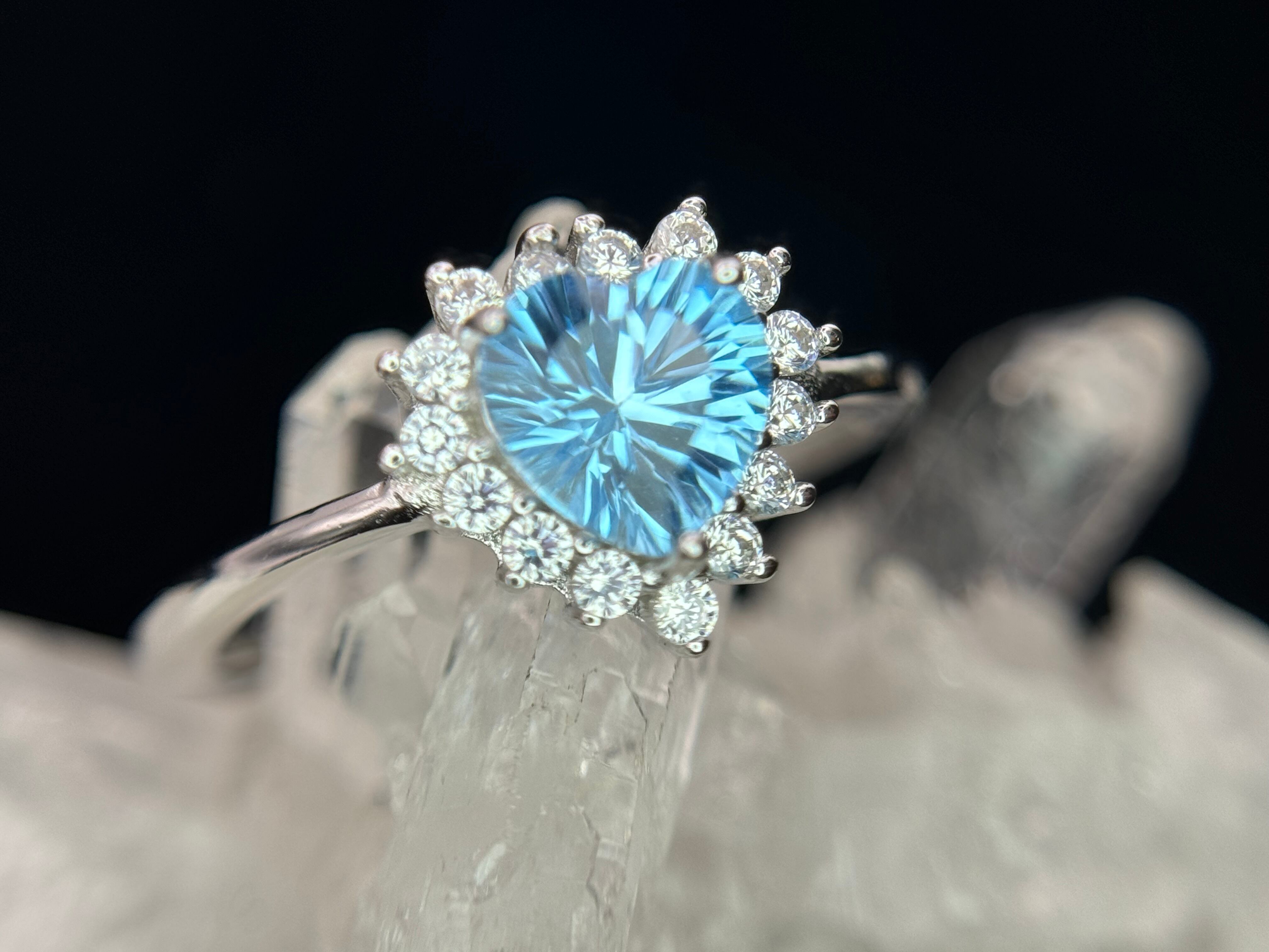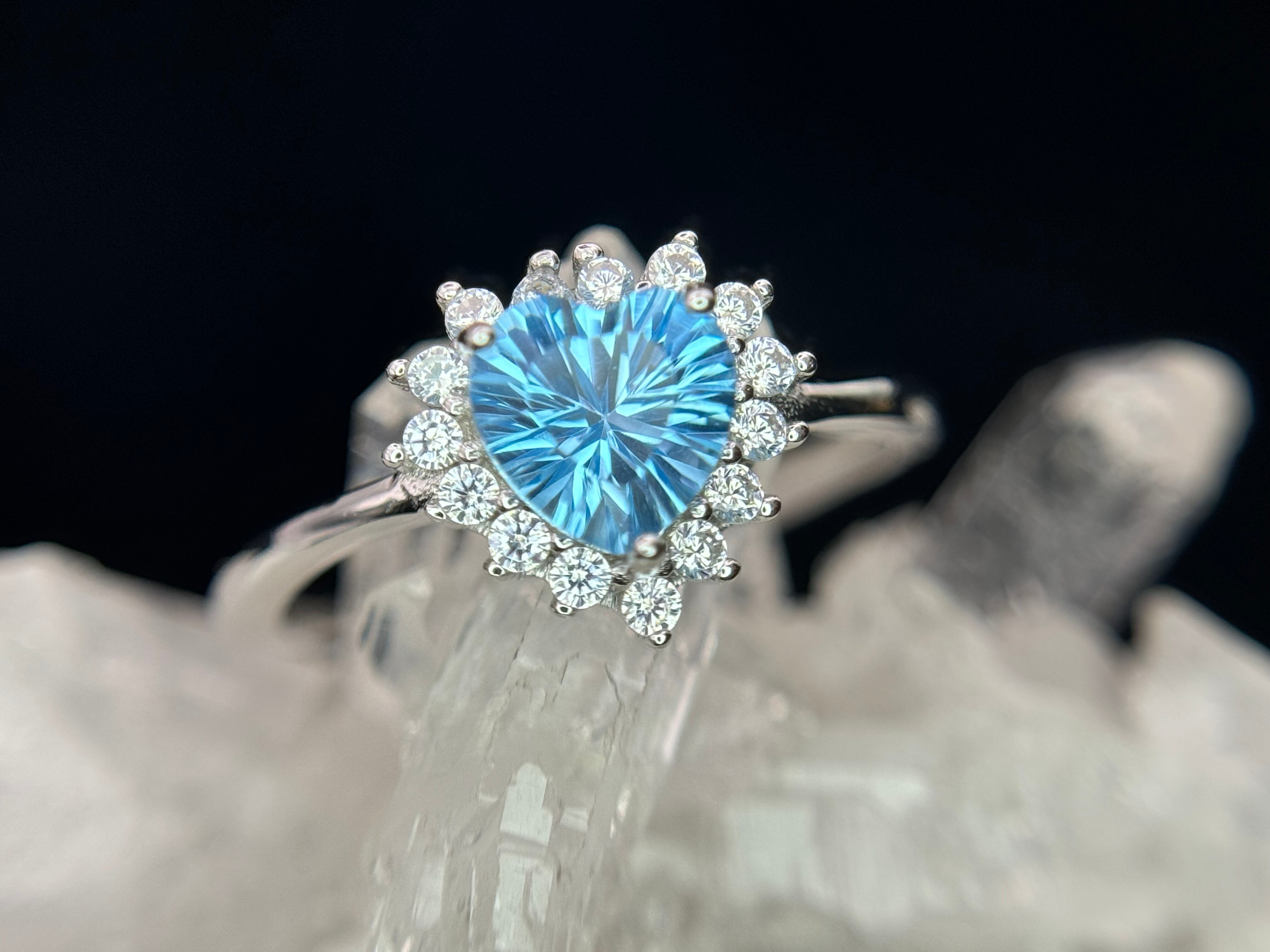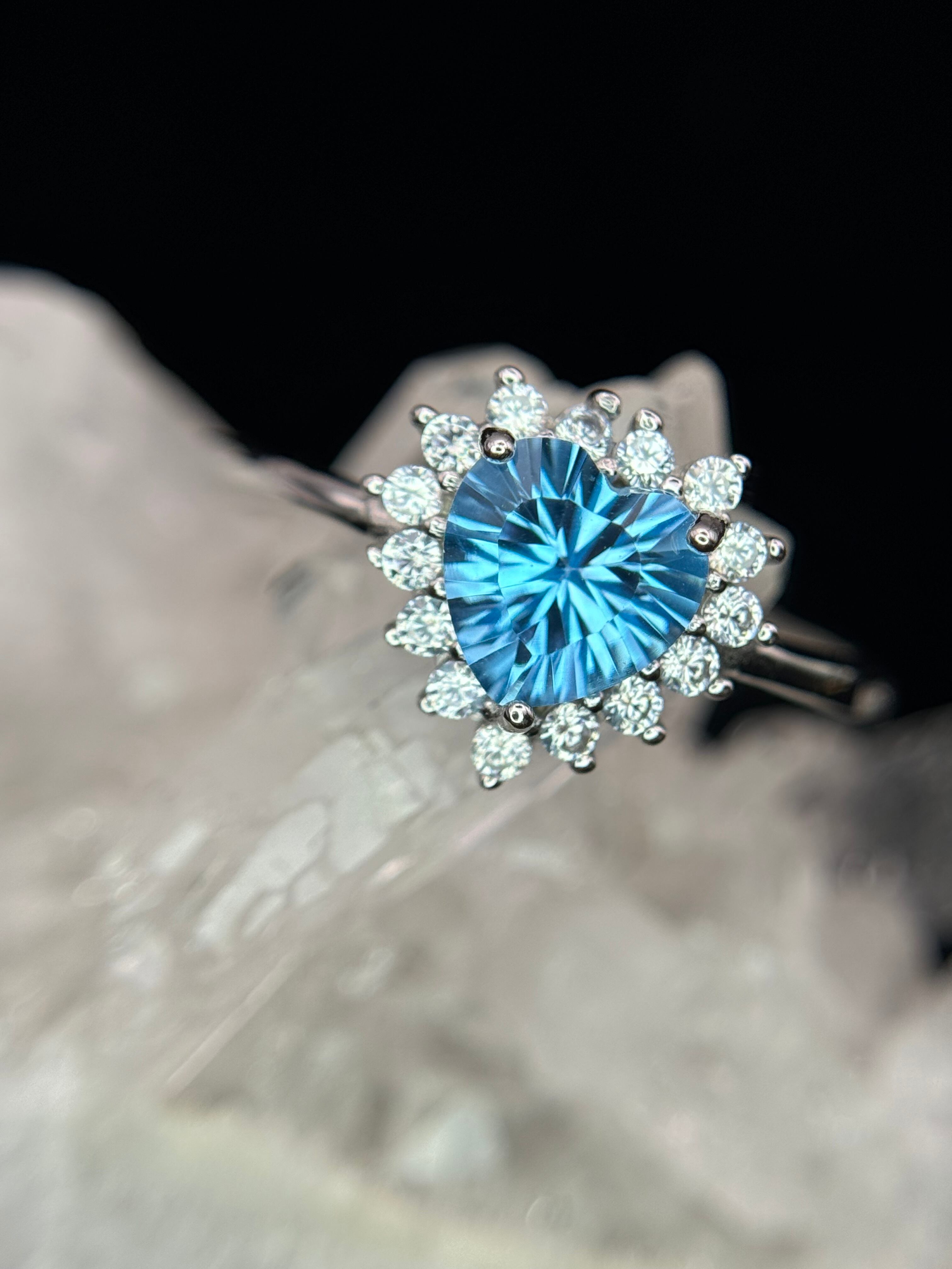 小さなジルコニアたちが踊る中央にうるうると輝く美しいブルートパーズ。