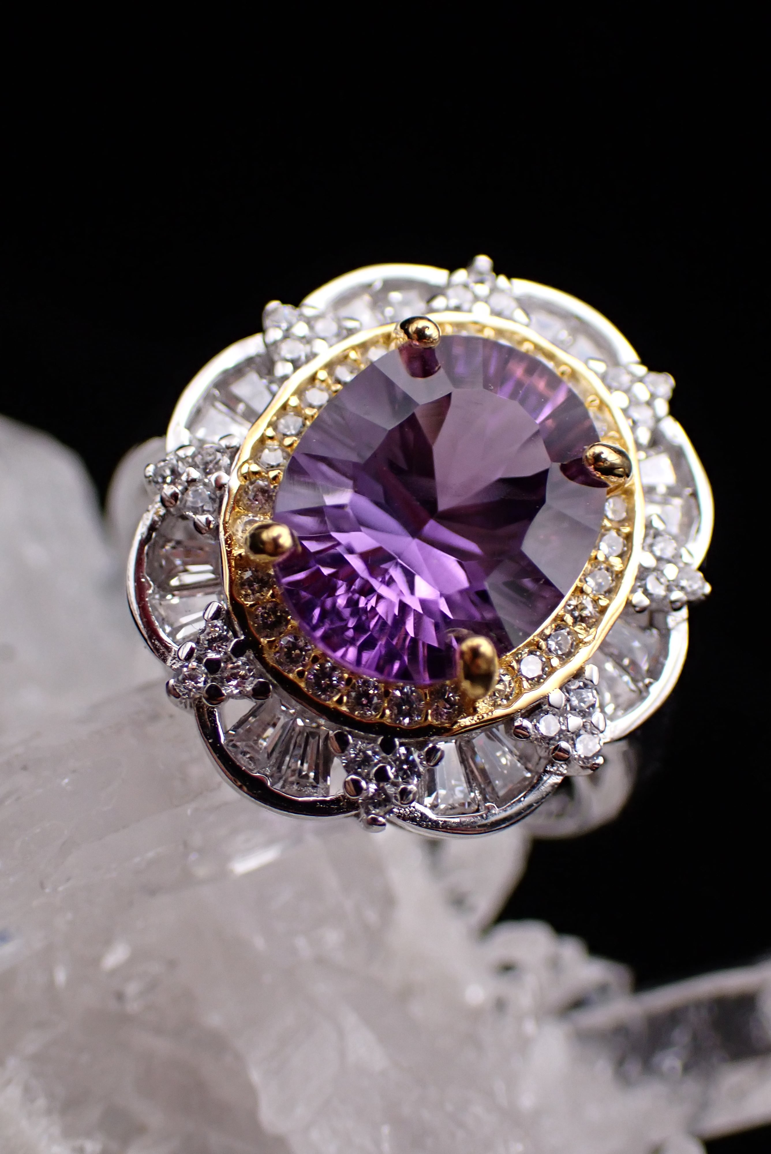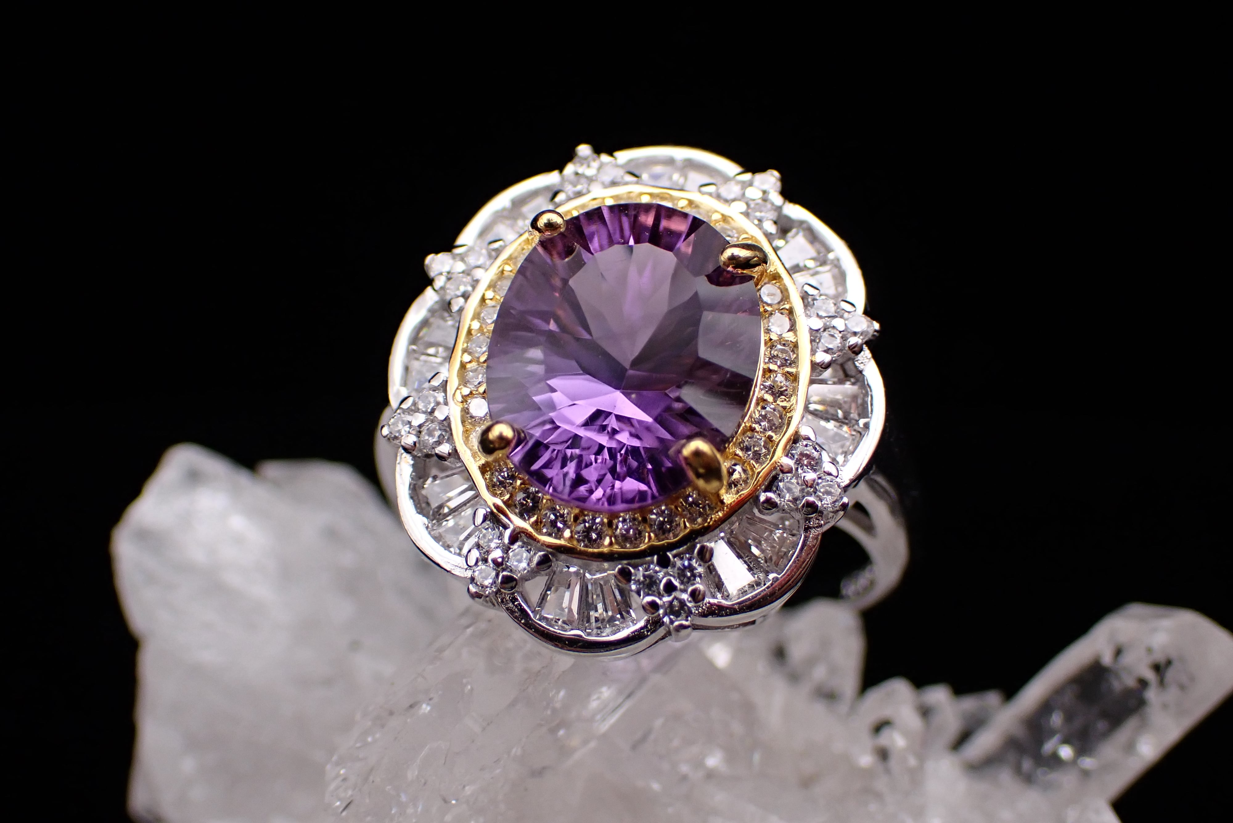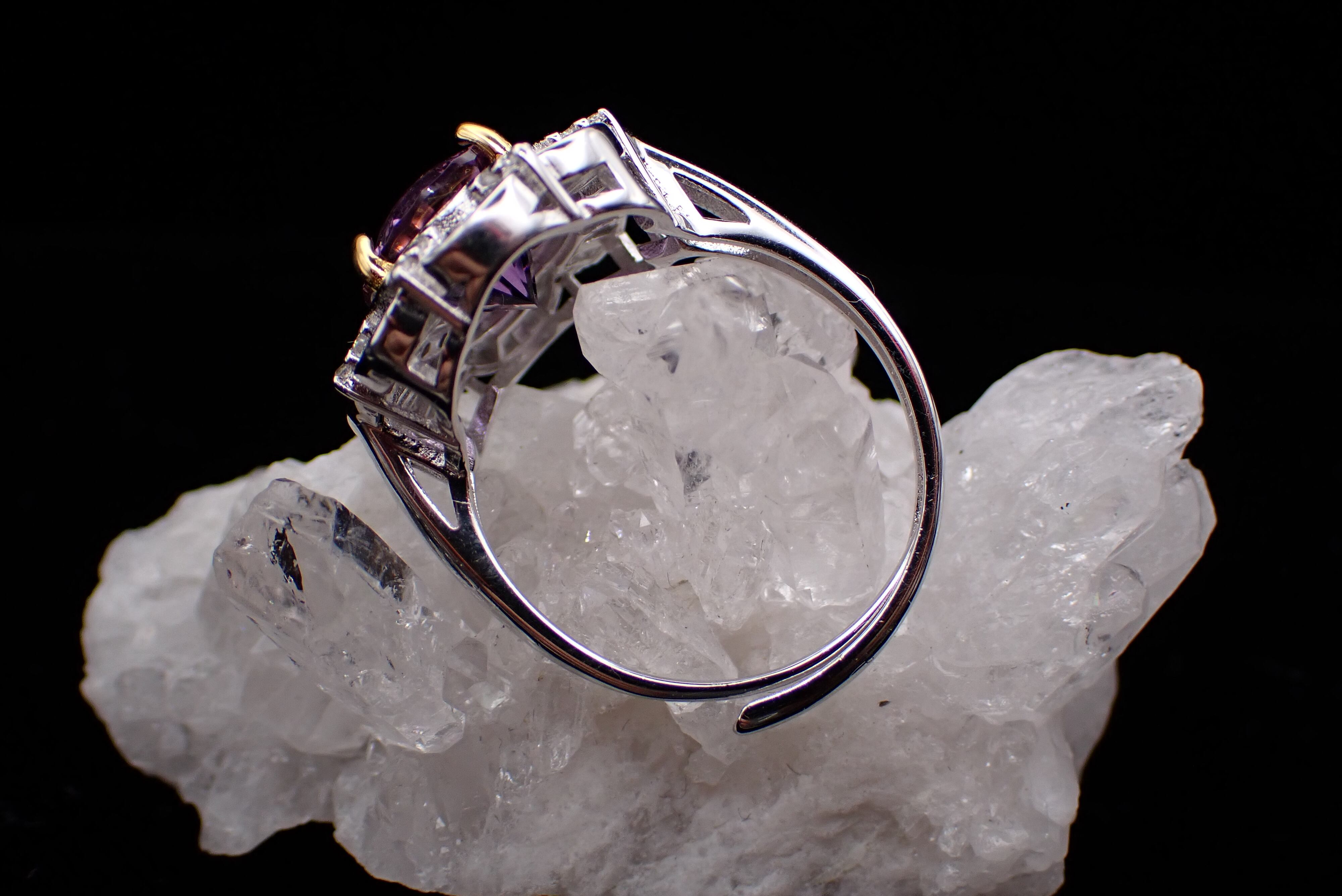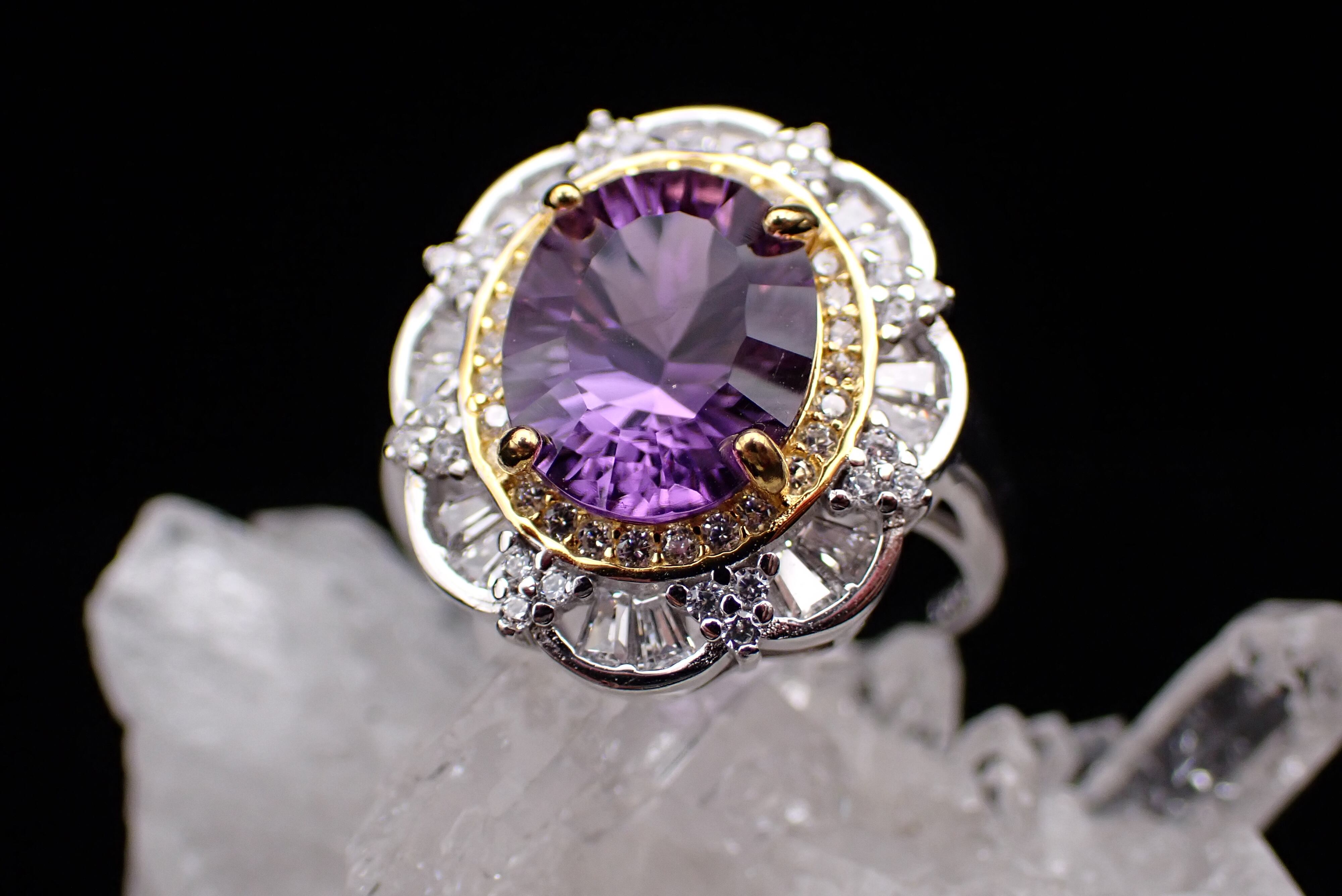 取り巻きのジルコニアたちがキラキラと輝き、アメジストの輝きを引き立てます。
