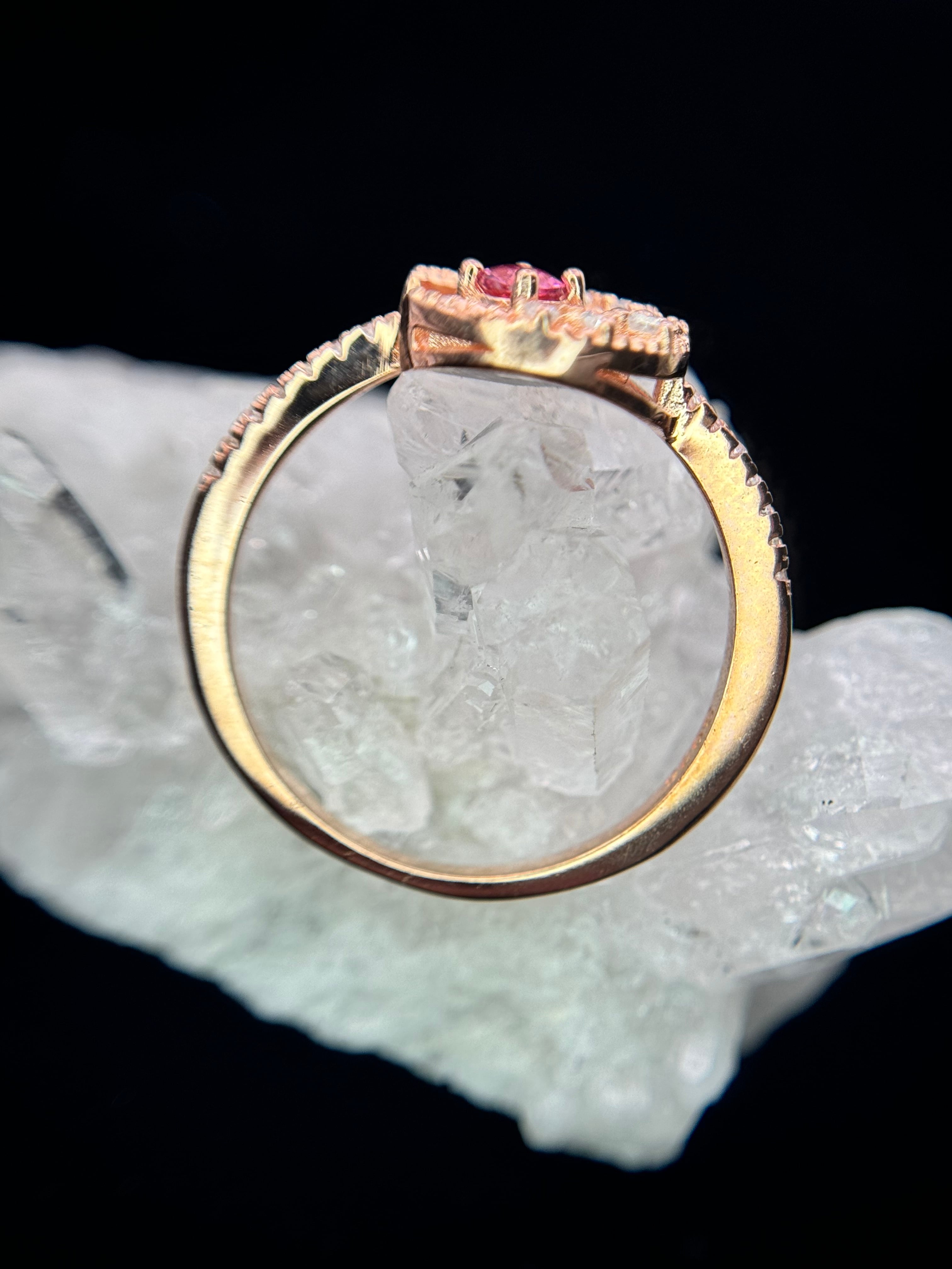 キラキラ煌めく三日月の真ん中には、可愛らしい色合いのピンクトルマリンが輝きます。