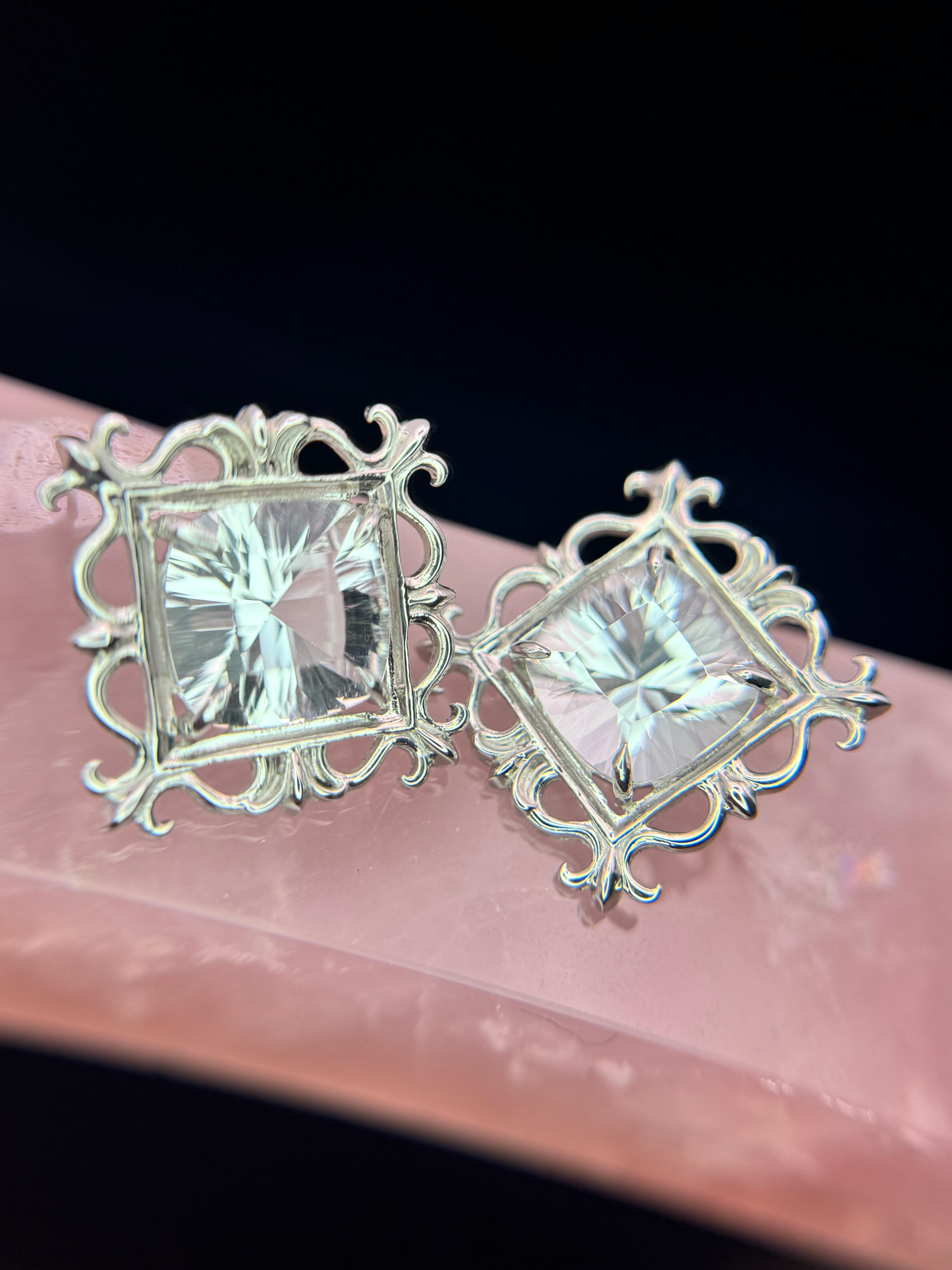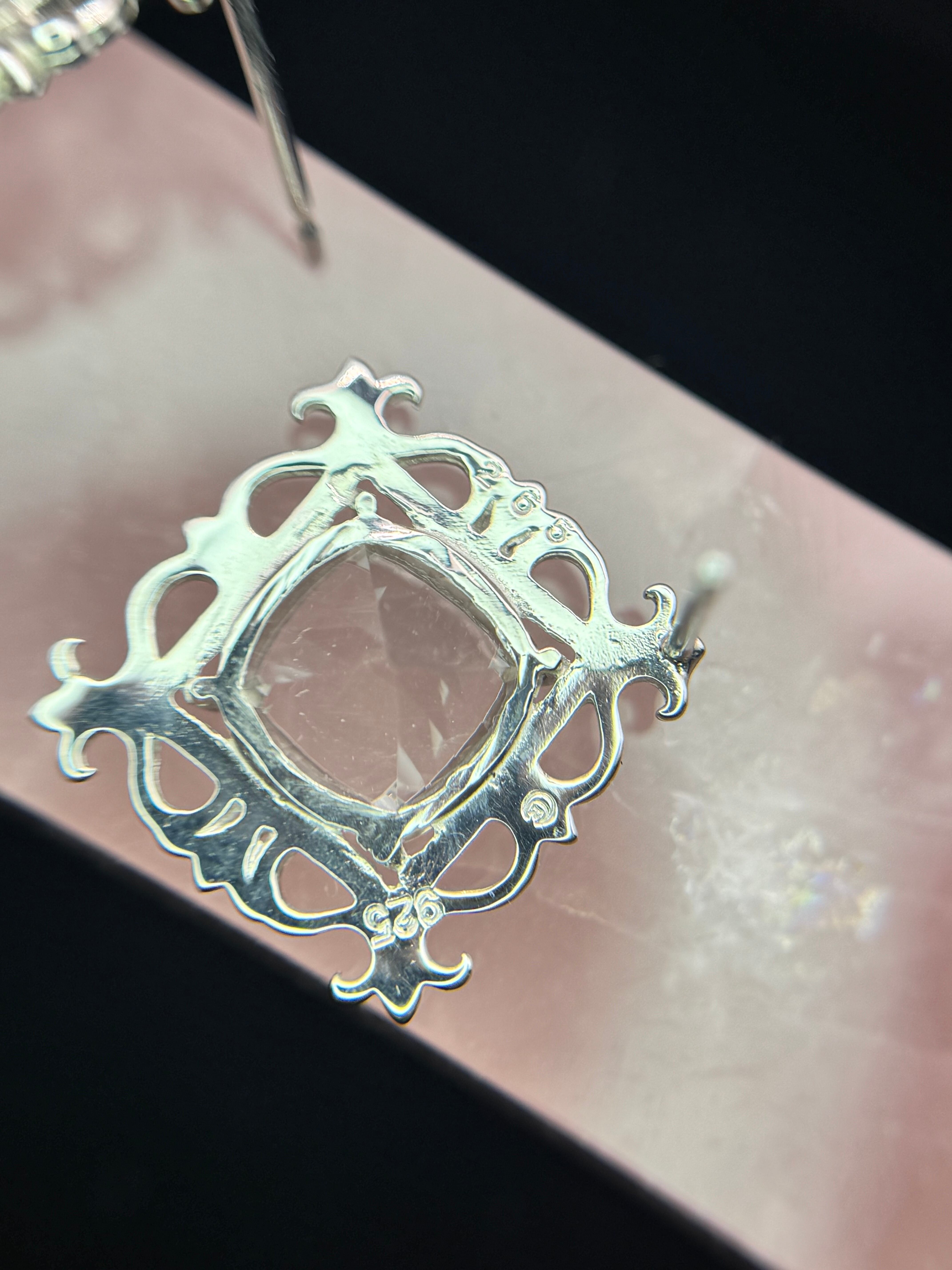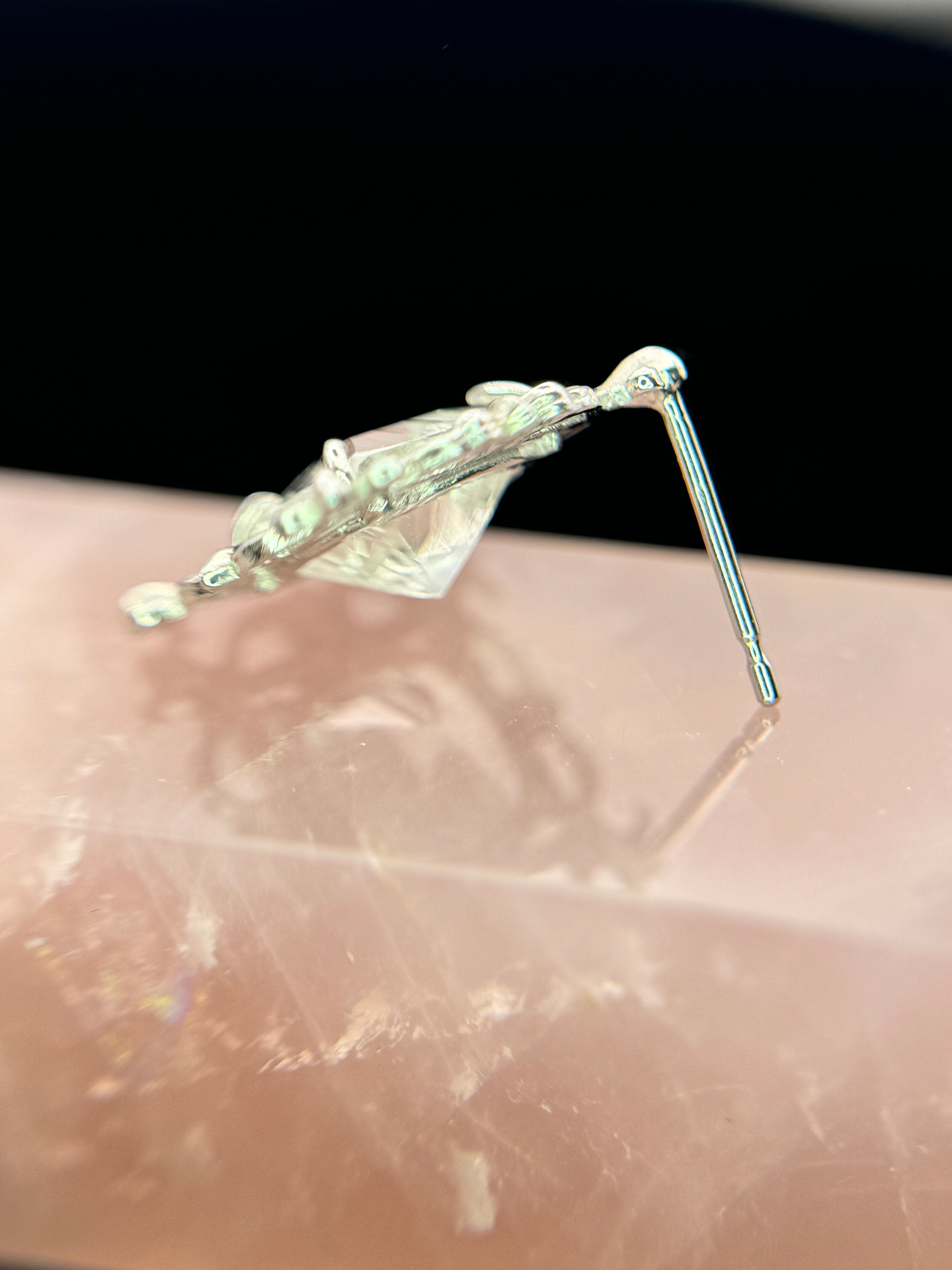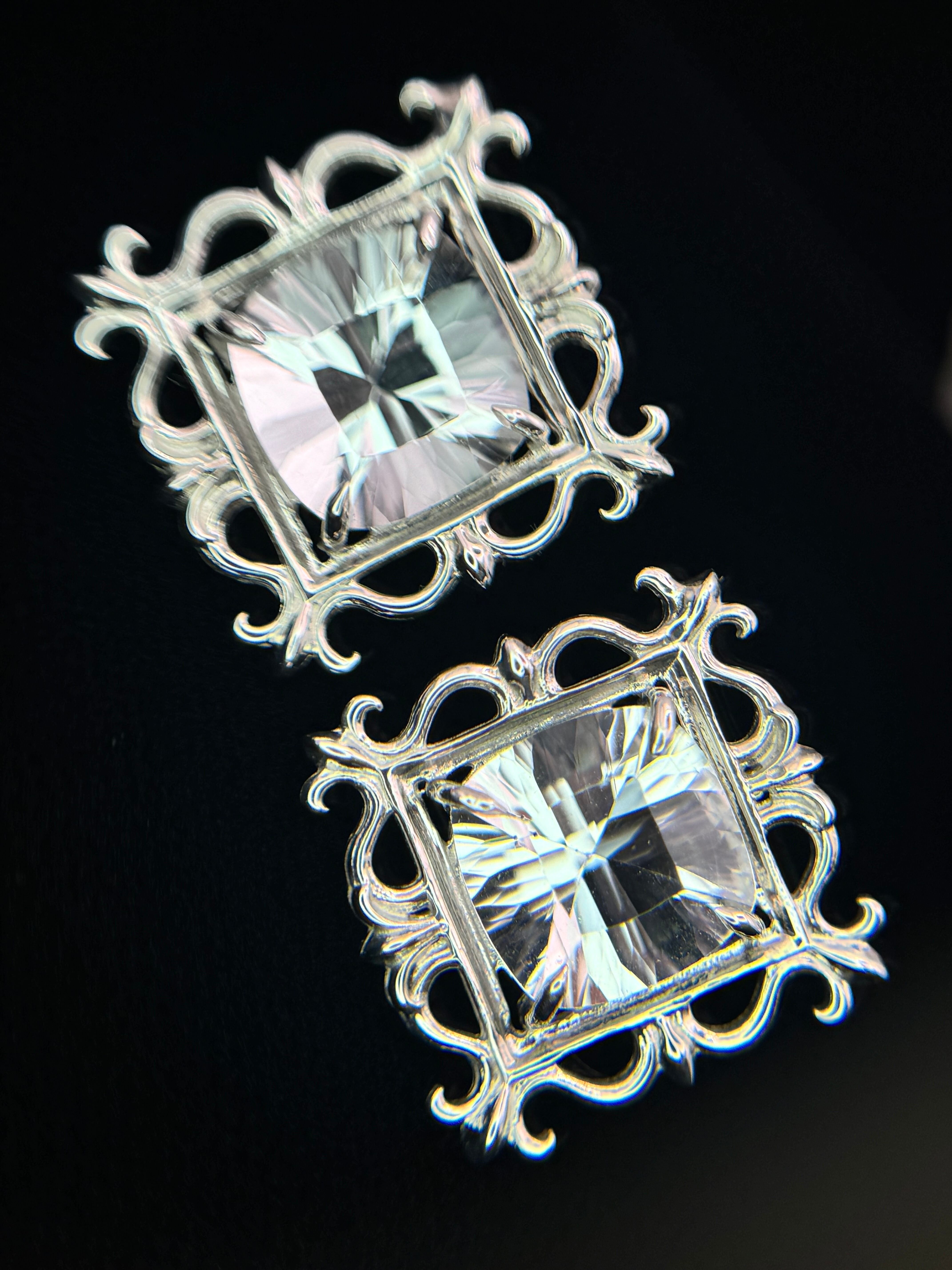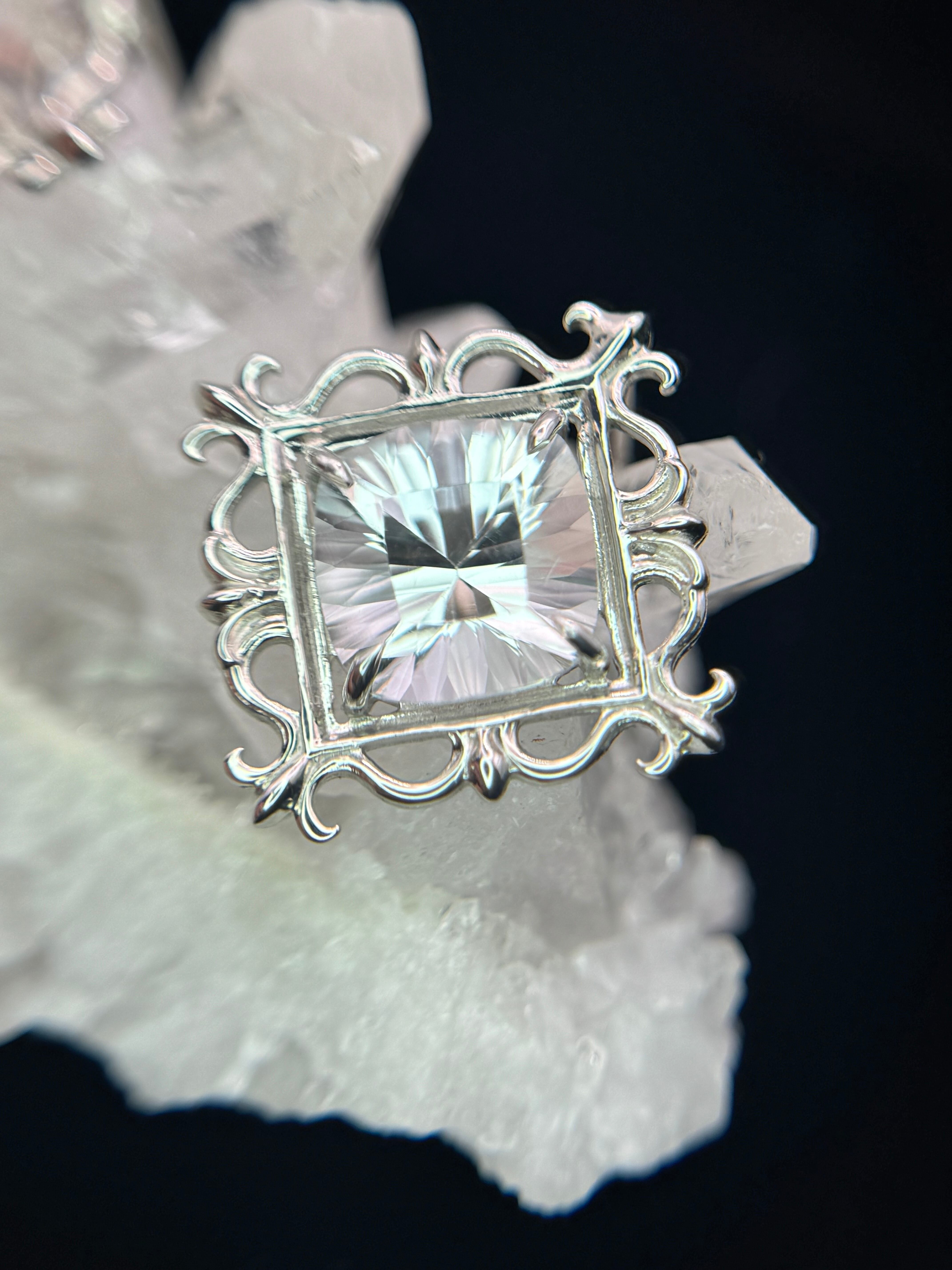 まるで石を絵画のように、美しい額縁の中へ、コンケーブカットのホワイトトパーズを納めました。