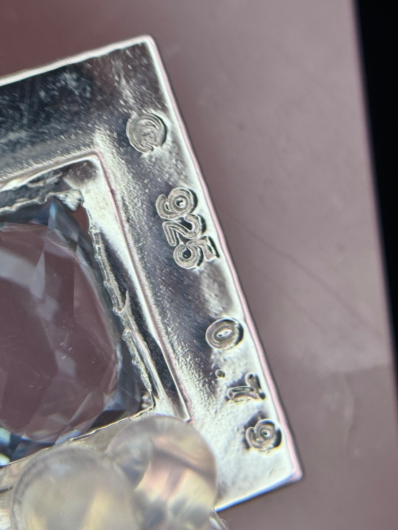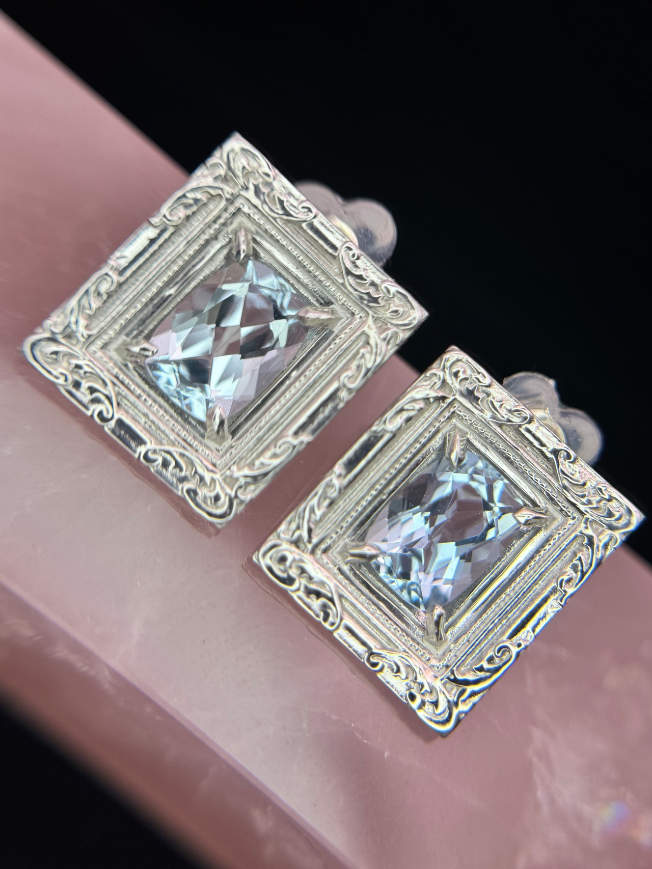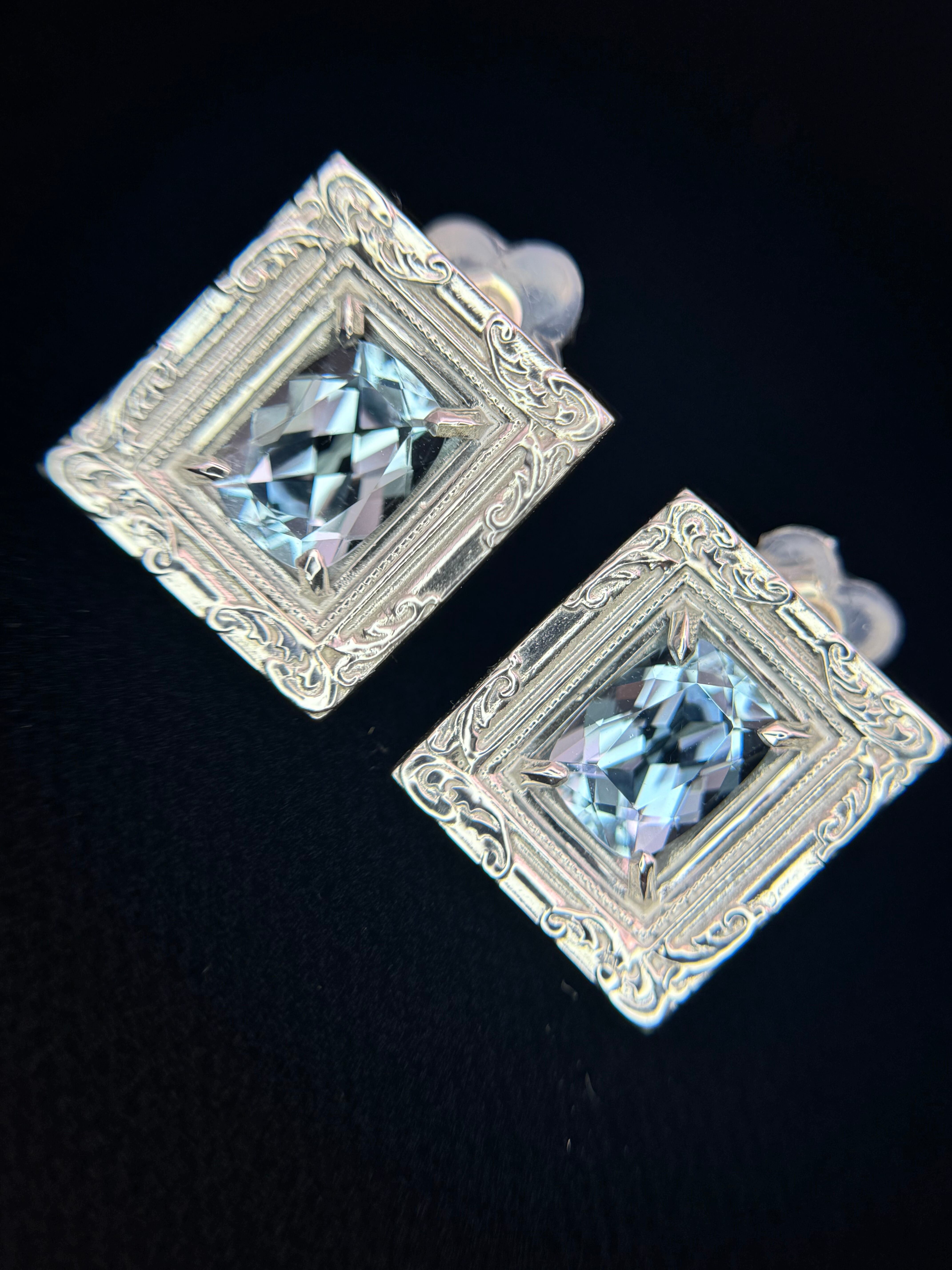 額縁の裏側はフラットにし、石が存分に光を蓄えながらも軽く着け心地がよいピアスとなっています。