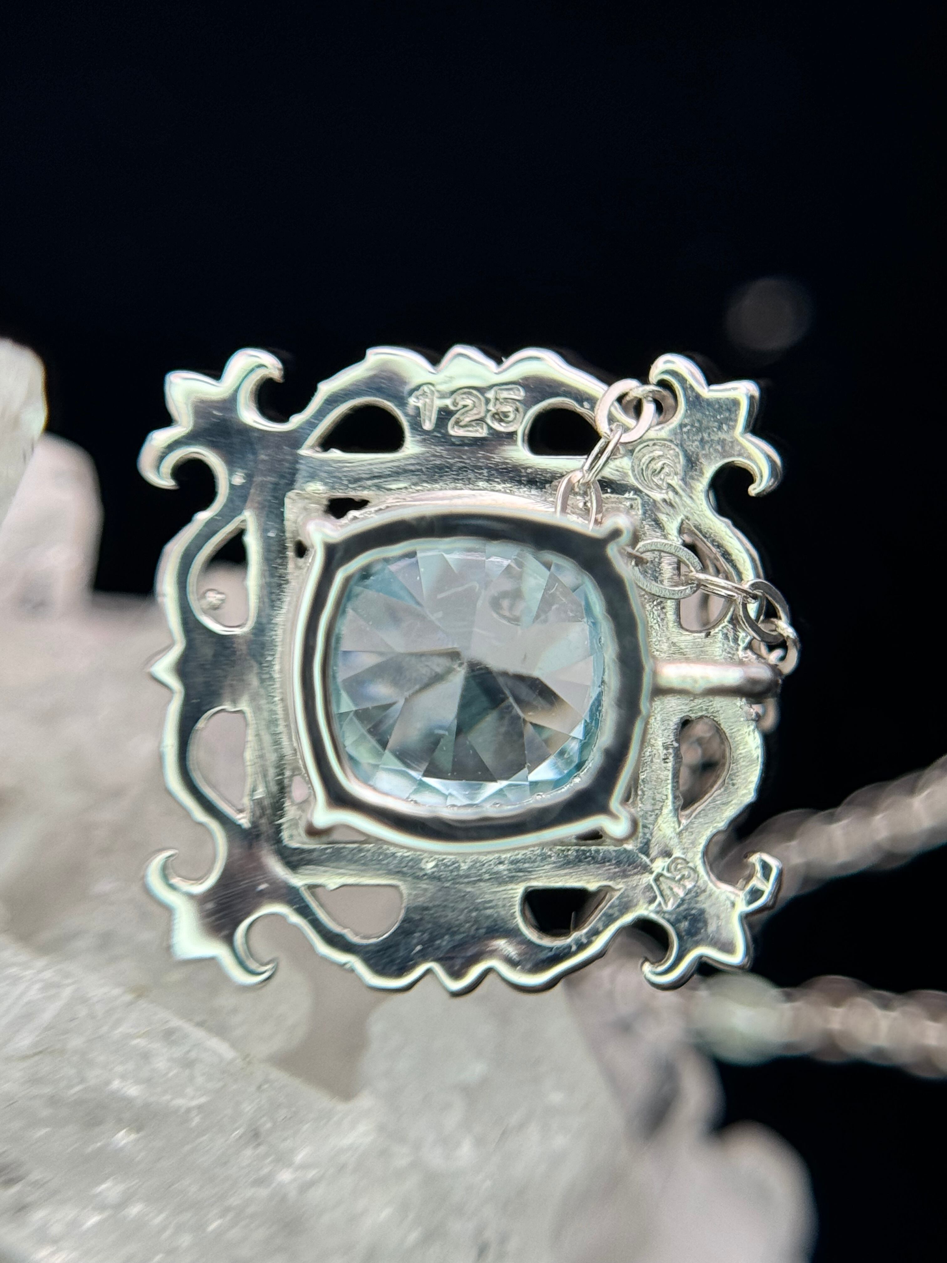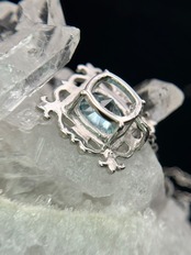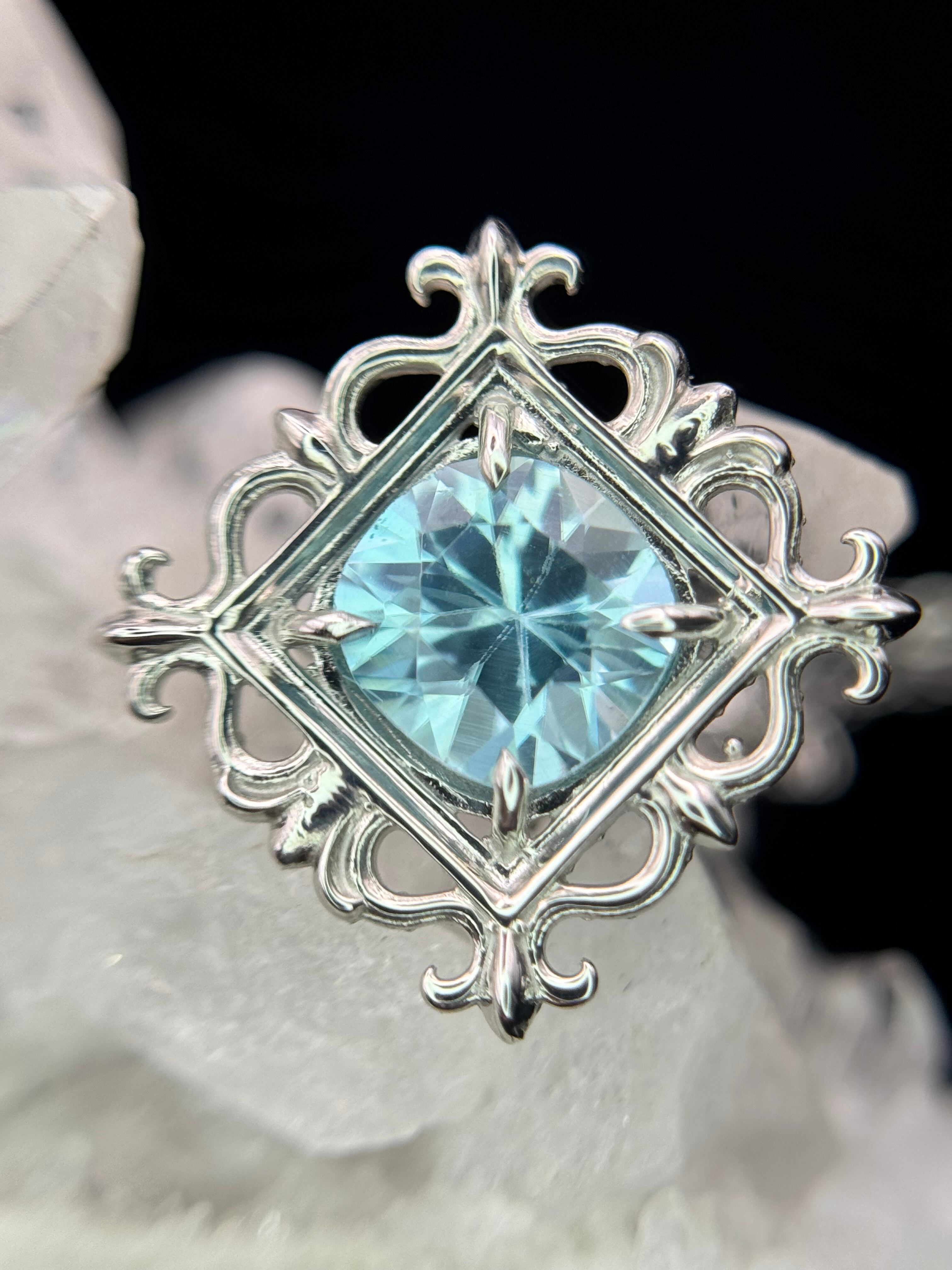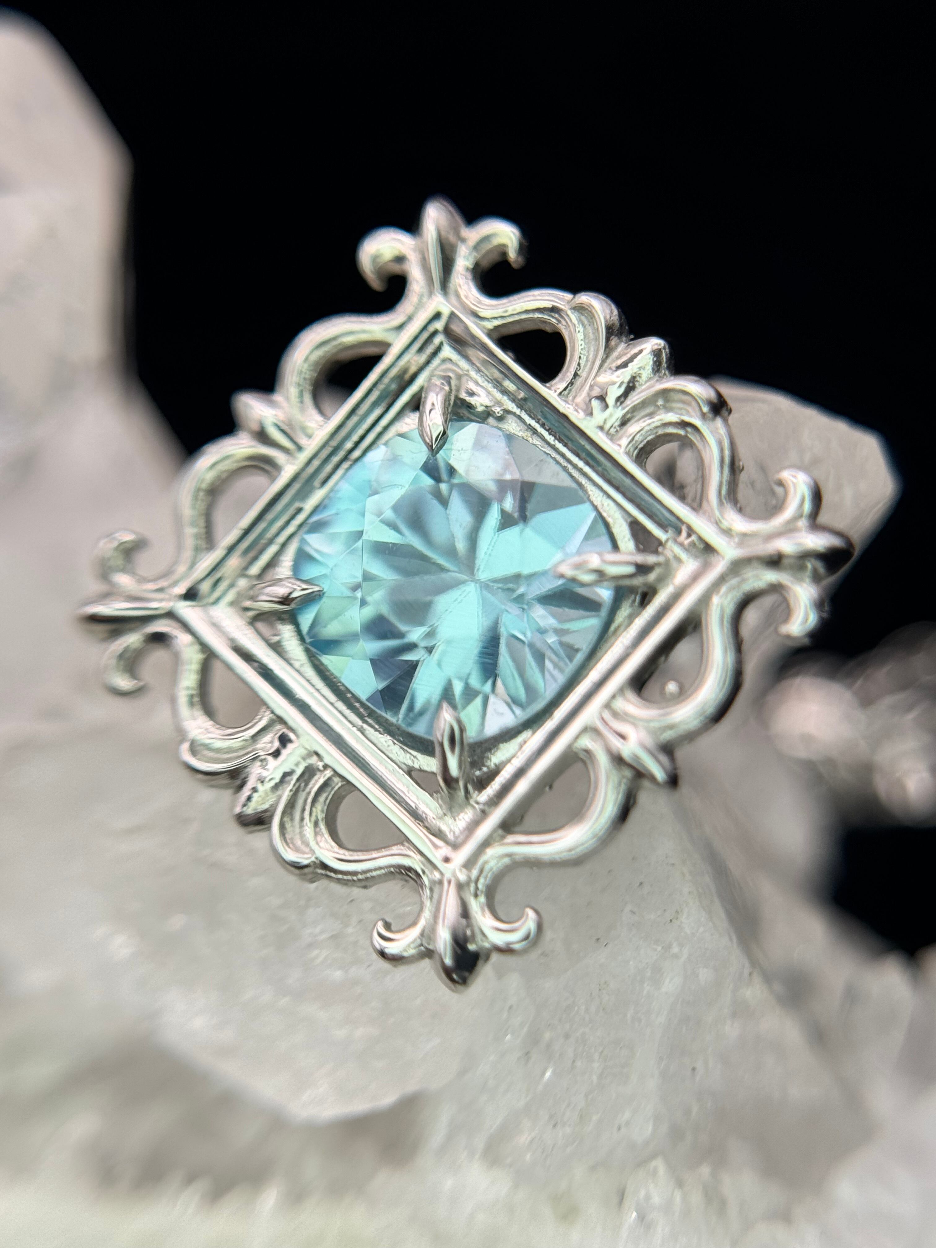 まるで石を絵画のように、美しい額縁の中へ、ブルージルコンを納めました。