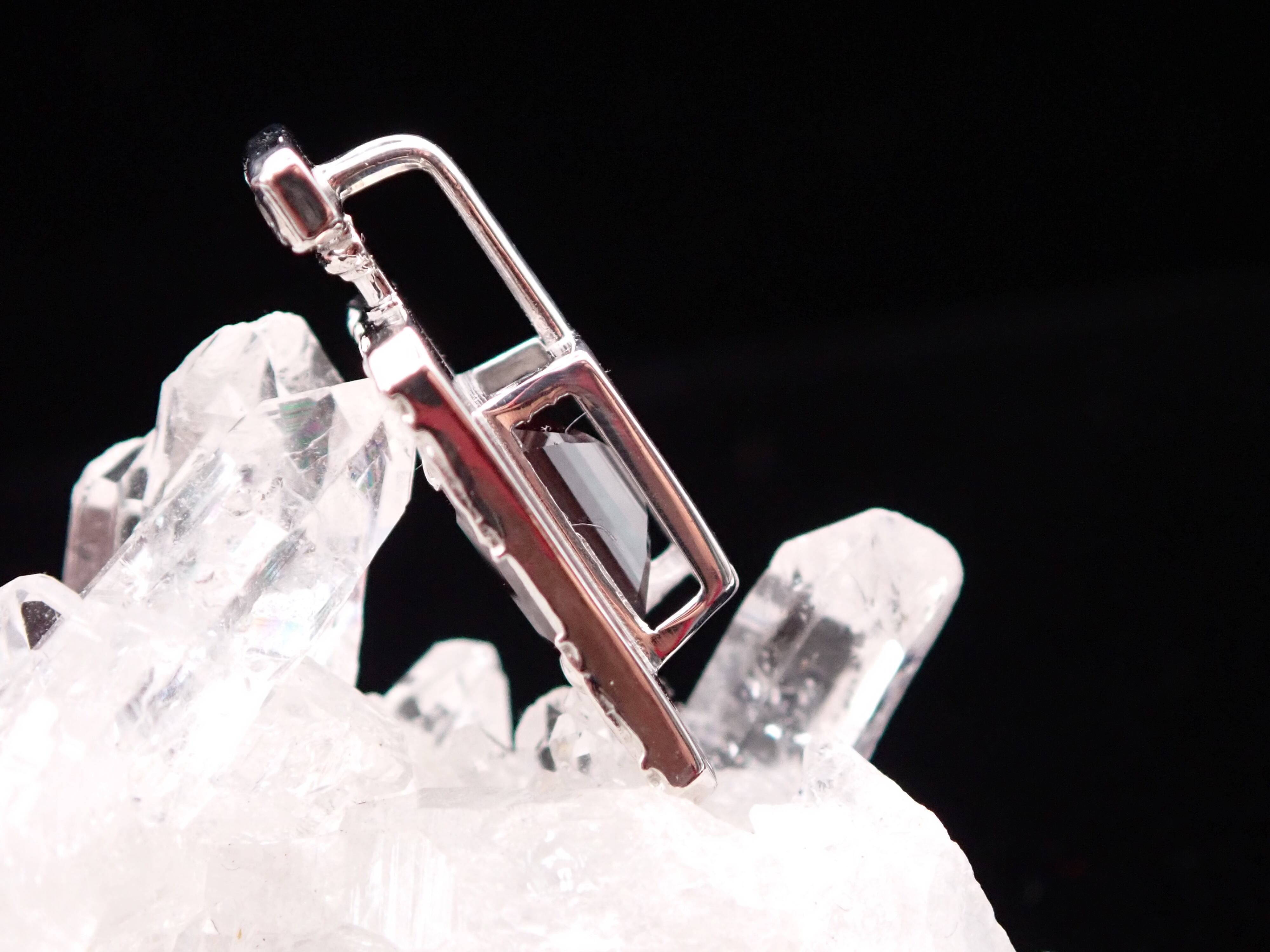 額縁の裏側はフラットにし、石が存分に光を蓄えながらも軽く美しいペンダントとなっています。