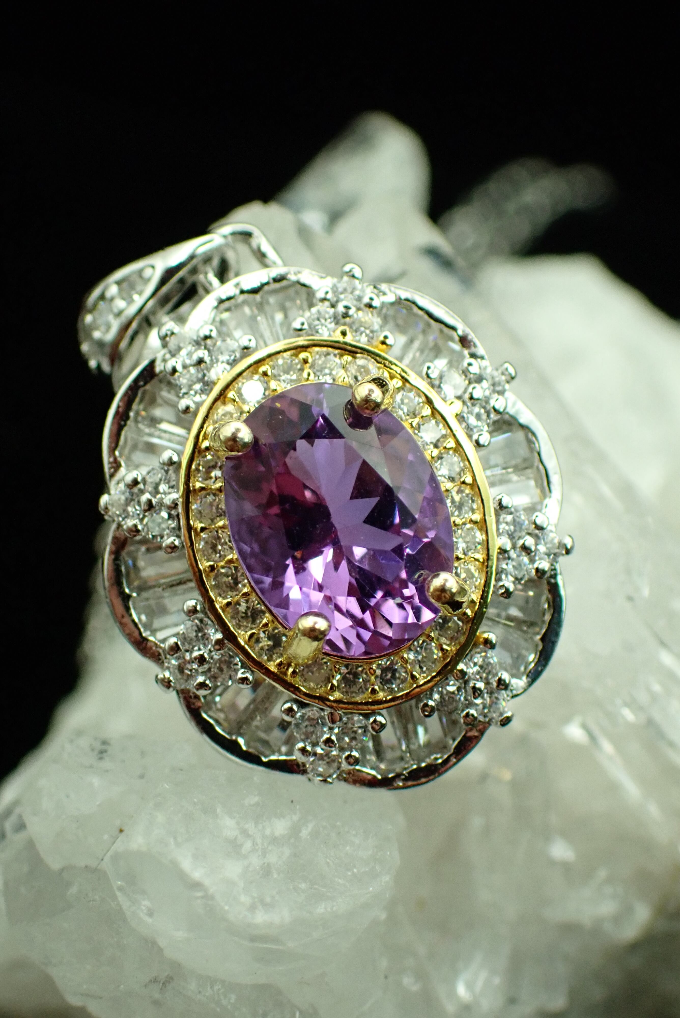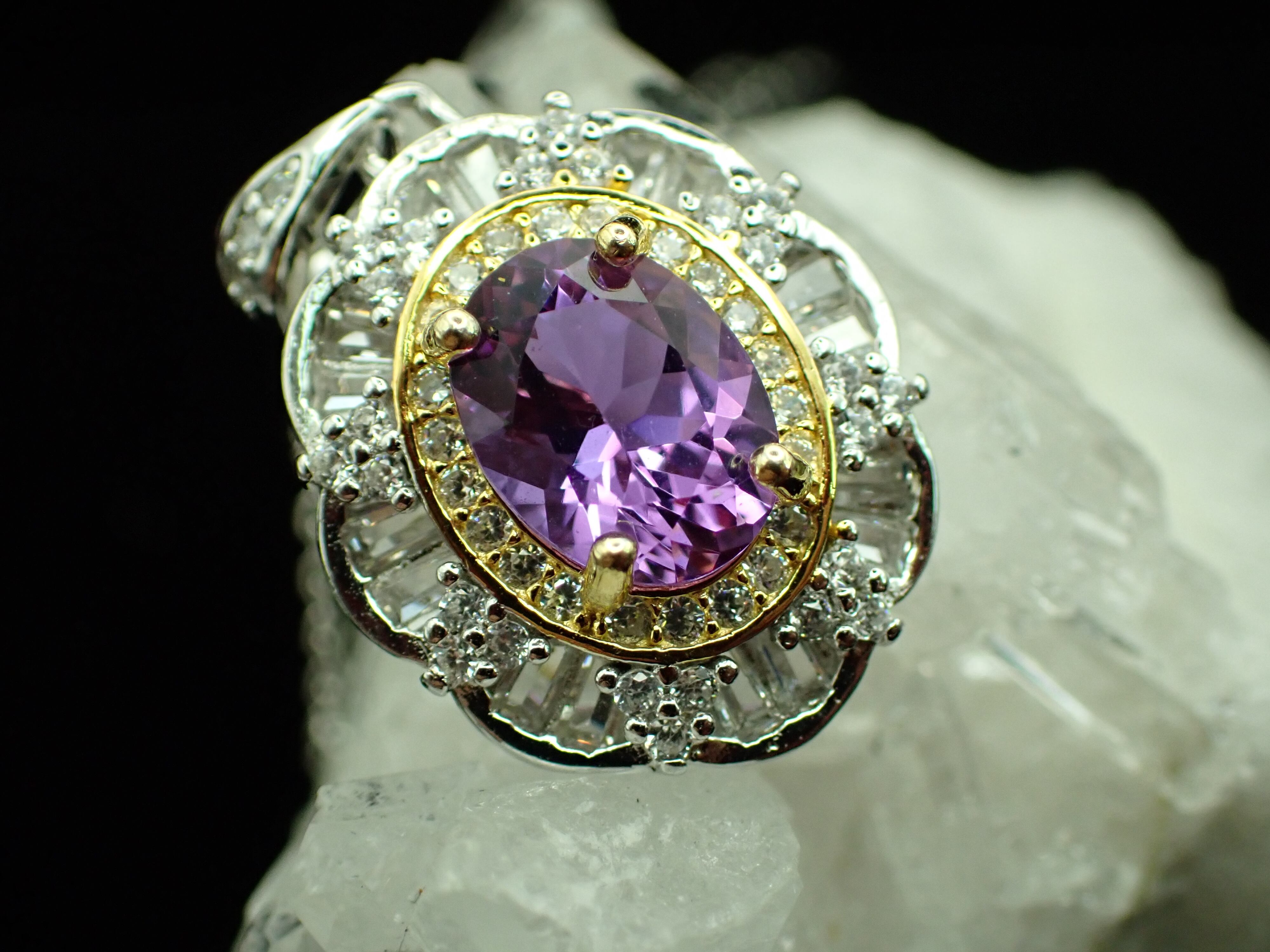 取り巻きのジルコニアたちがキラキラとザンドライトガラスの輝きを引き立てます。