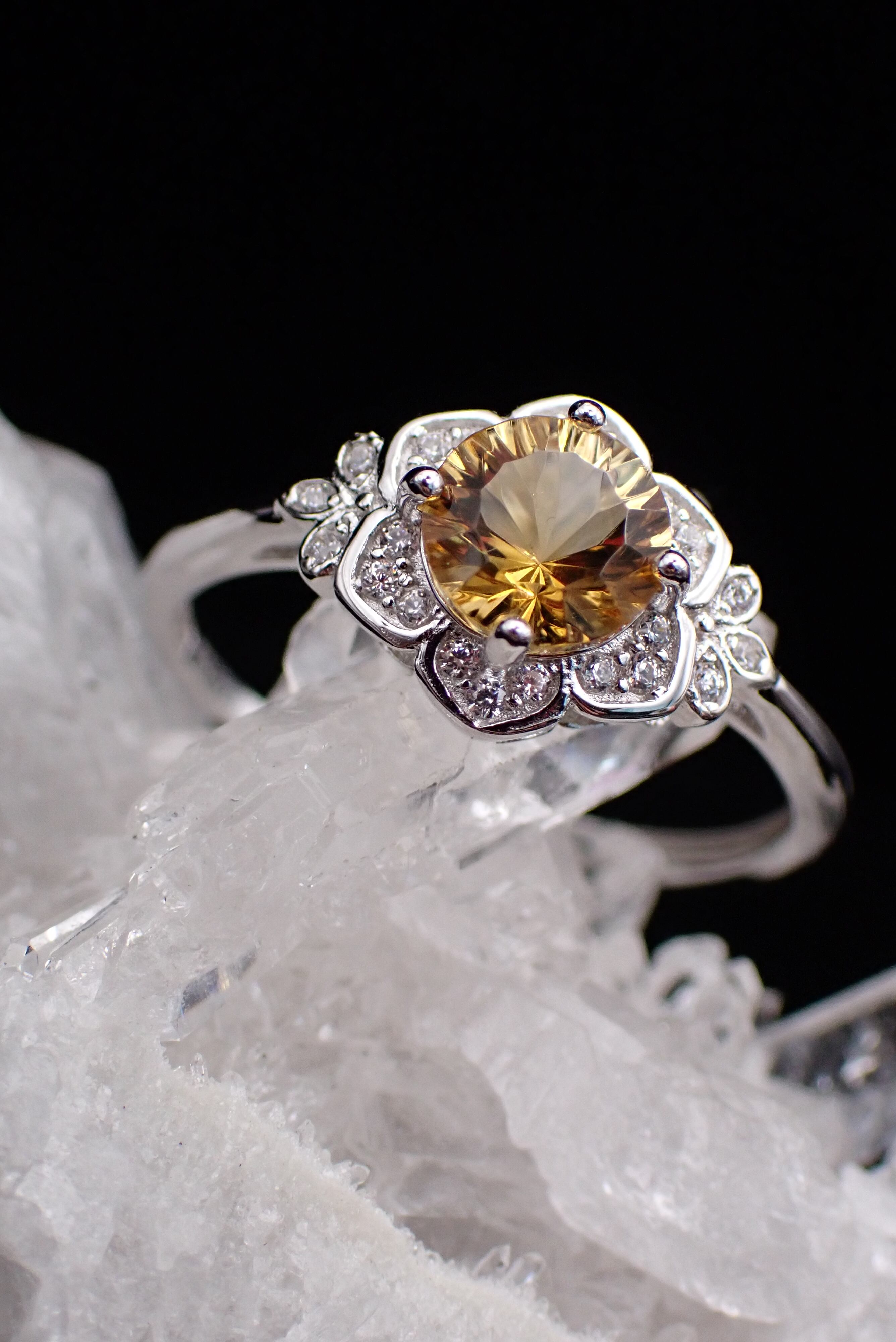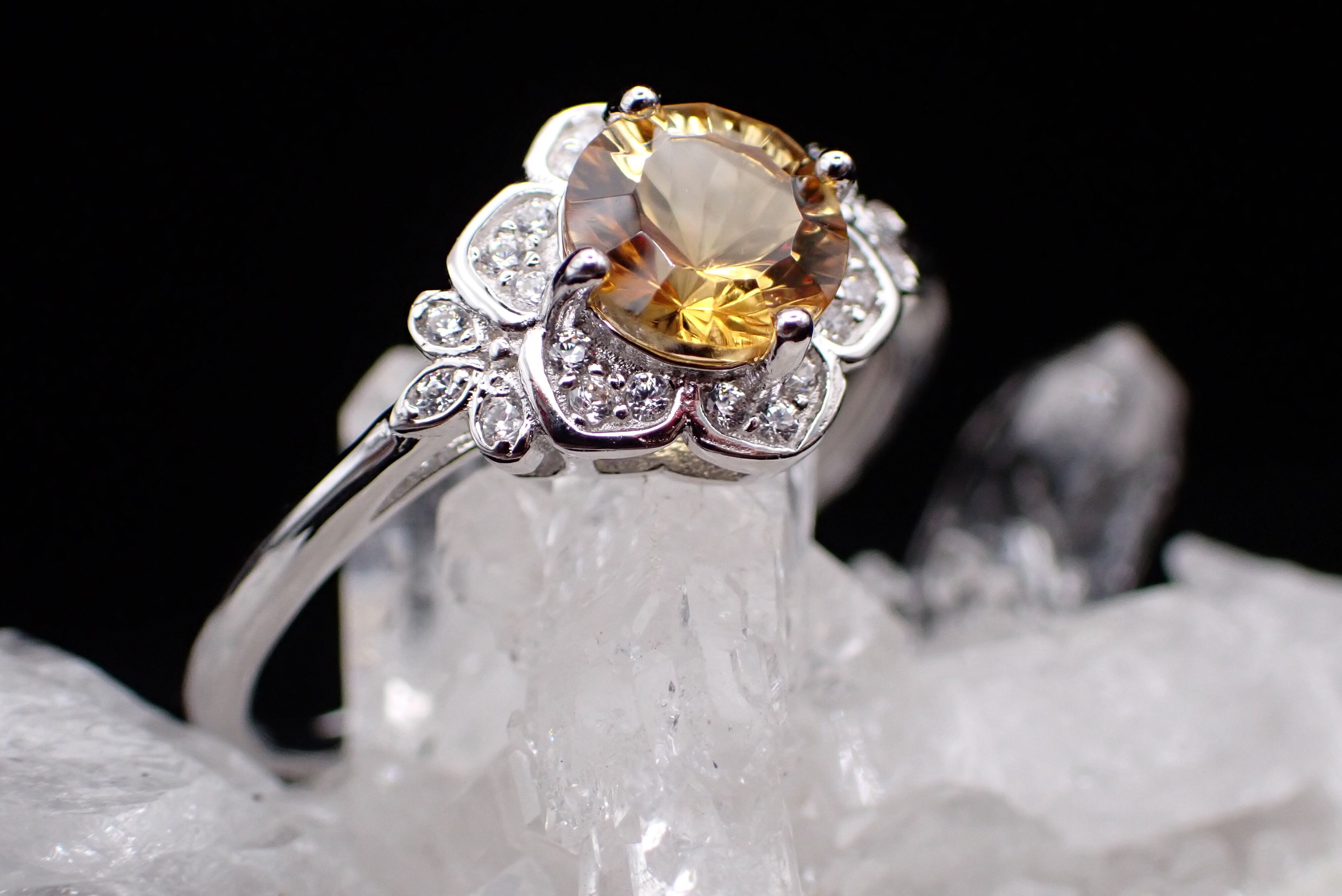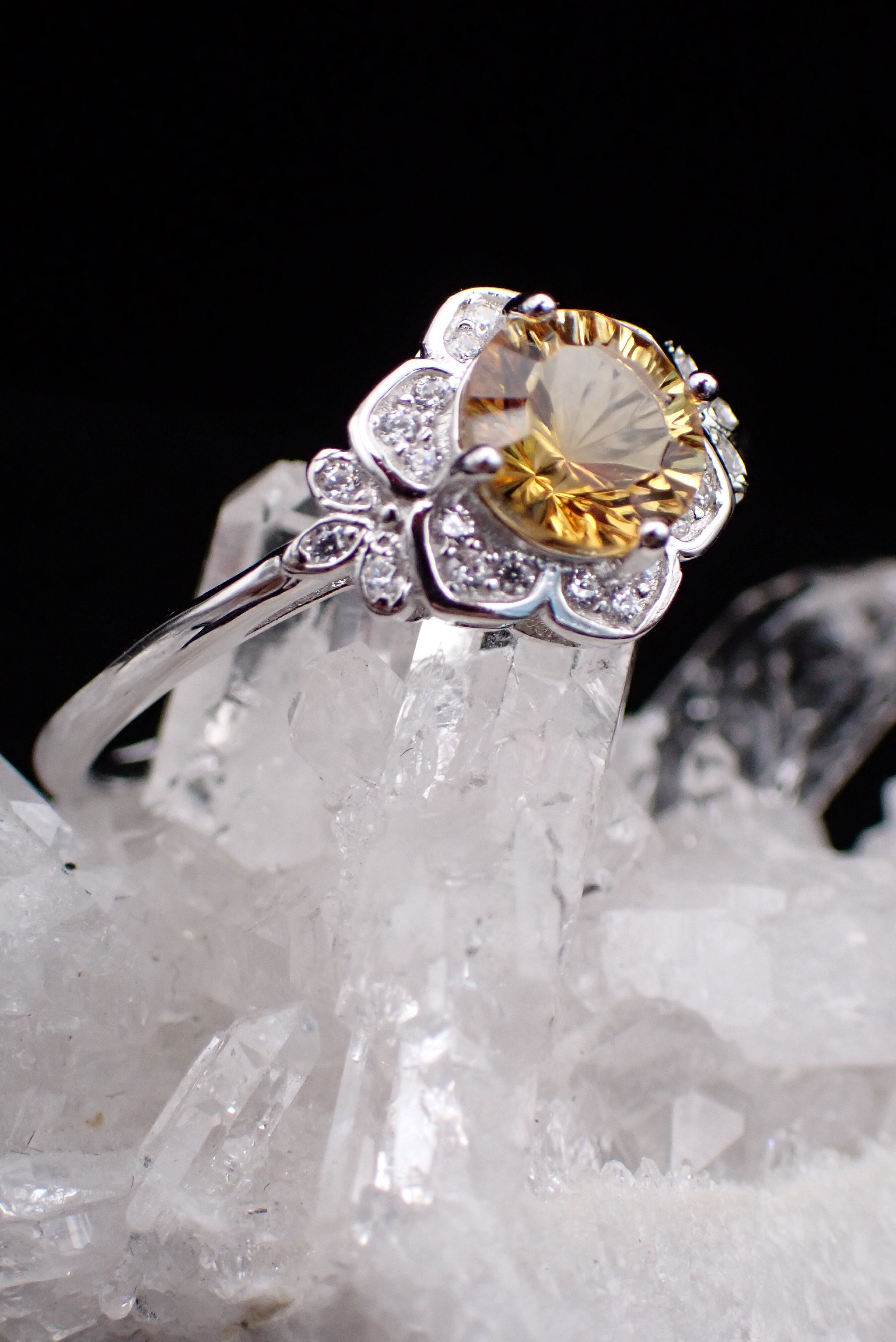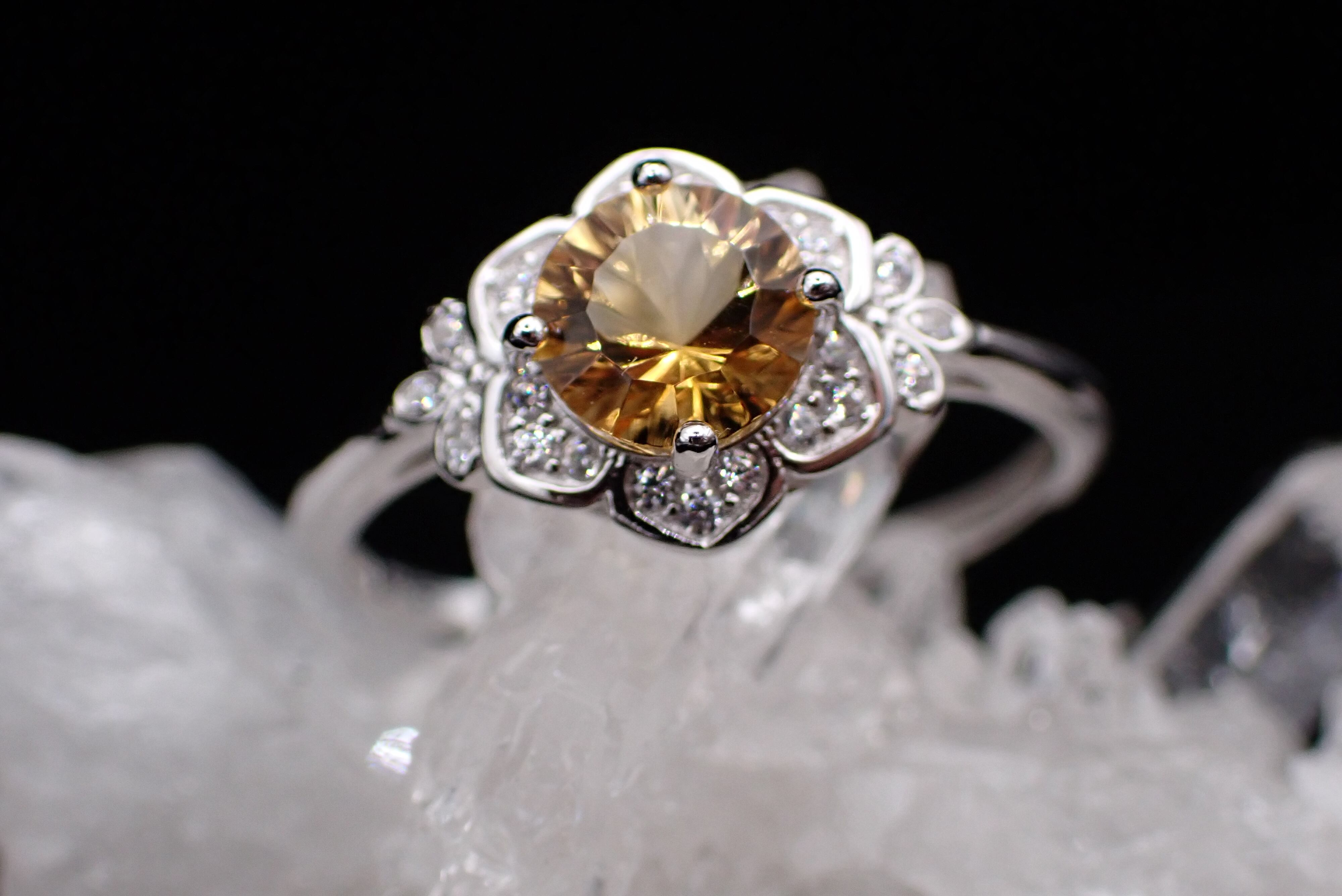 桔梗の花びらの中央に咲き誇る美しいシトリン。