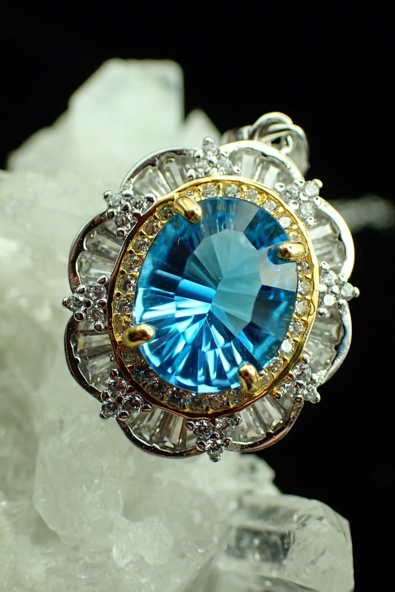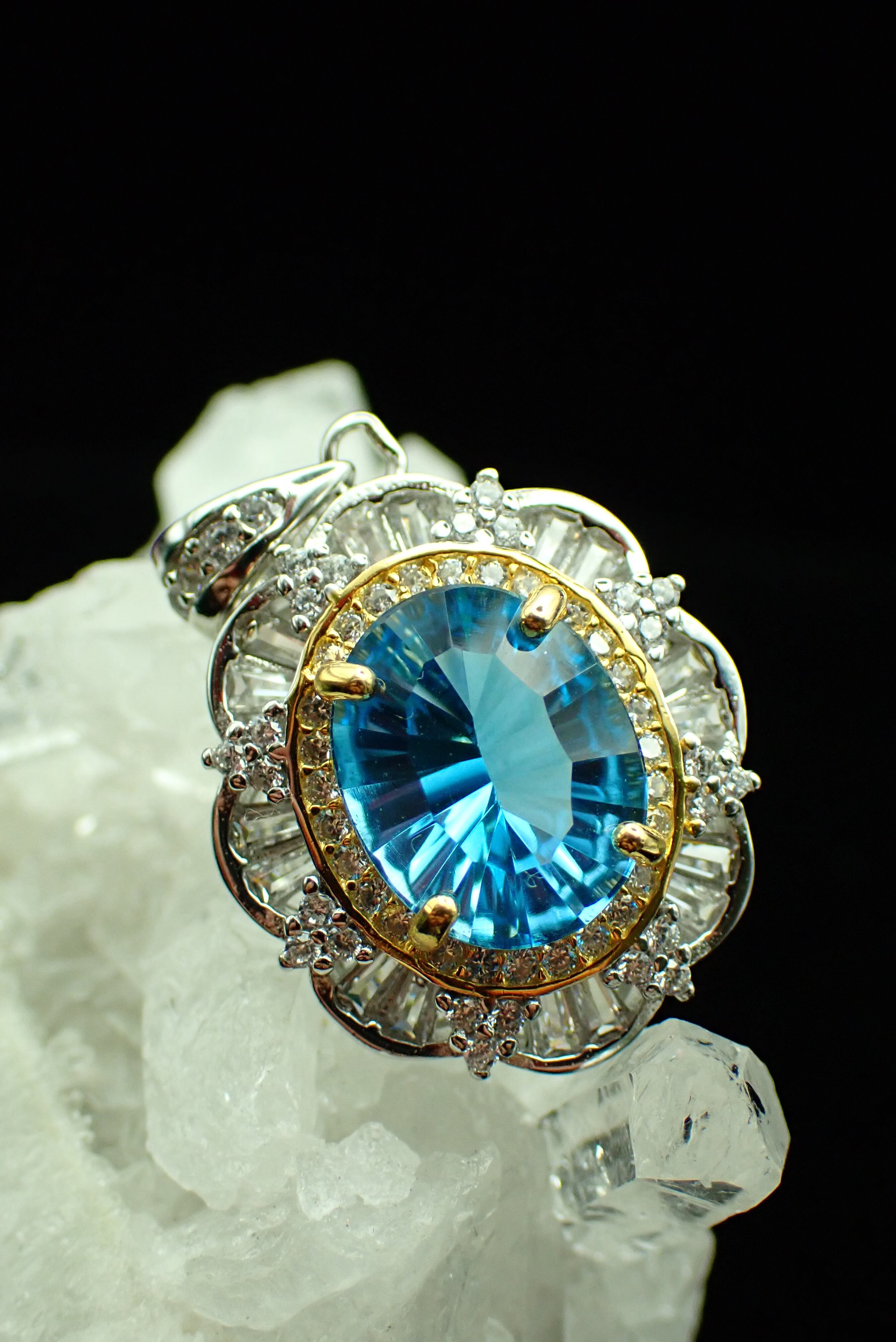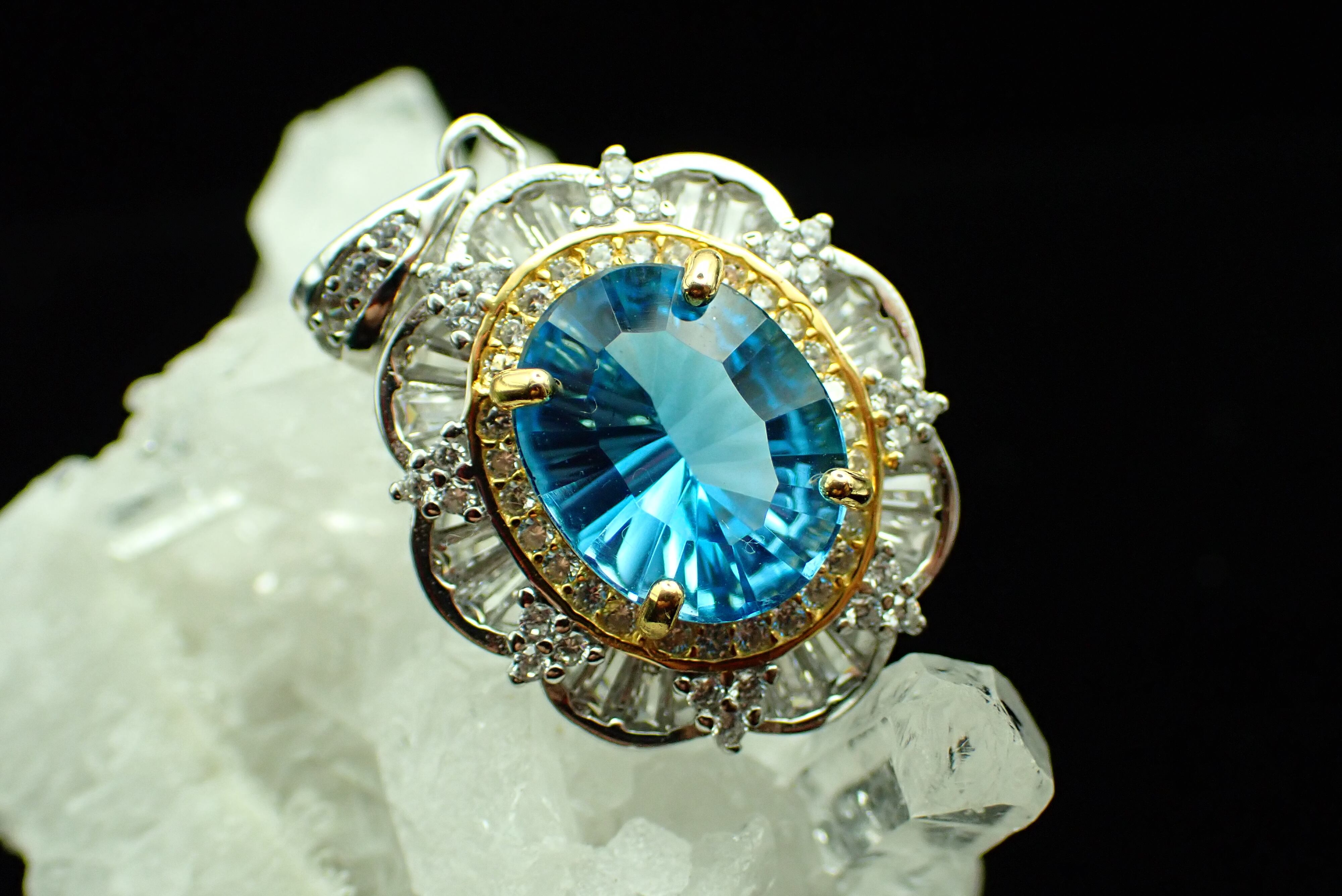 取り巻きのジルコニアたちがキラキラと輝き、ブルートパーズの輝きを引き立てます。