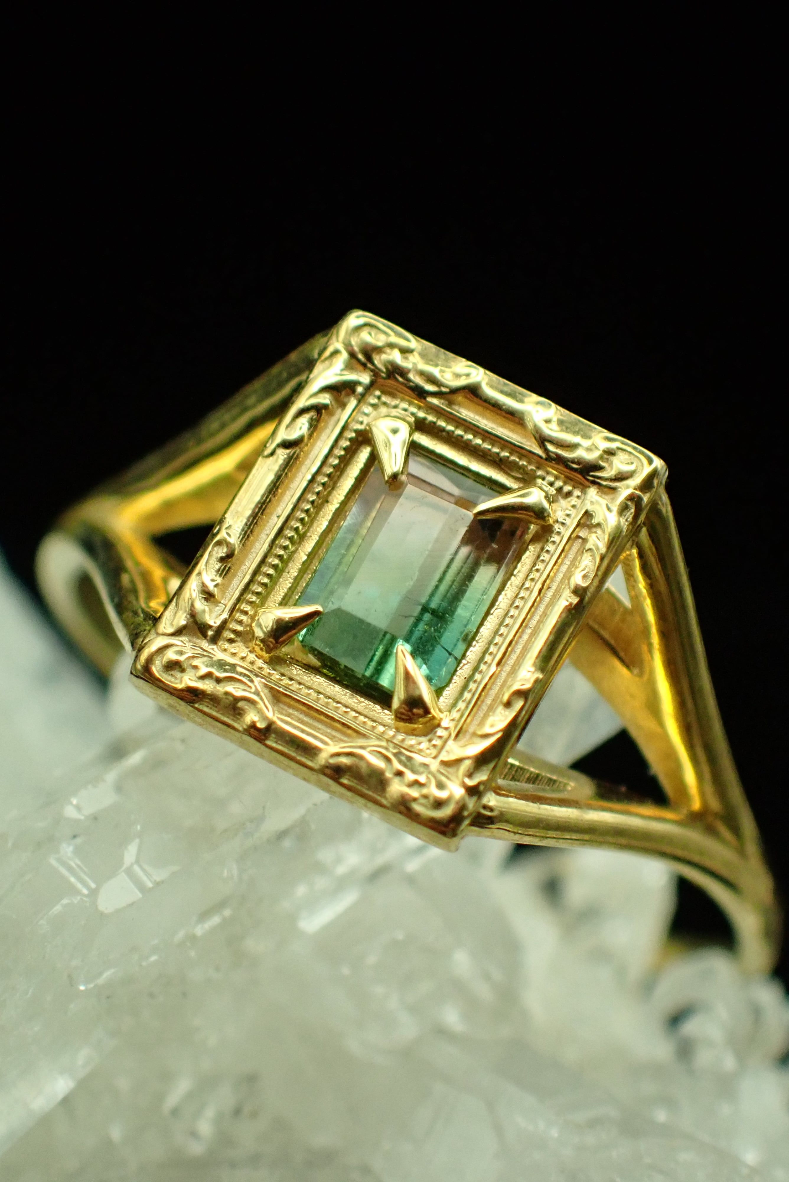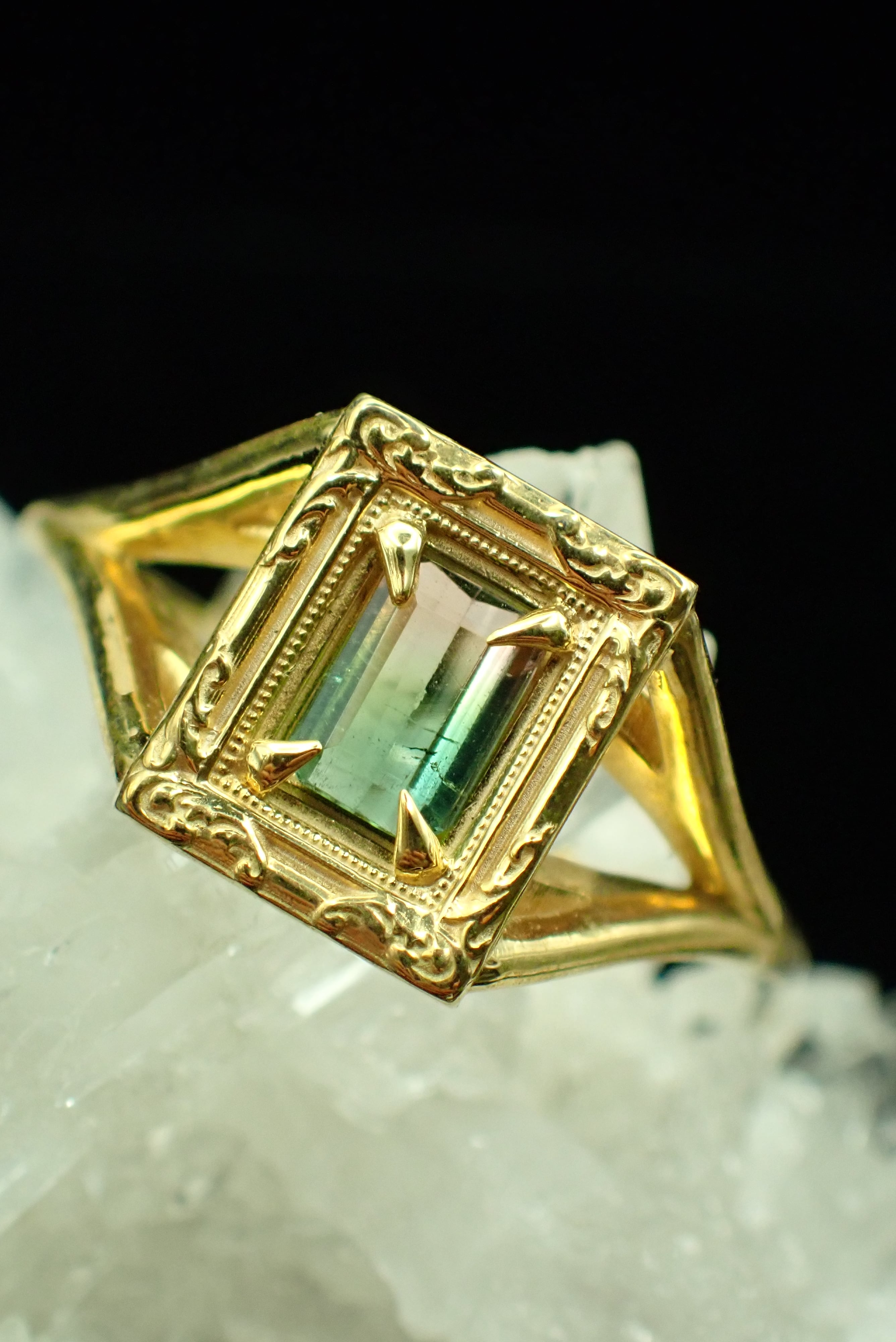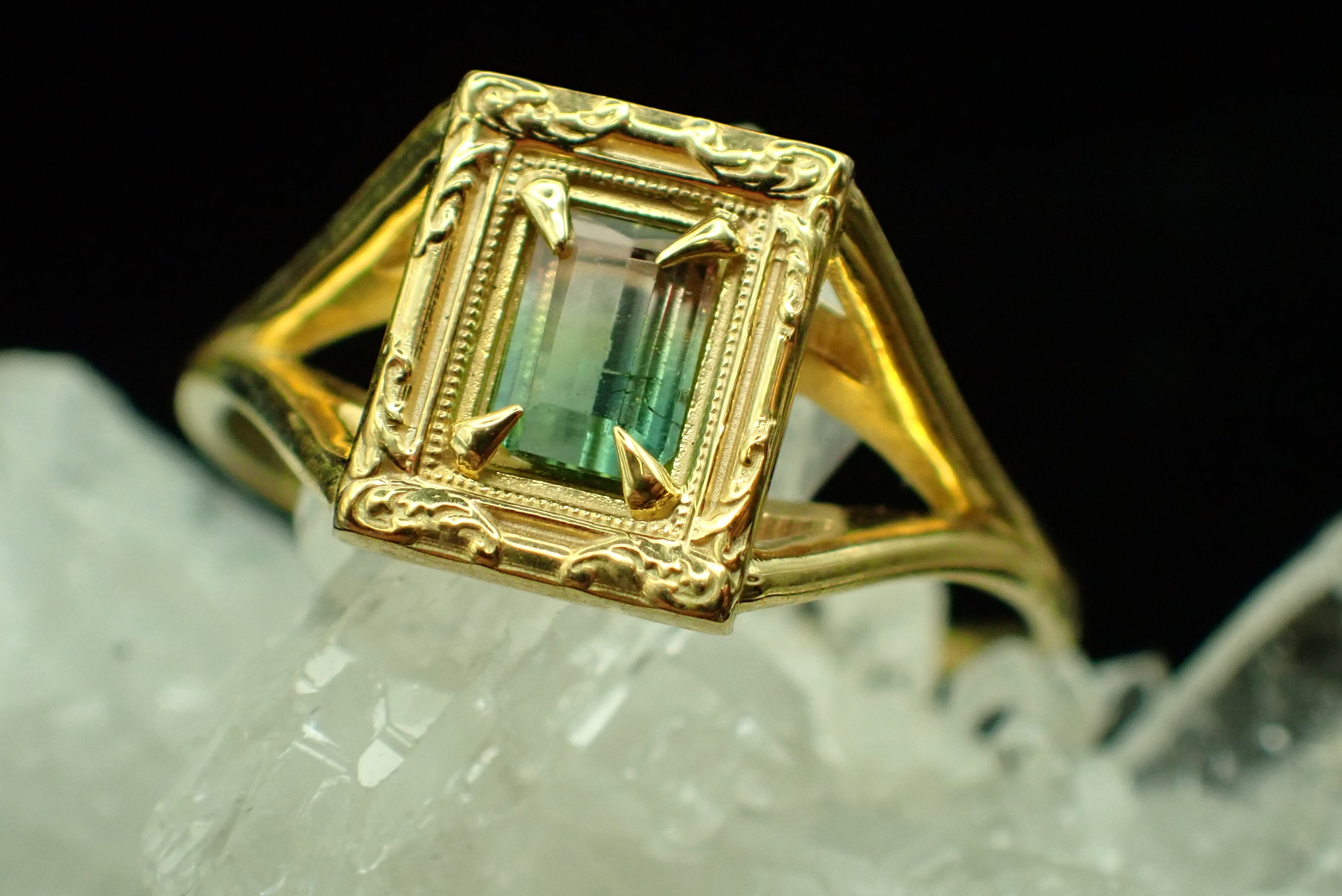 3色もの色を含んだトルマリンを絵画のように、美しい額縁の中へ納めました。