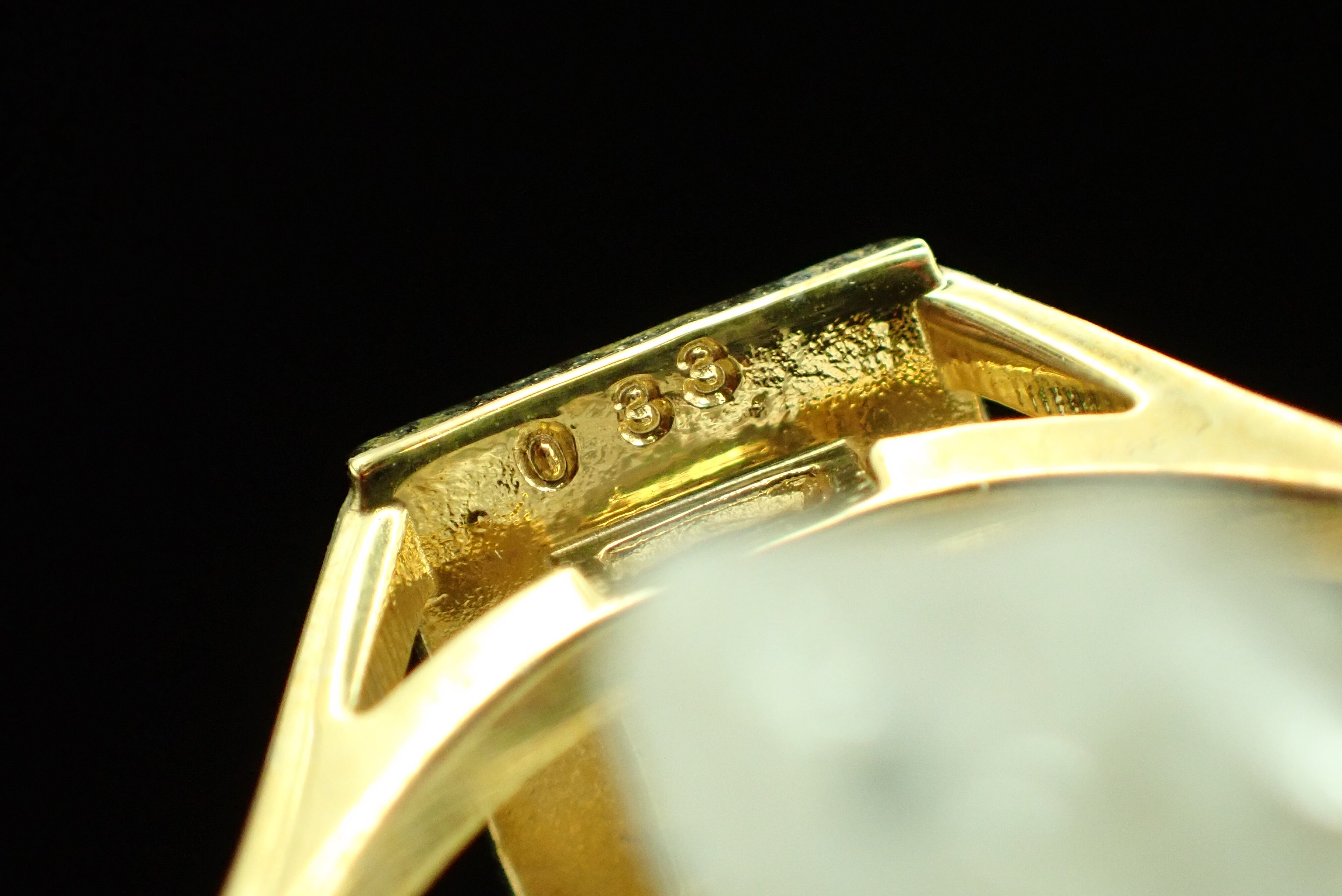 宝石そのものが肌に触れないように、光が入りやすいようにサイドを広く開けて輝きが最大限になるようにお作りしております。