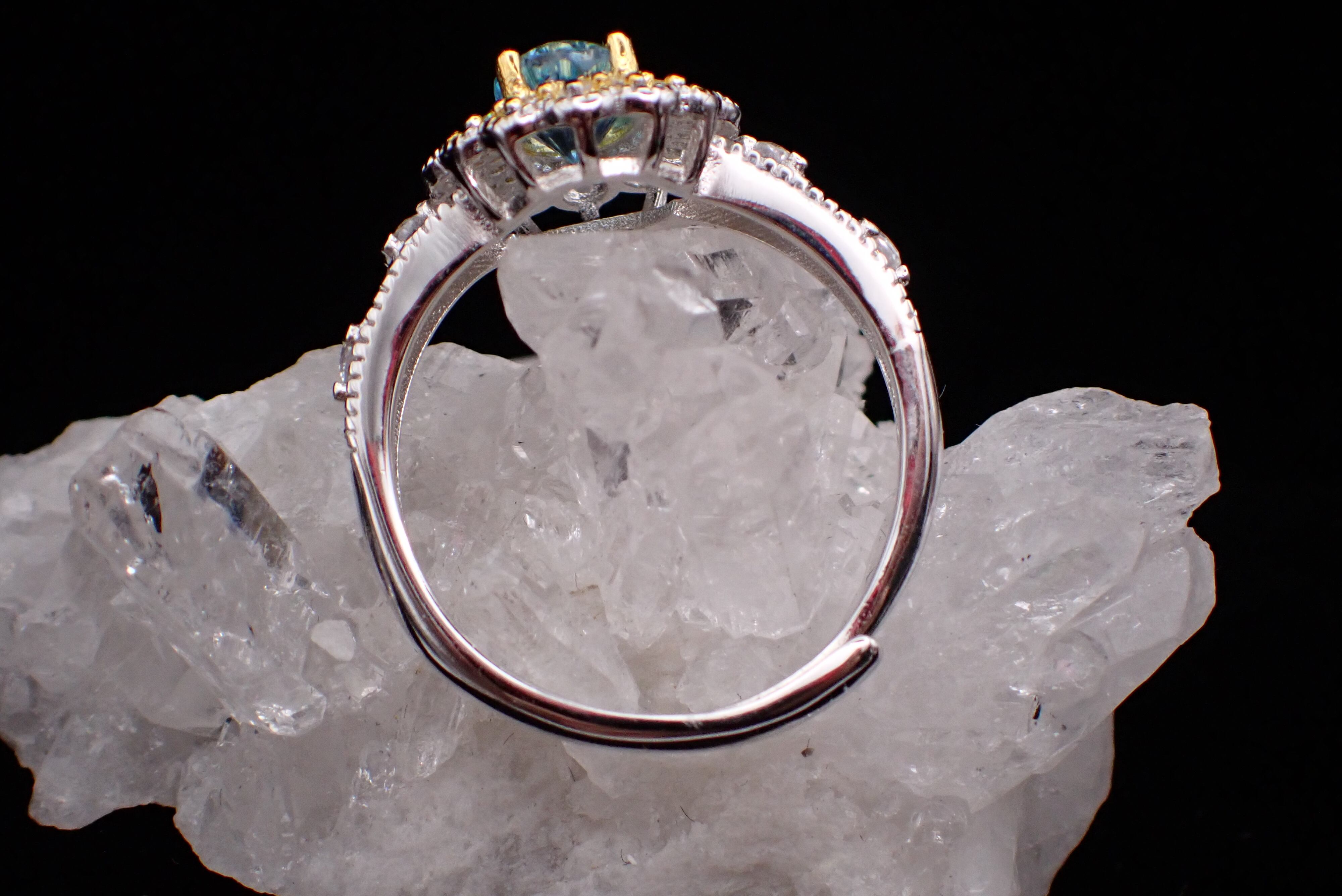 可愛らしく花開くジルコニアたちがキラキラと輝き、美しいブルートパーズの輝きを引き立てます。