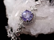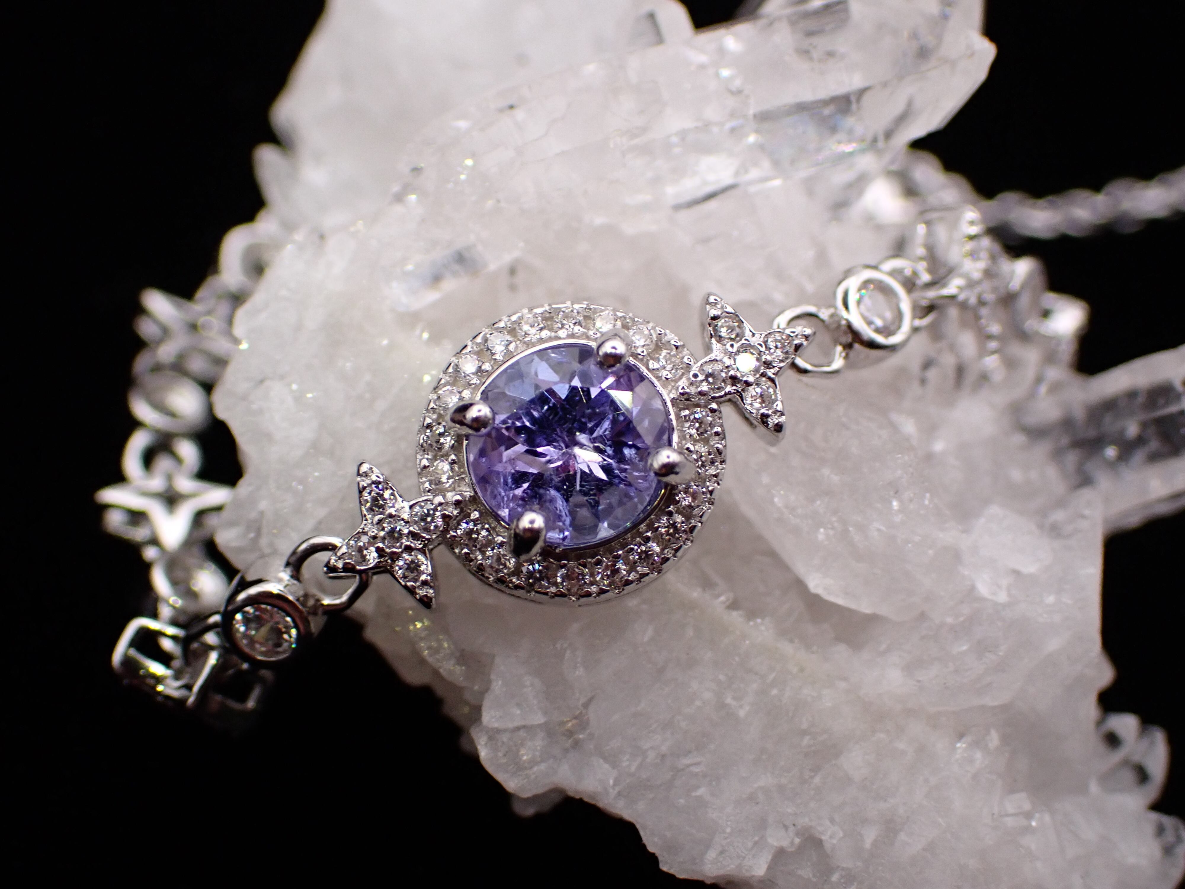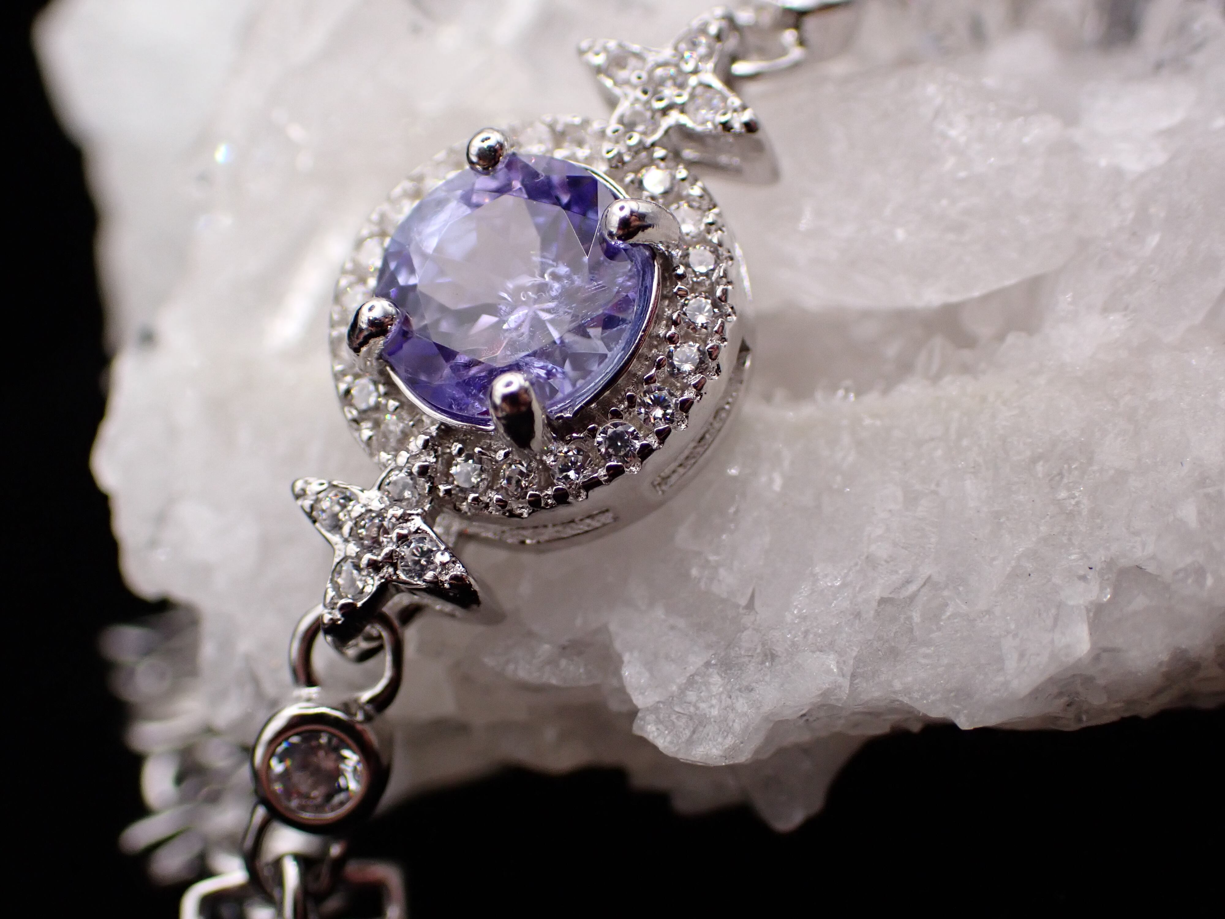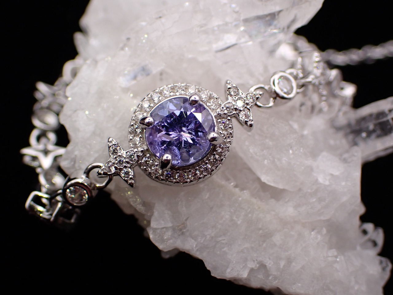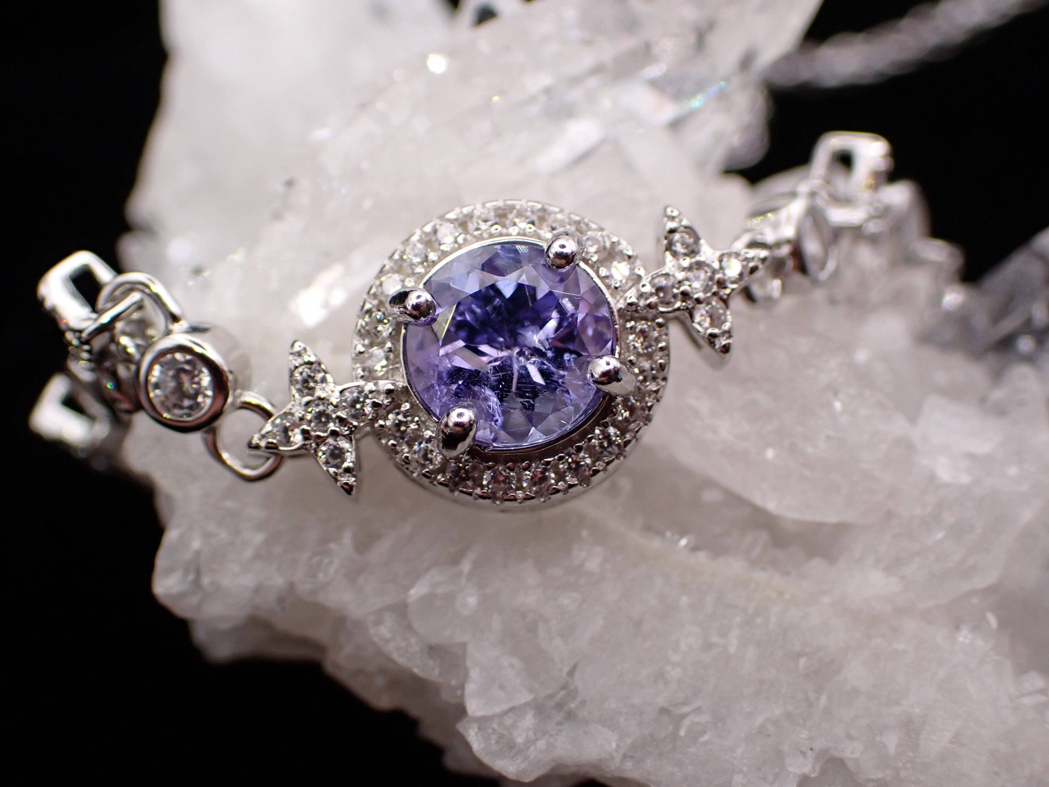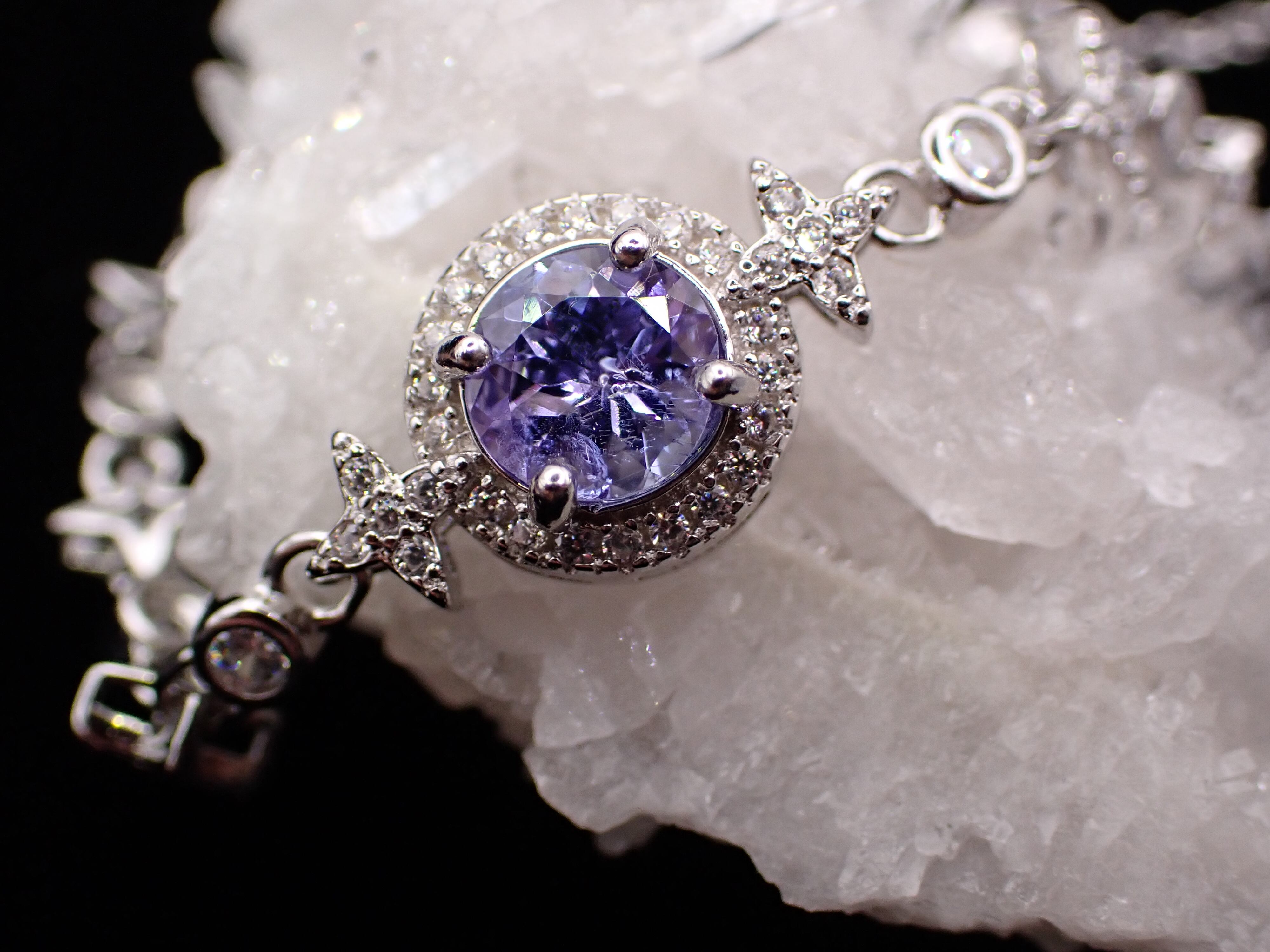 まるで流星群のように星たちが連なった中央に、色の濃いタンザナイトが輝きます。