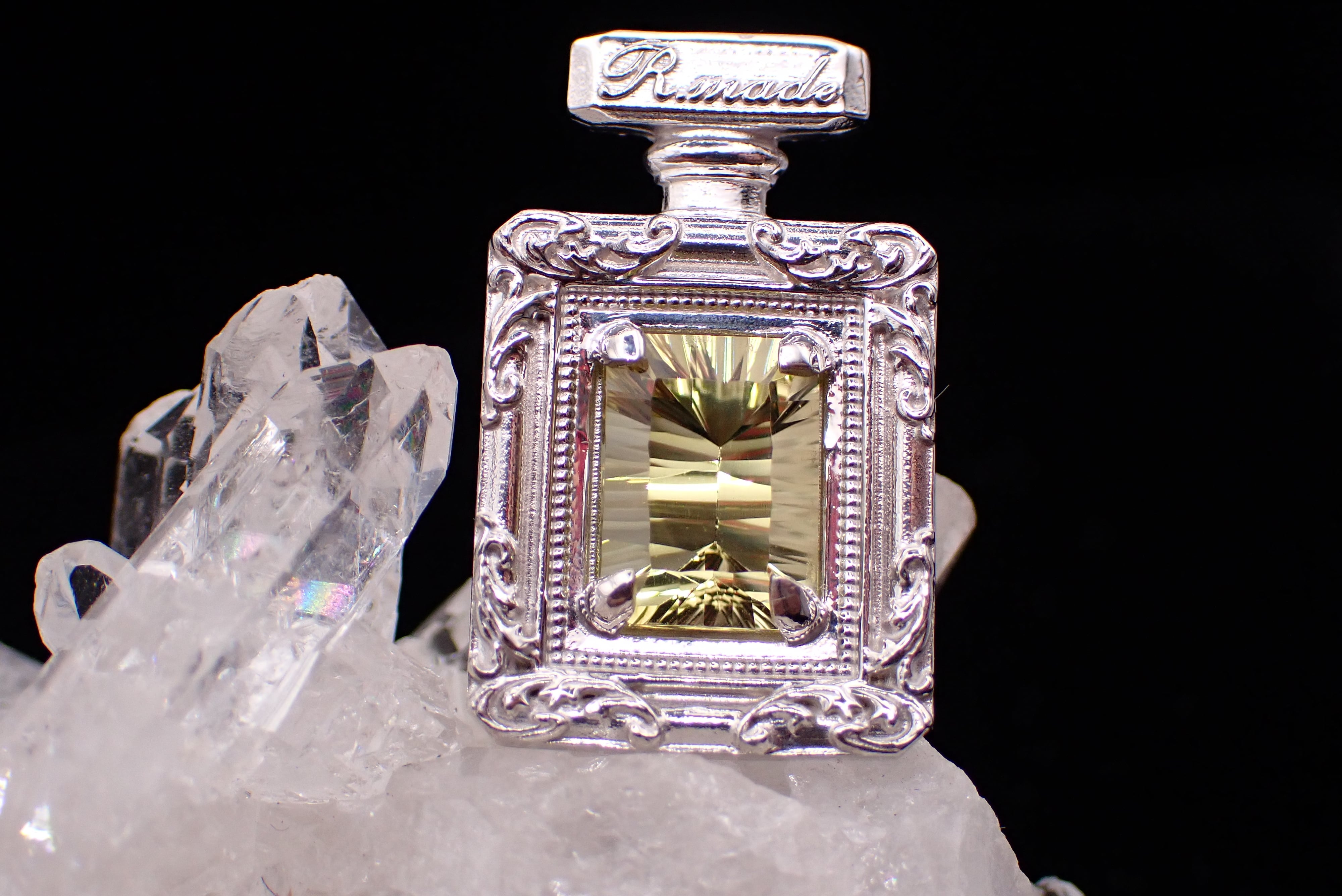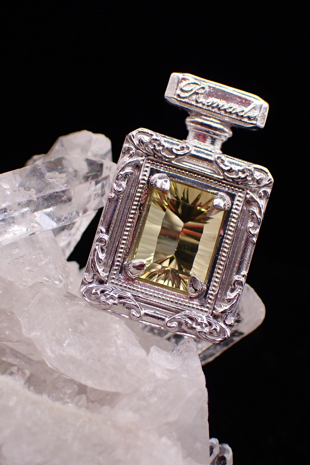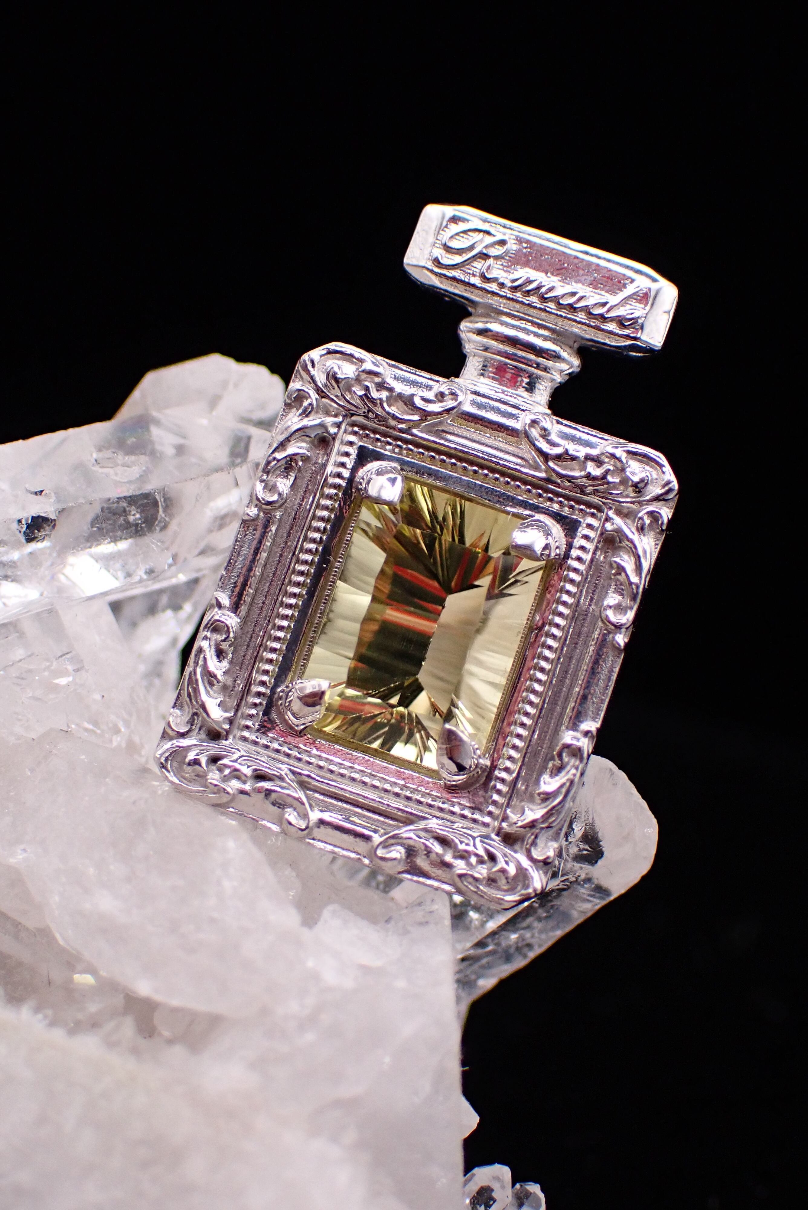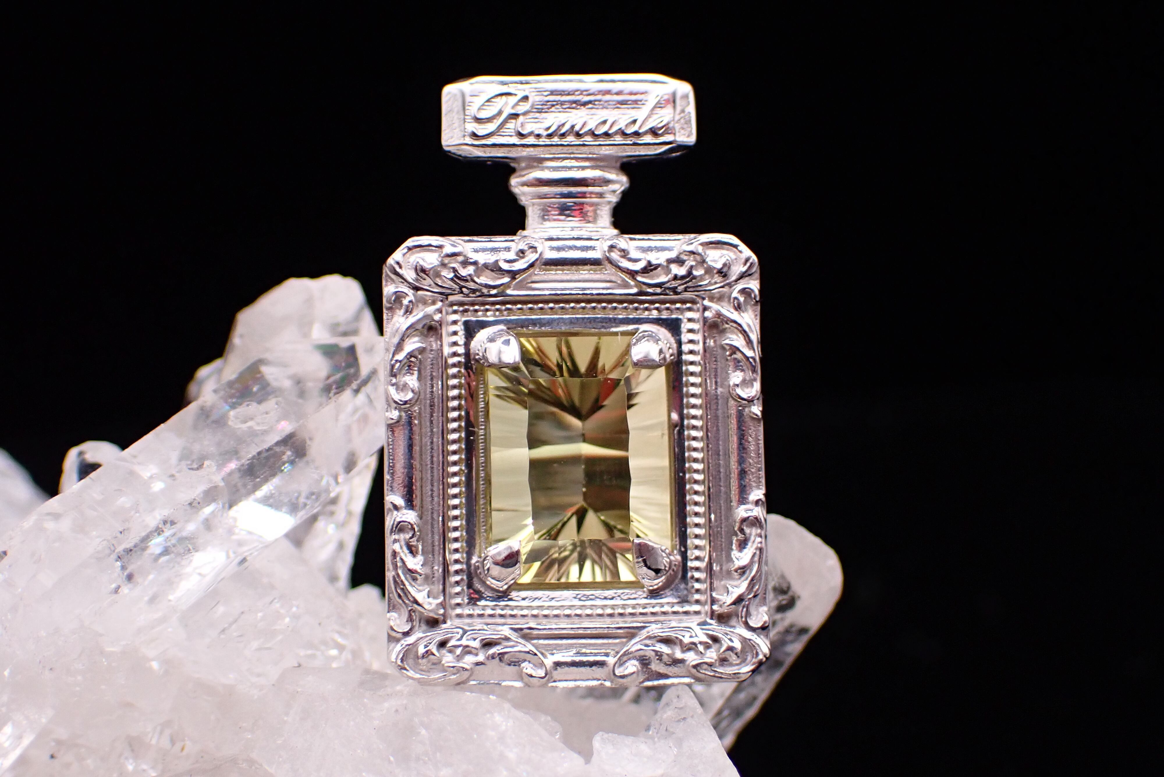 アール・ヌーヴォーシリーズの中でも人気の額縁デザインを元に、芳しい香りが広がるような香水瓶の中へ石を納めました。