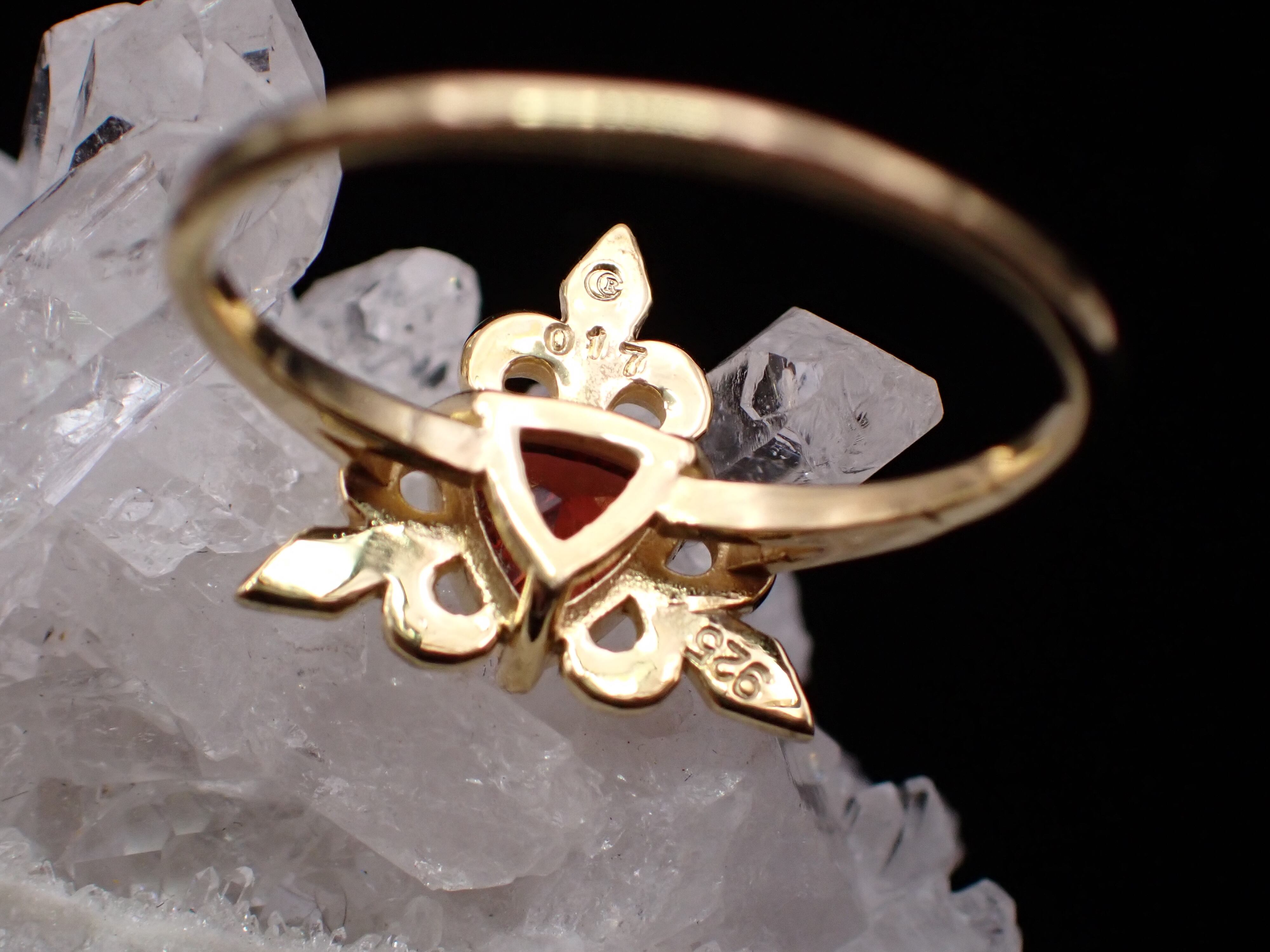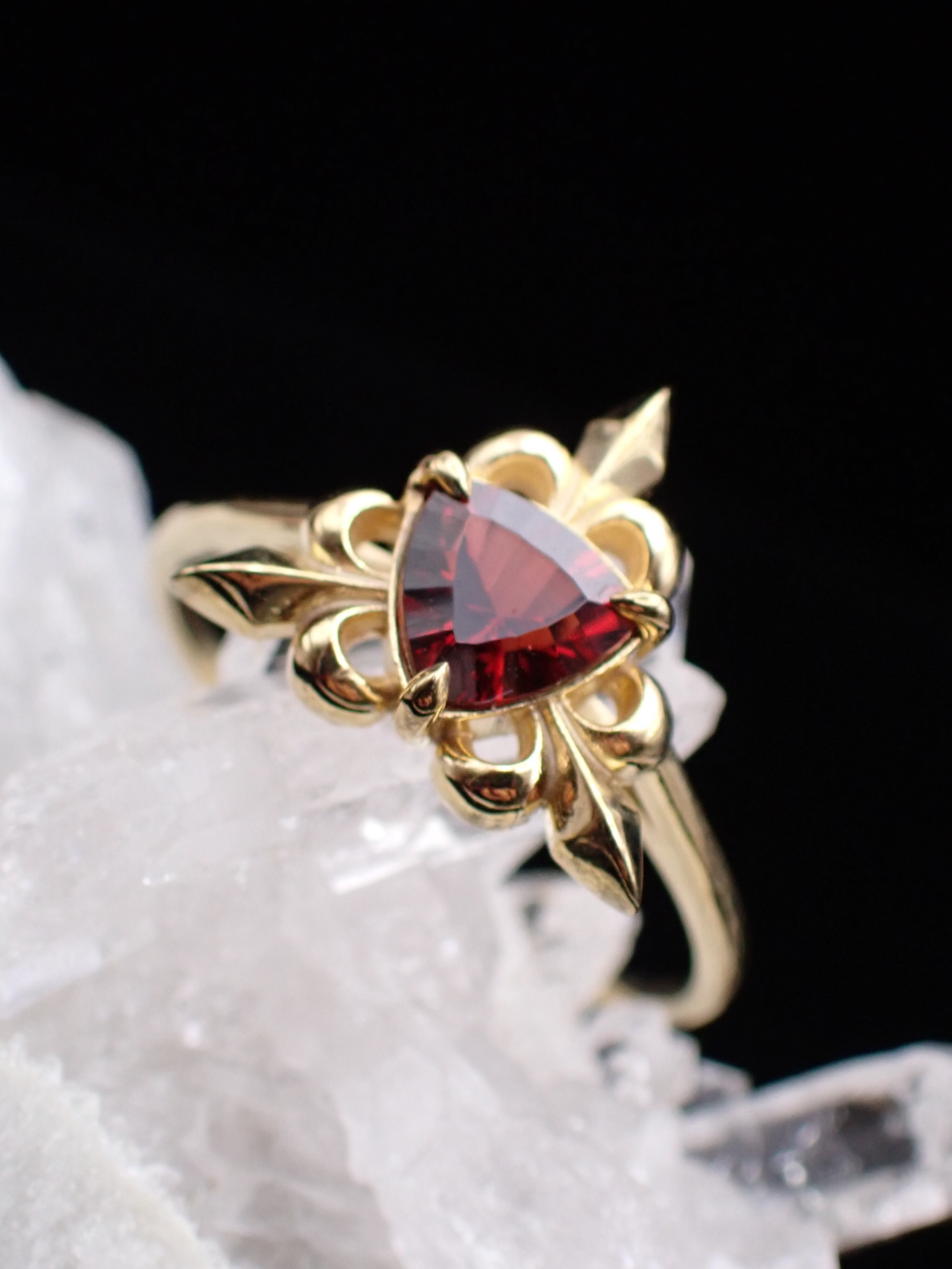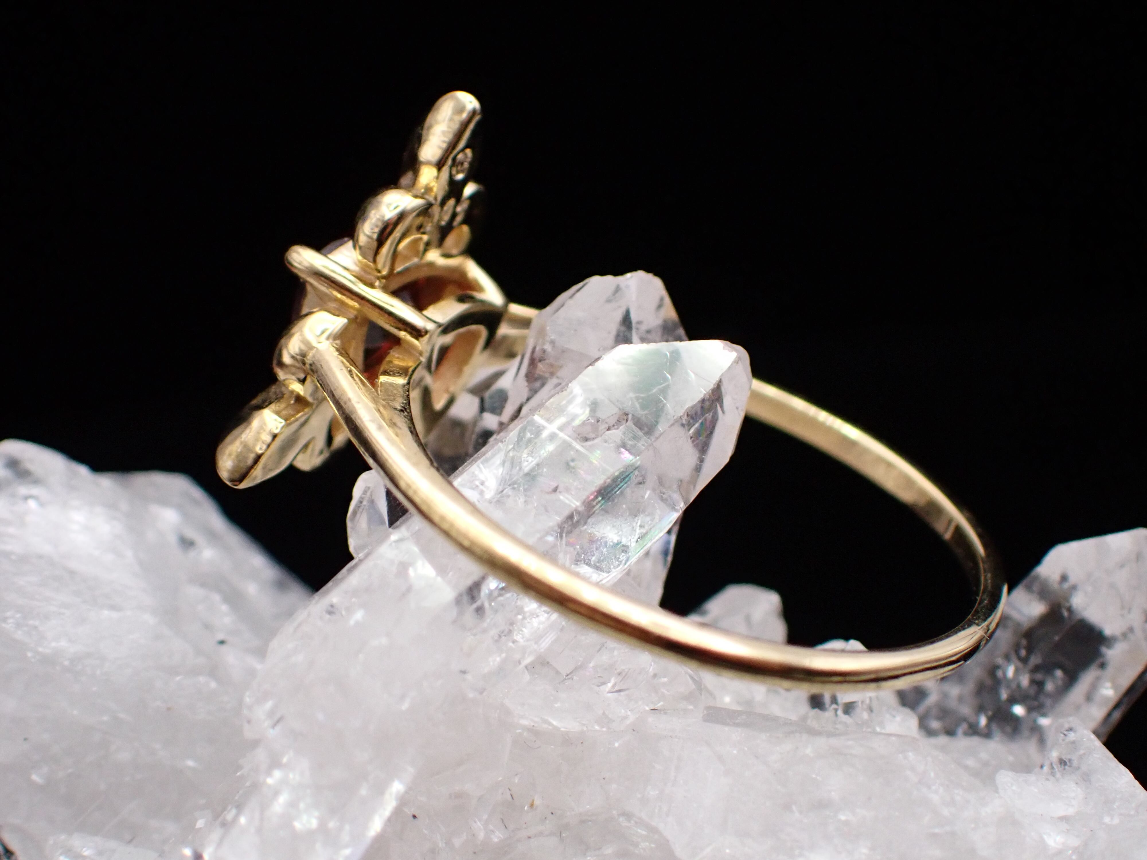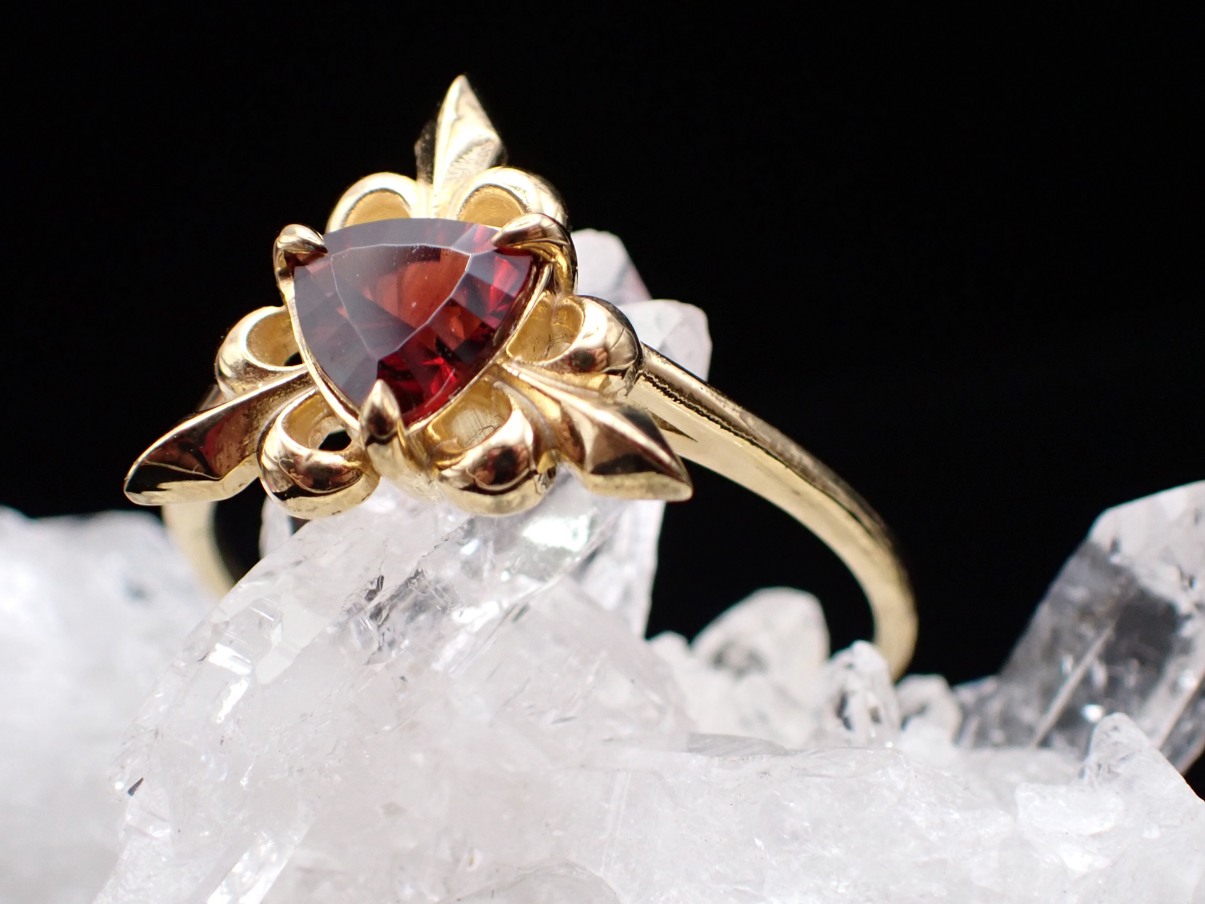 まるで絵画のように美しい百合の額縁に、コンケーブカットのガーネットを納めました。