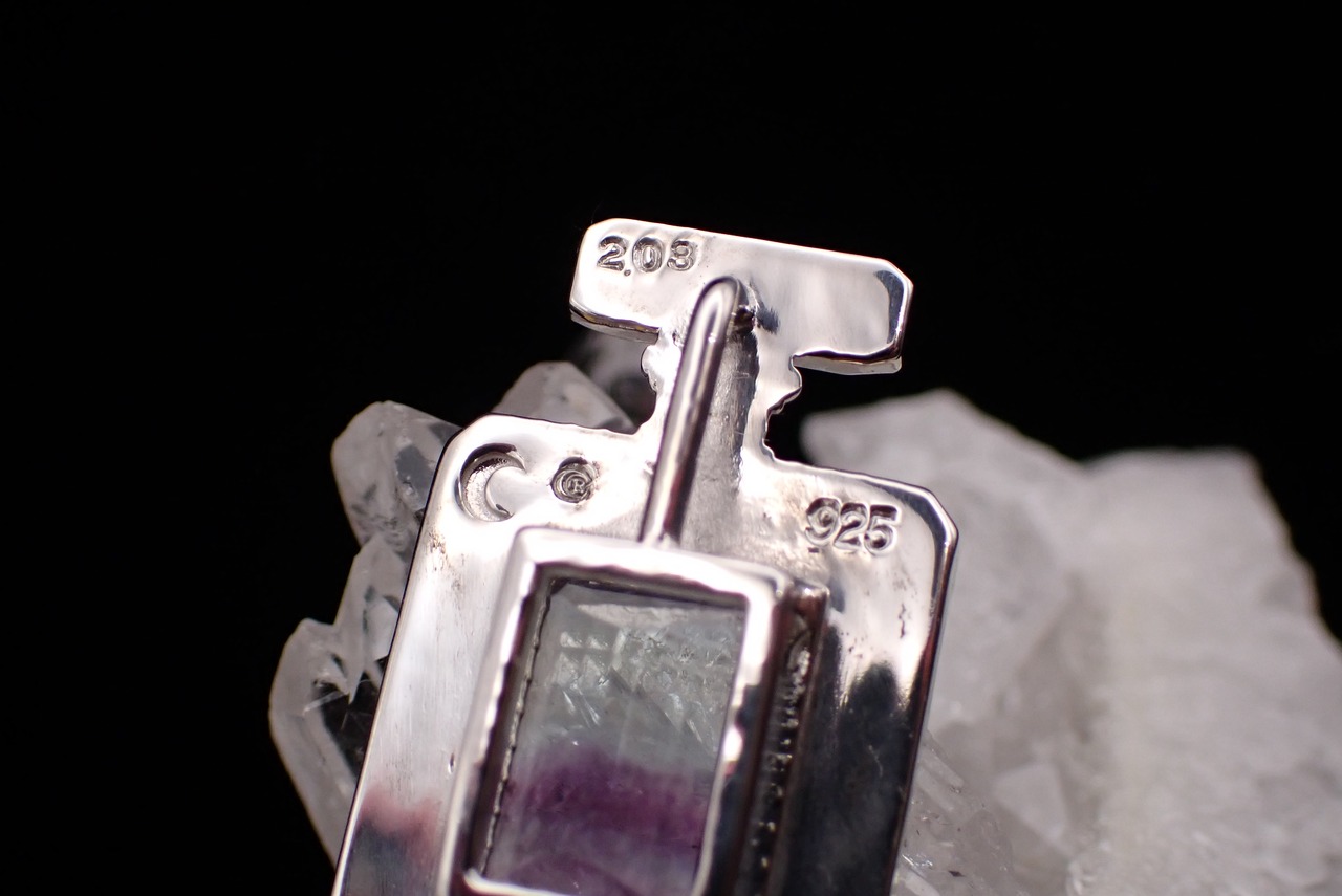 額縁の裏側はフラットにし、石が存分に光を蓄えながらも軽く使いやすいペンダントとなっています。