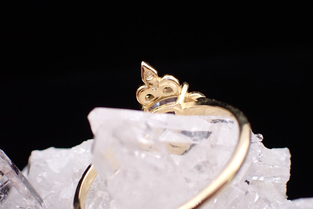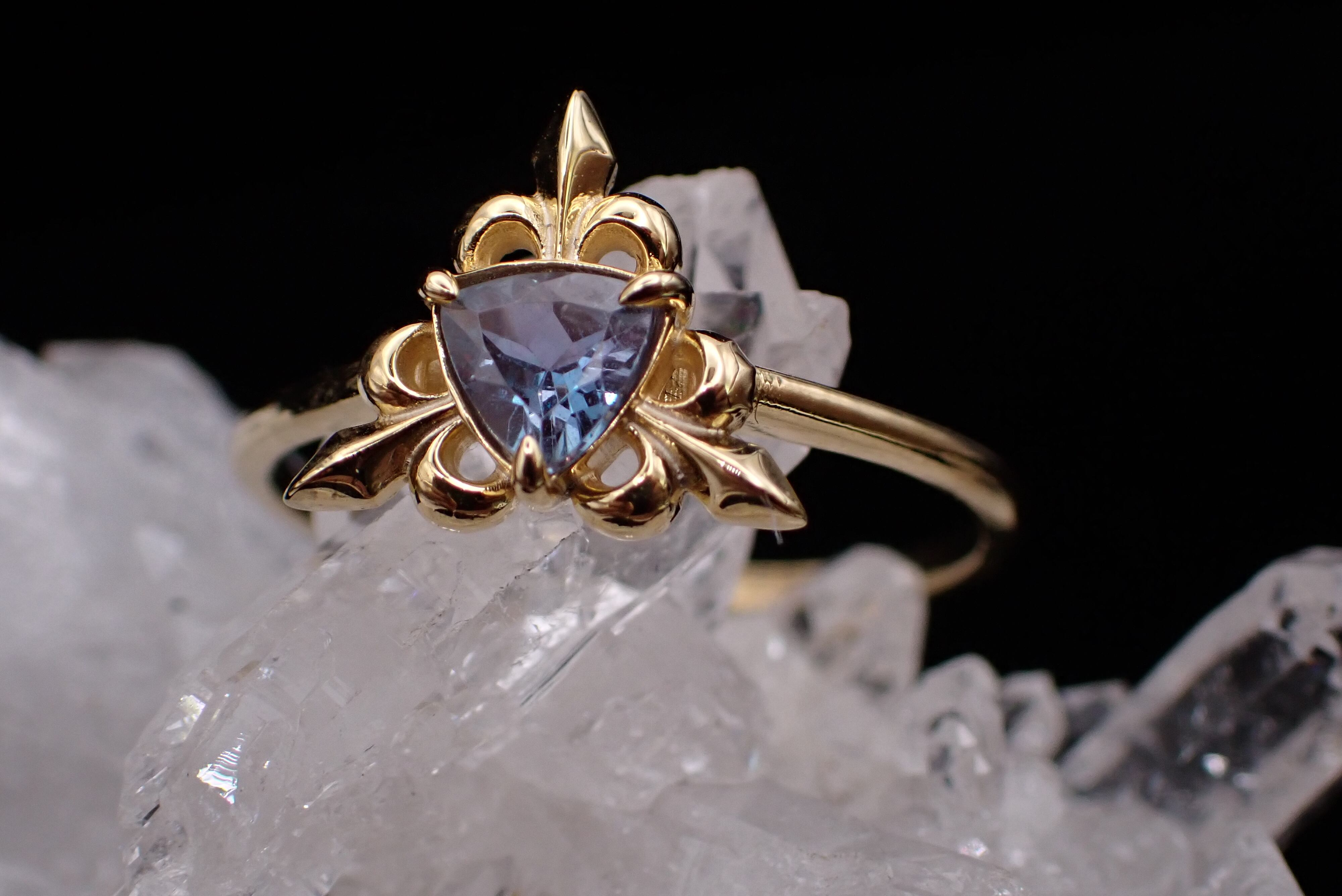 聖母マリアの花であり、永遠の愛の象徴とされる百合モチーフが剣のように石を守り、美しく滑らかに輝きます。