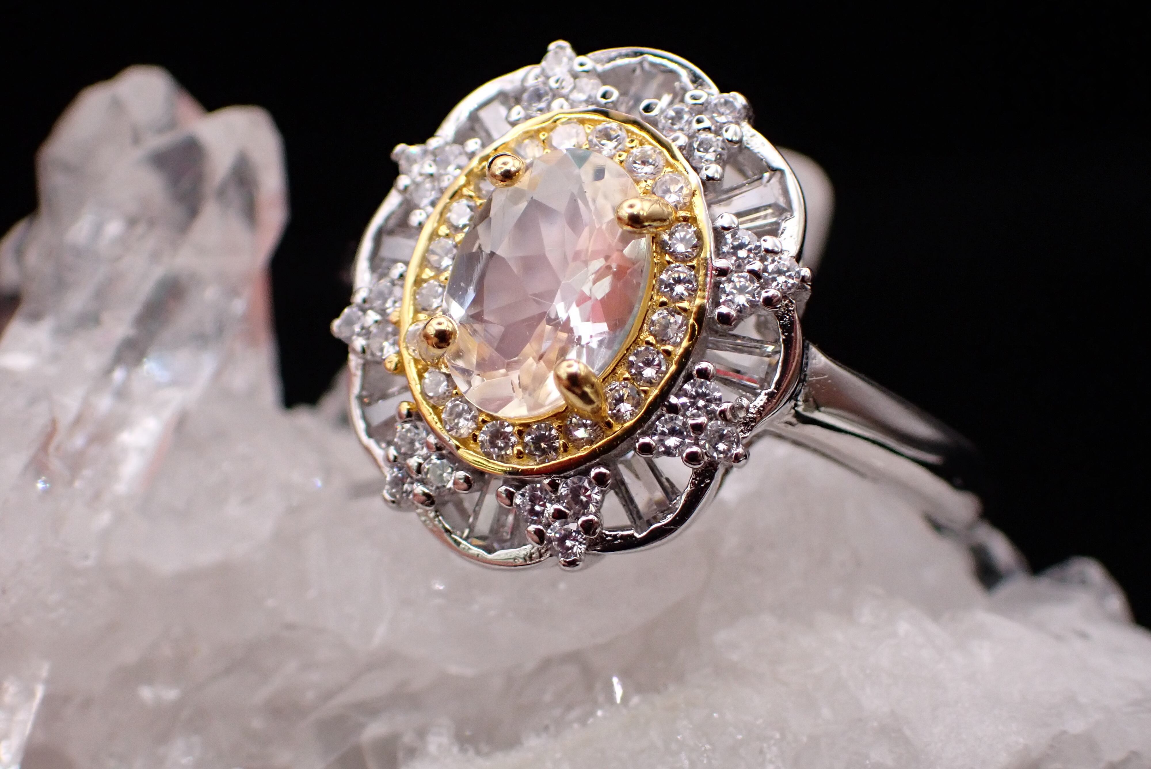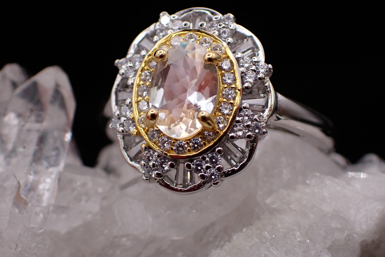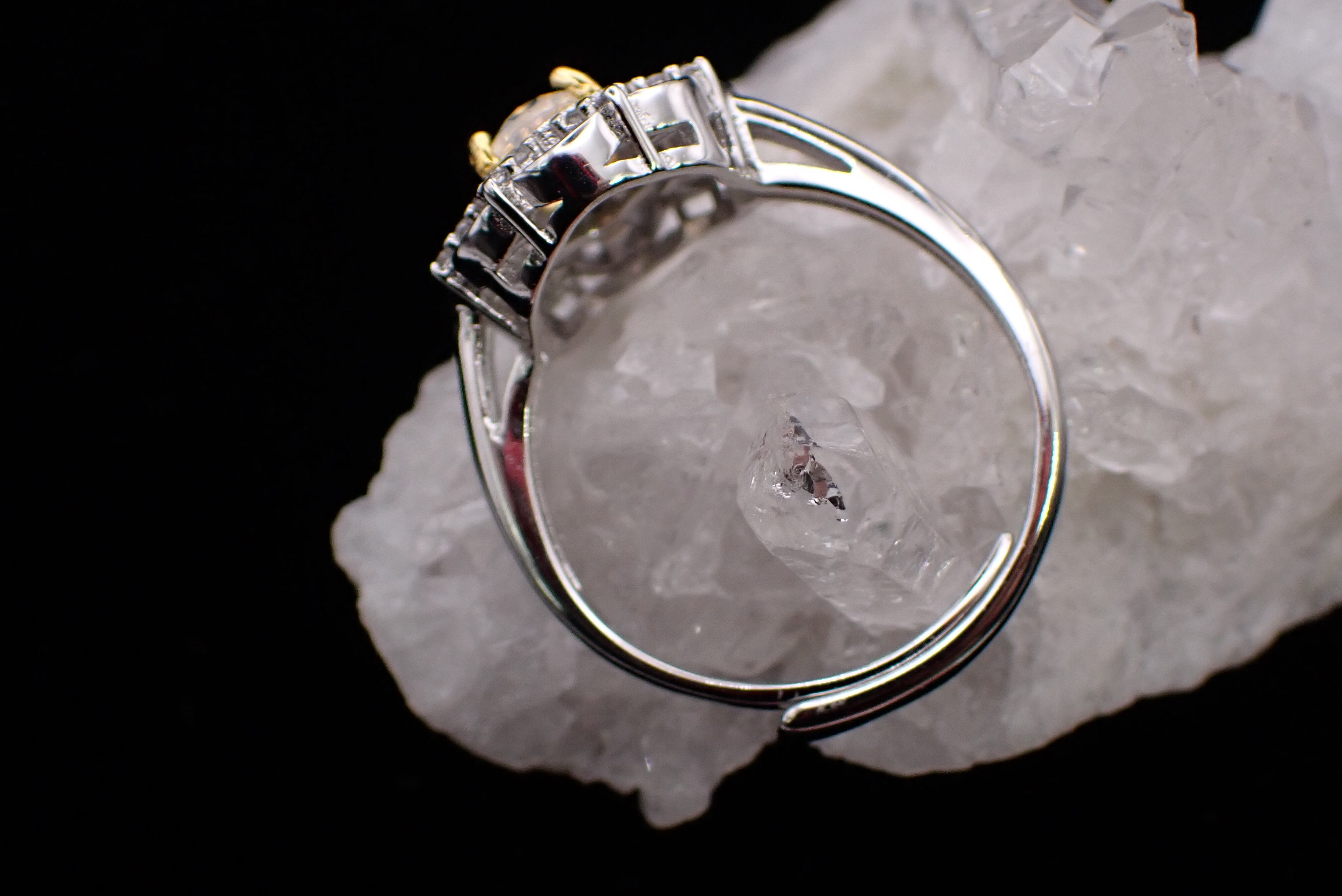 取り巻きのジルコニアたちがキラキラと輝き、アンデシンラブラドライトの美しい輝きを引き立てます。