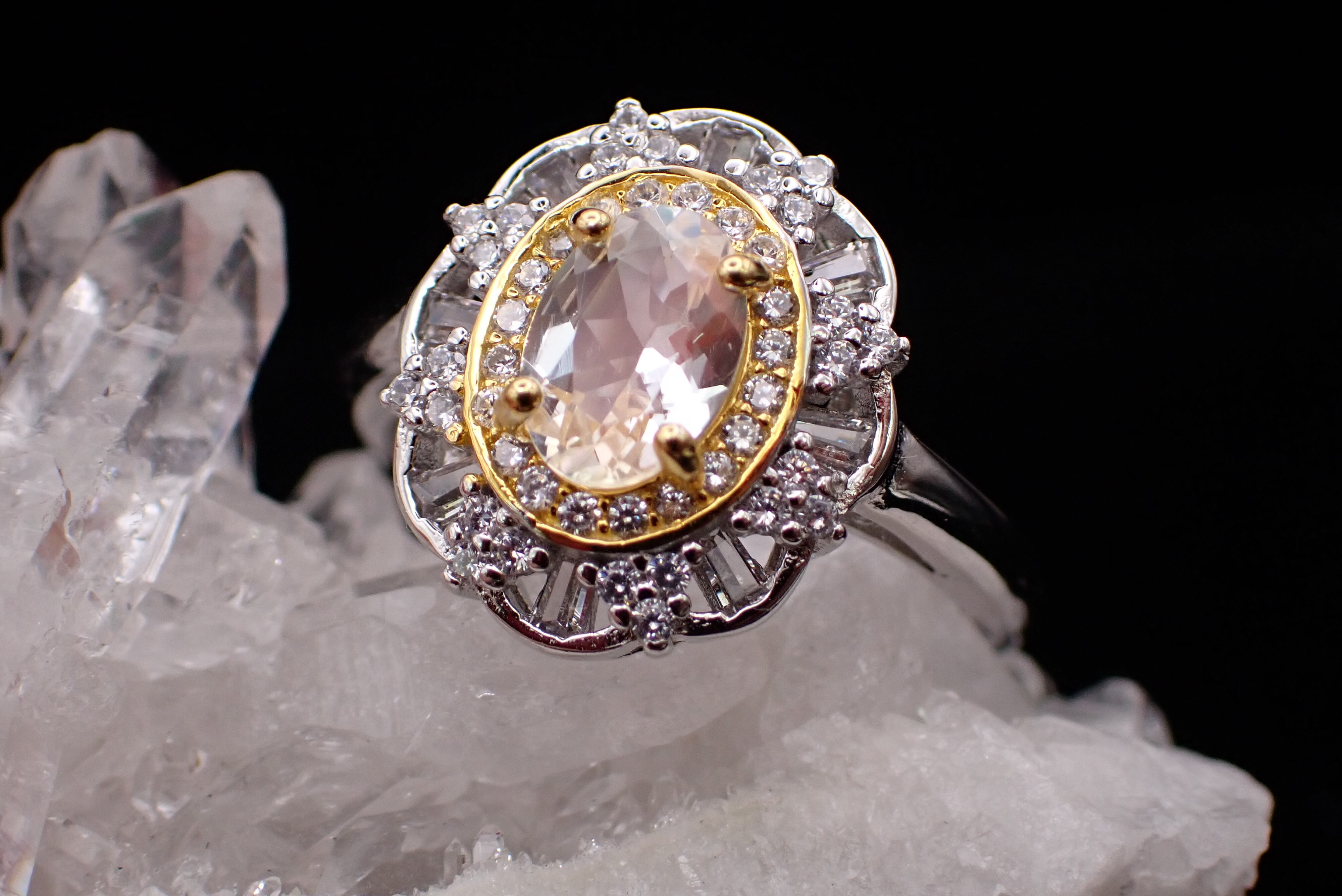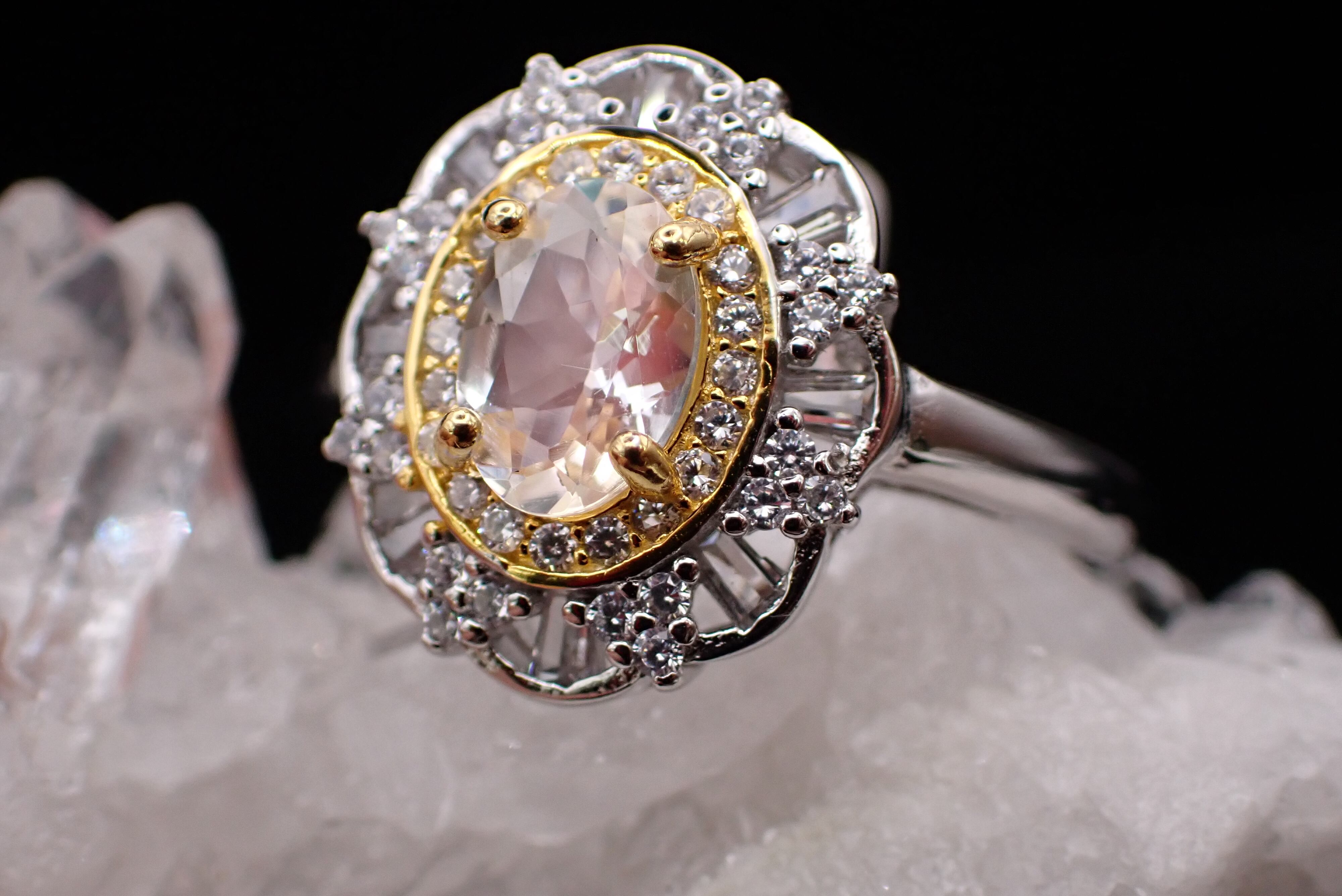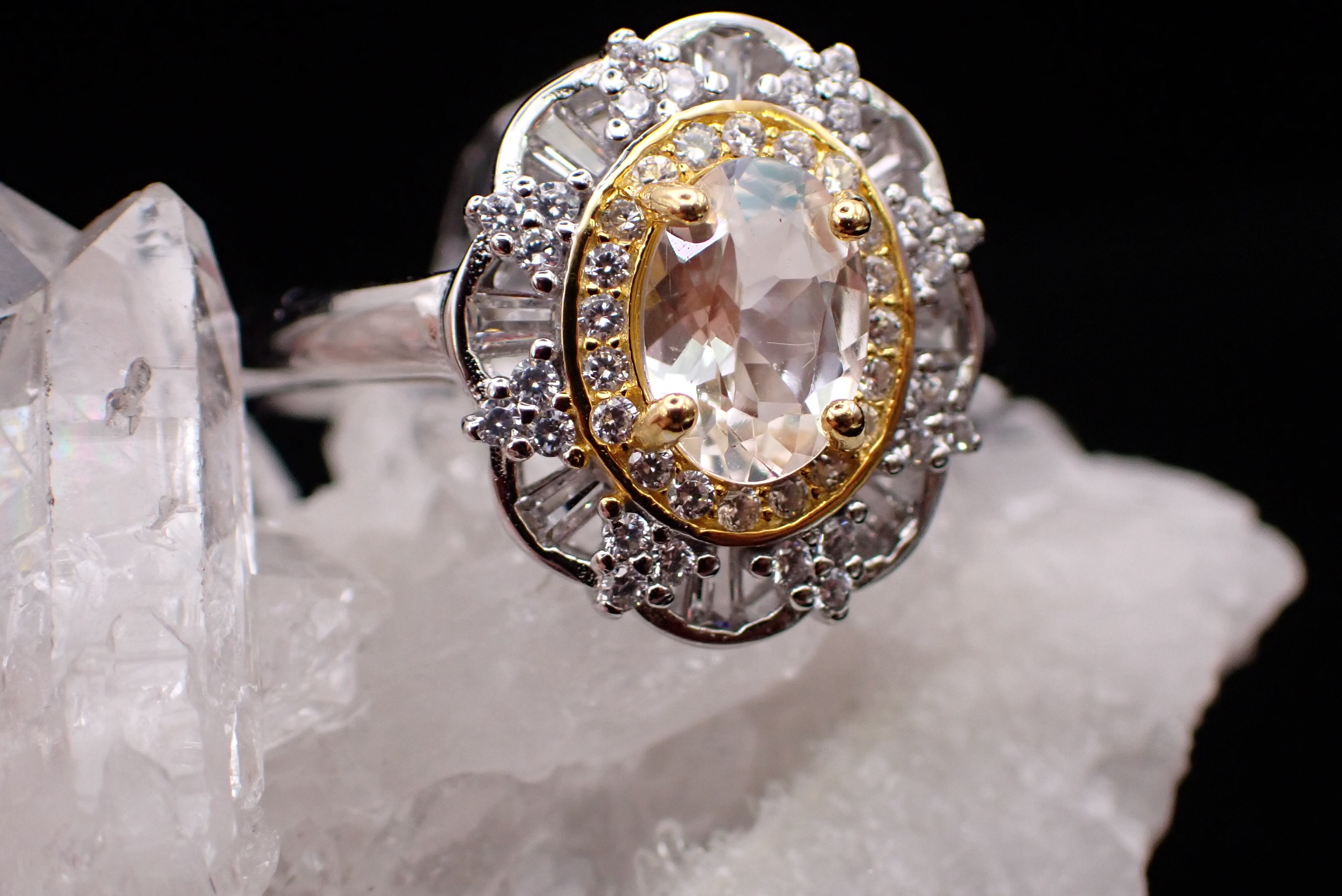 取り巻きのジルコニアたちがキラキラと輝き、アンデシンラブラドライトの美しい輝きを引き立てます。