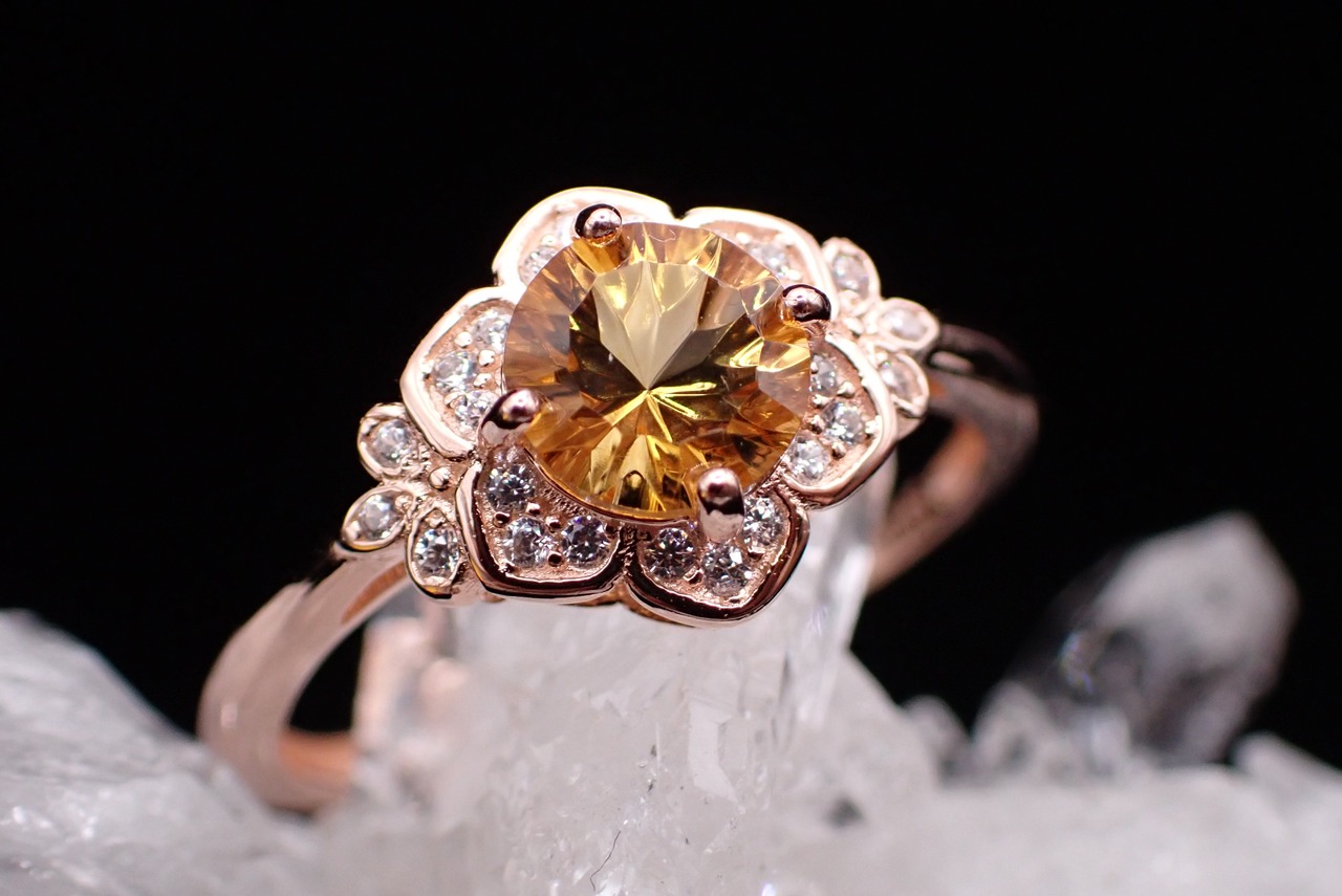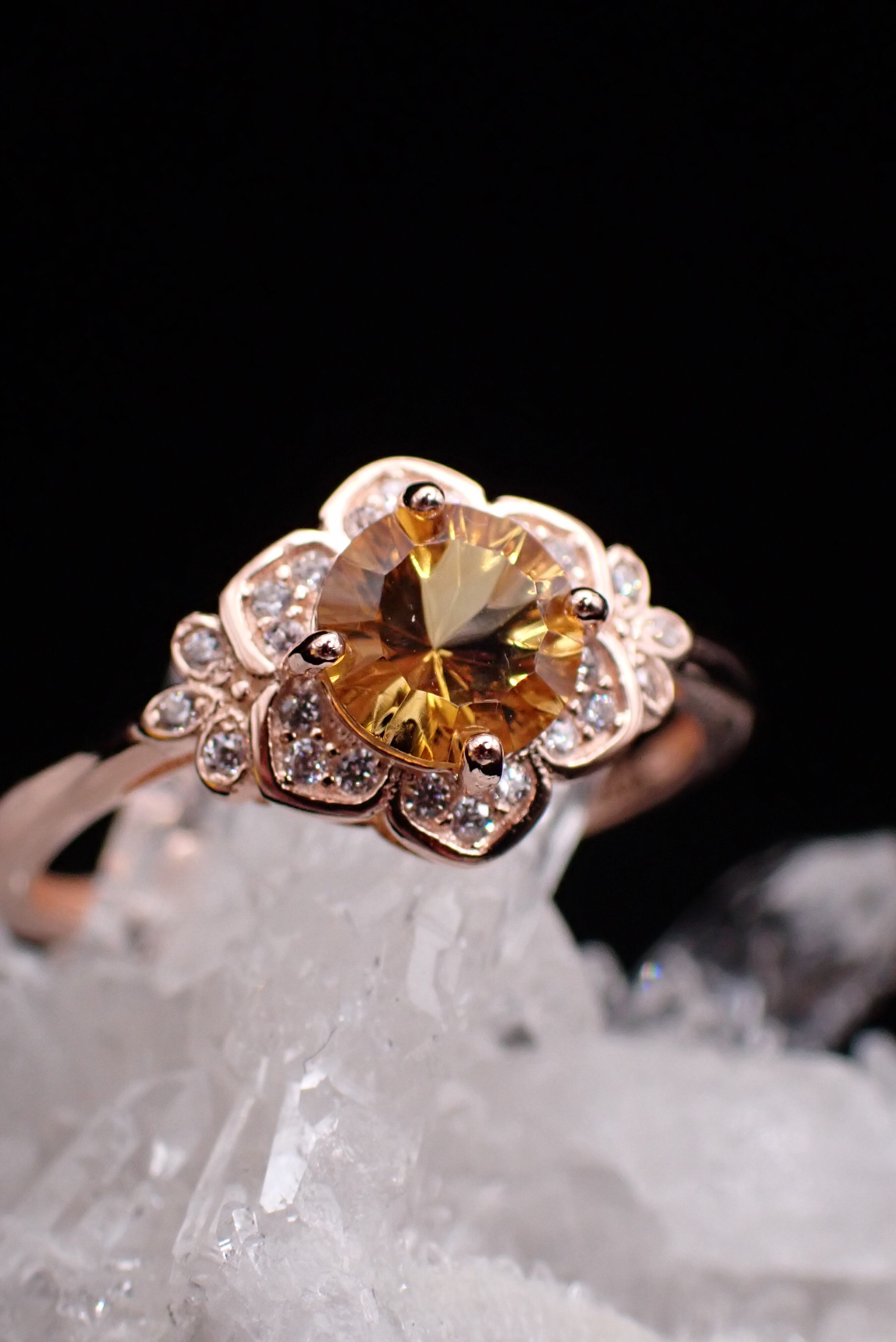 桔梗の花びらの中央に咲き誇る美しいシトリン。