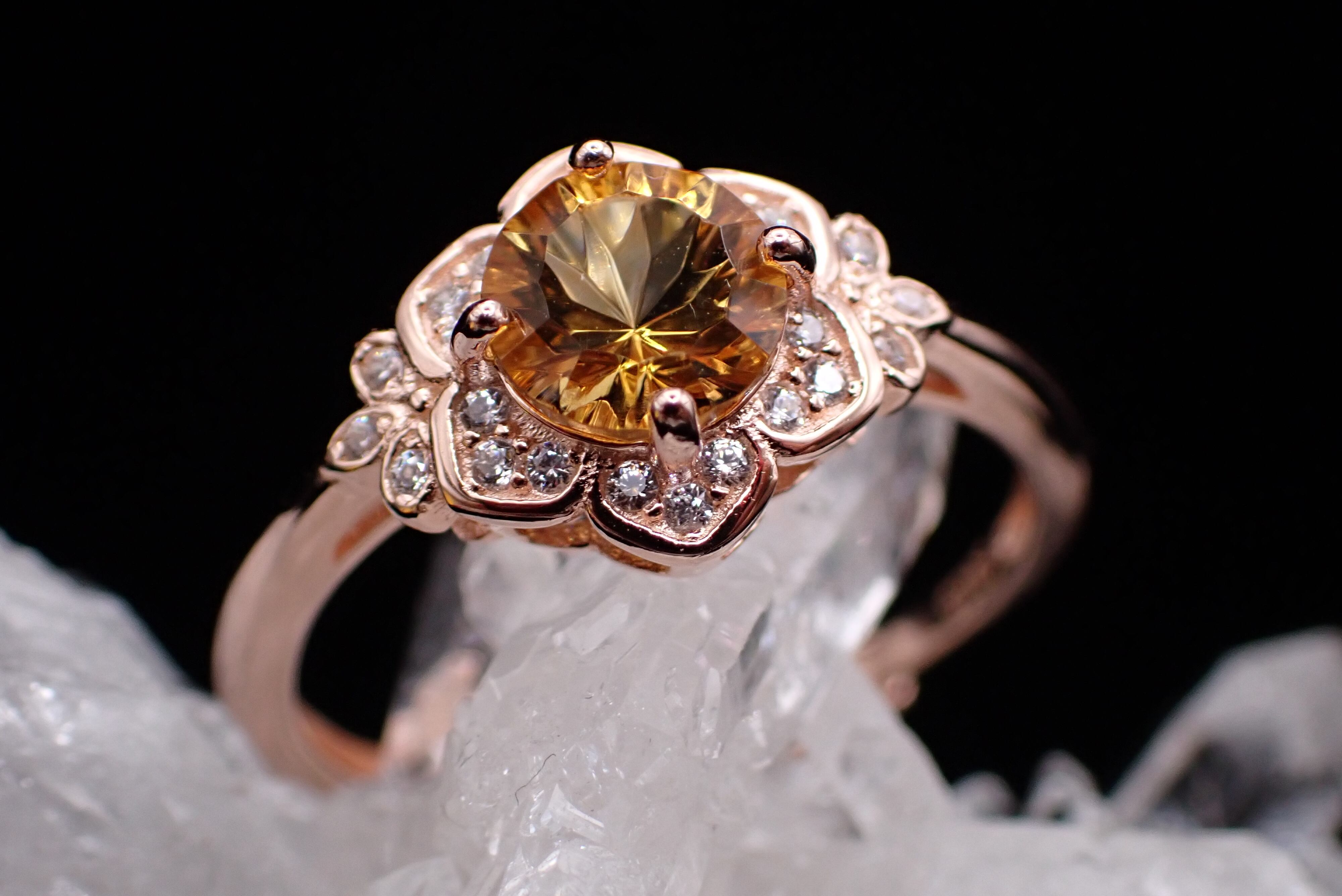 中央に光を集めるコンケーブカットにより、一段と輝きを増すピースが目を惹きます。