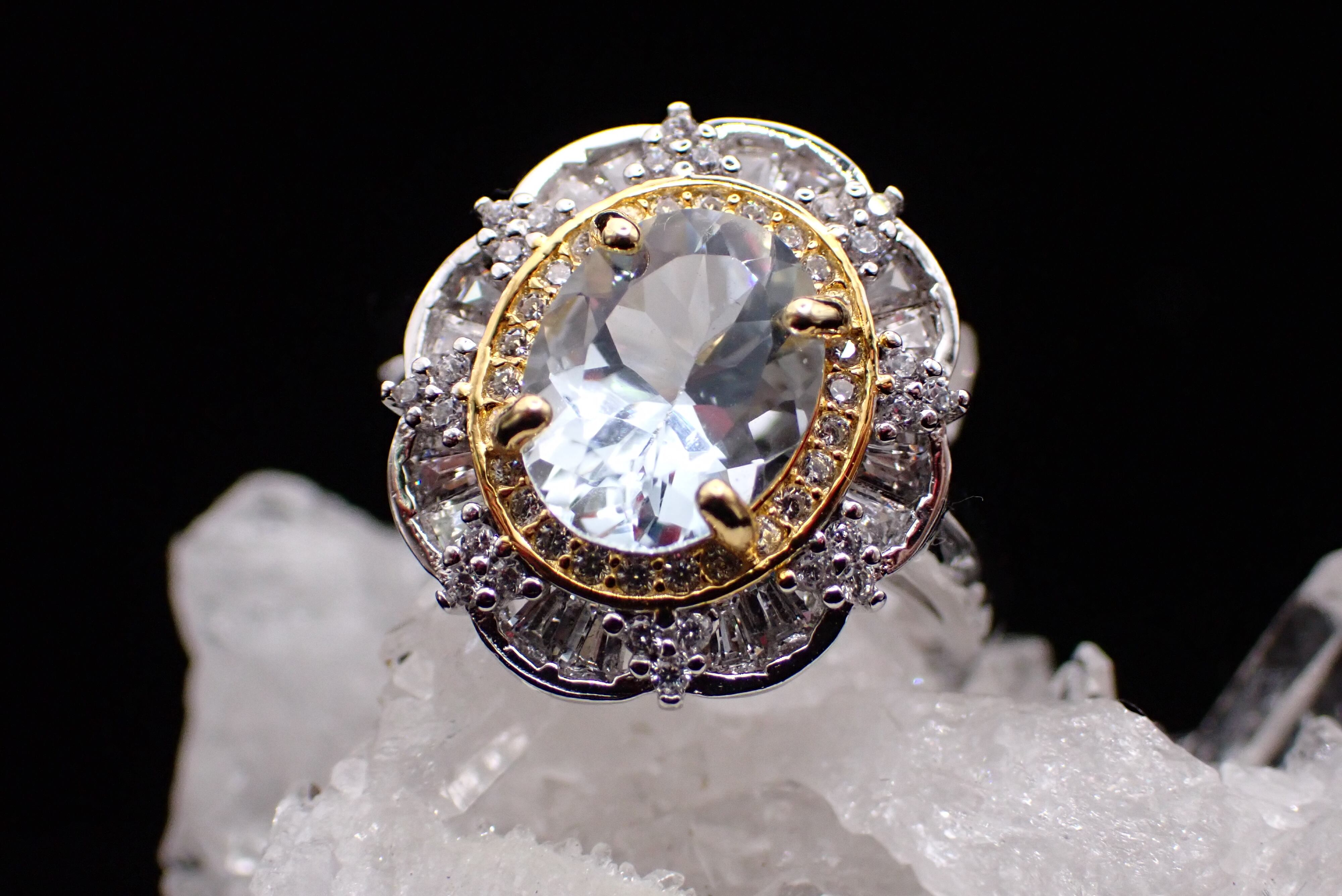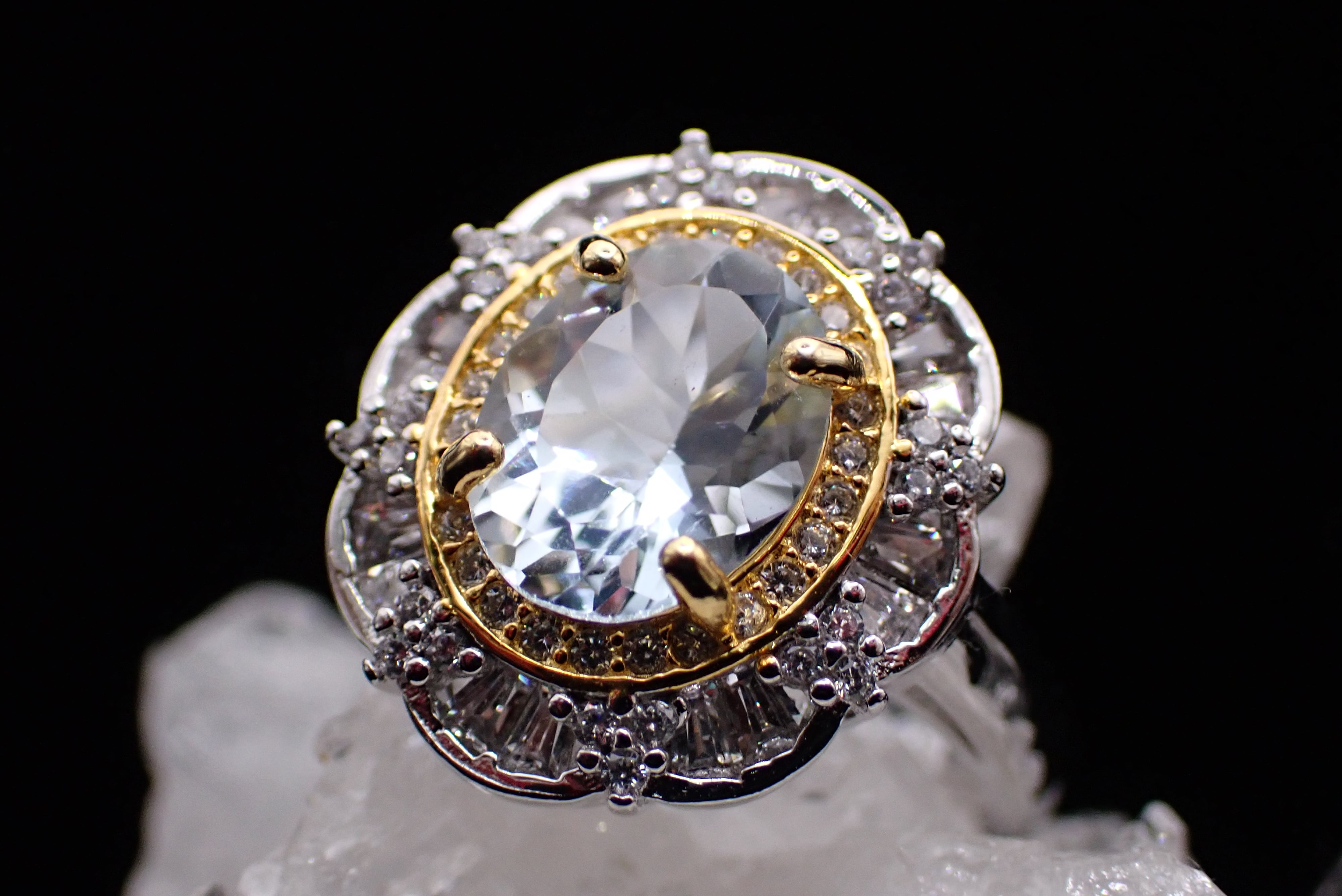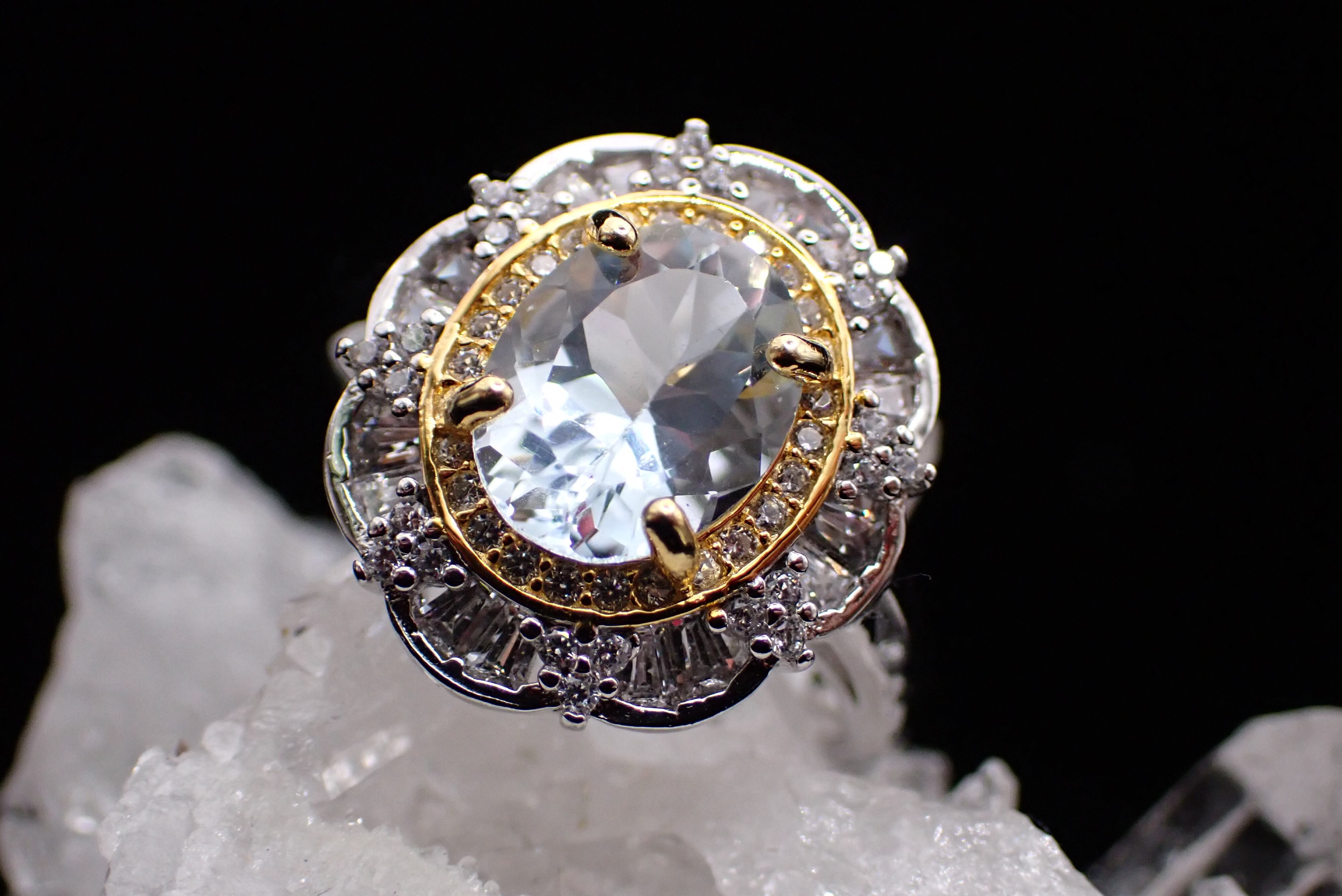 取り巻きのジルコニアたちがキラキラとアクアマリンの輝きを引き立てます。