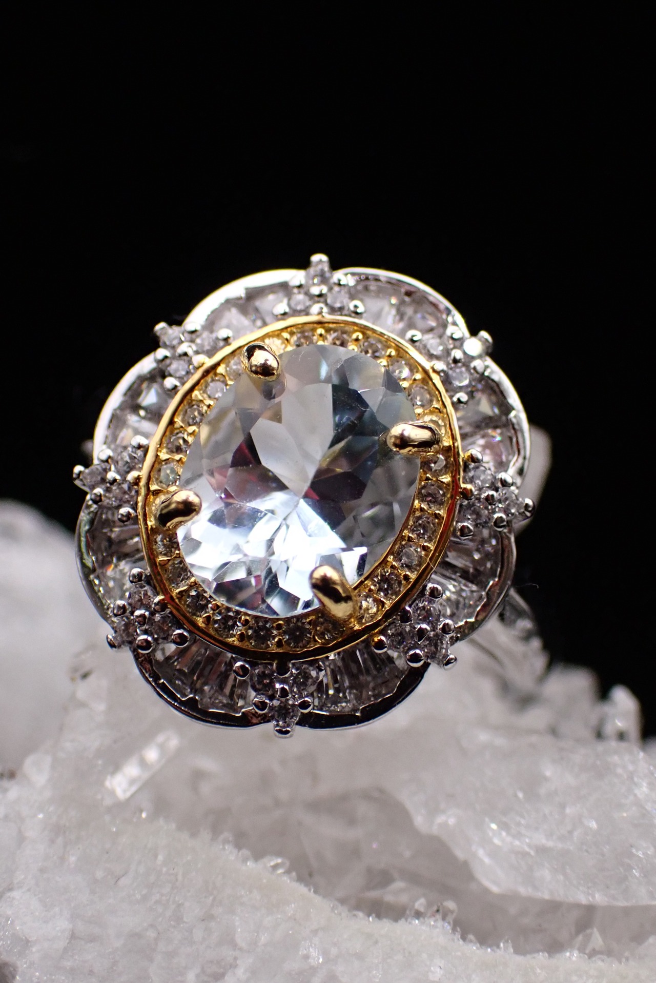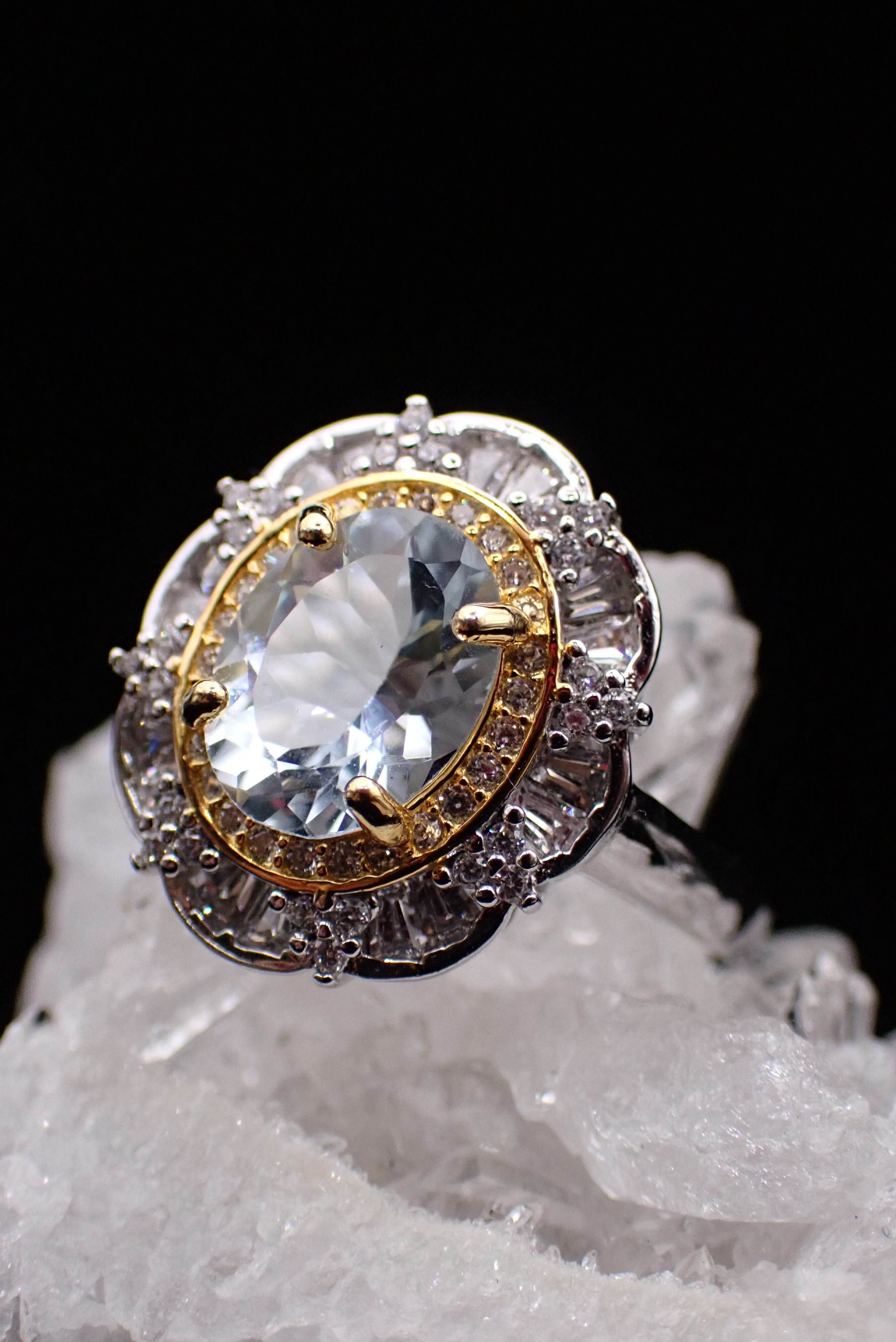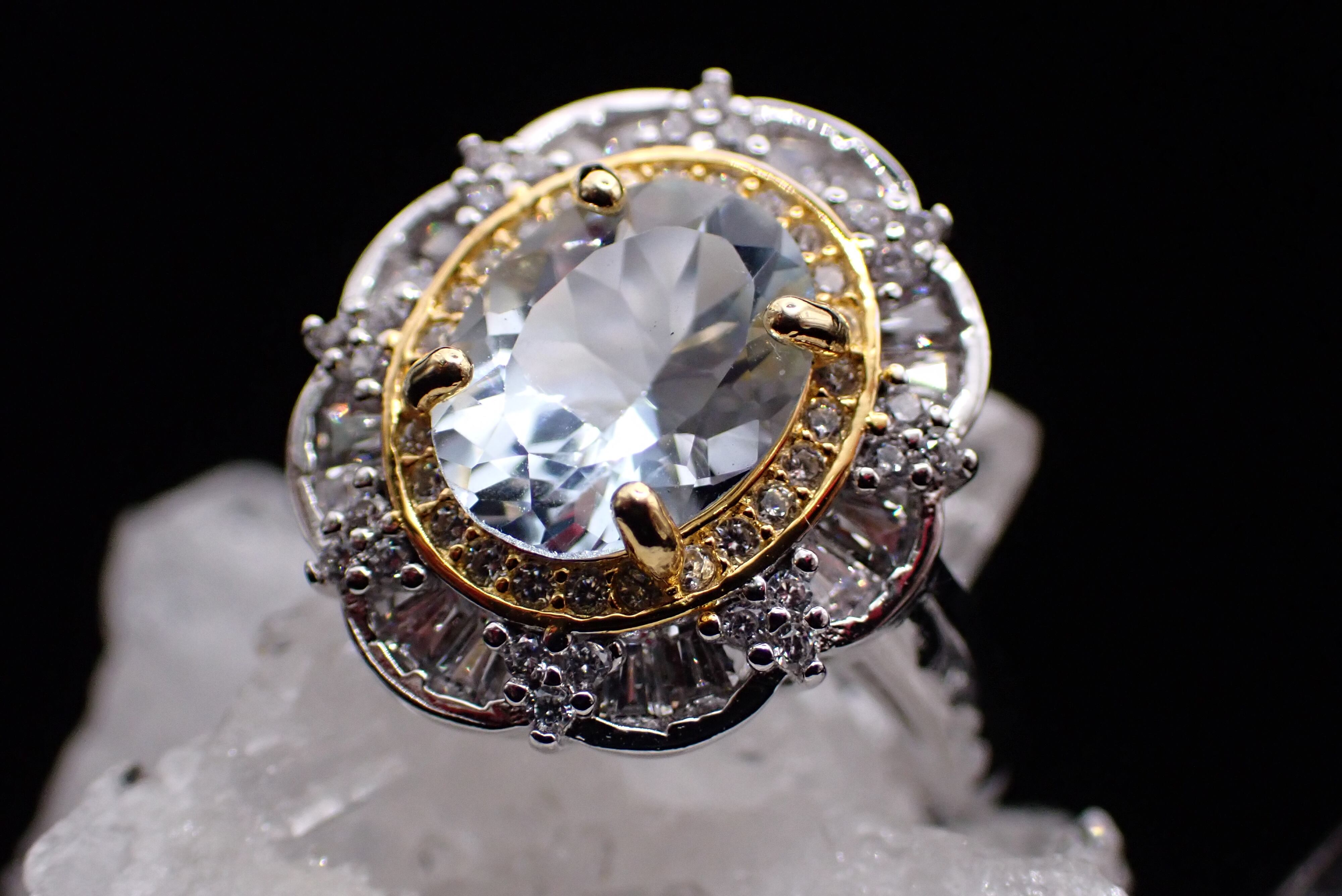 取り巻きのジルコニアたちがキラキラとアクアマリンの輝きを引き立てます。