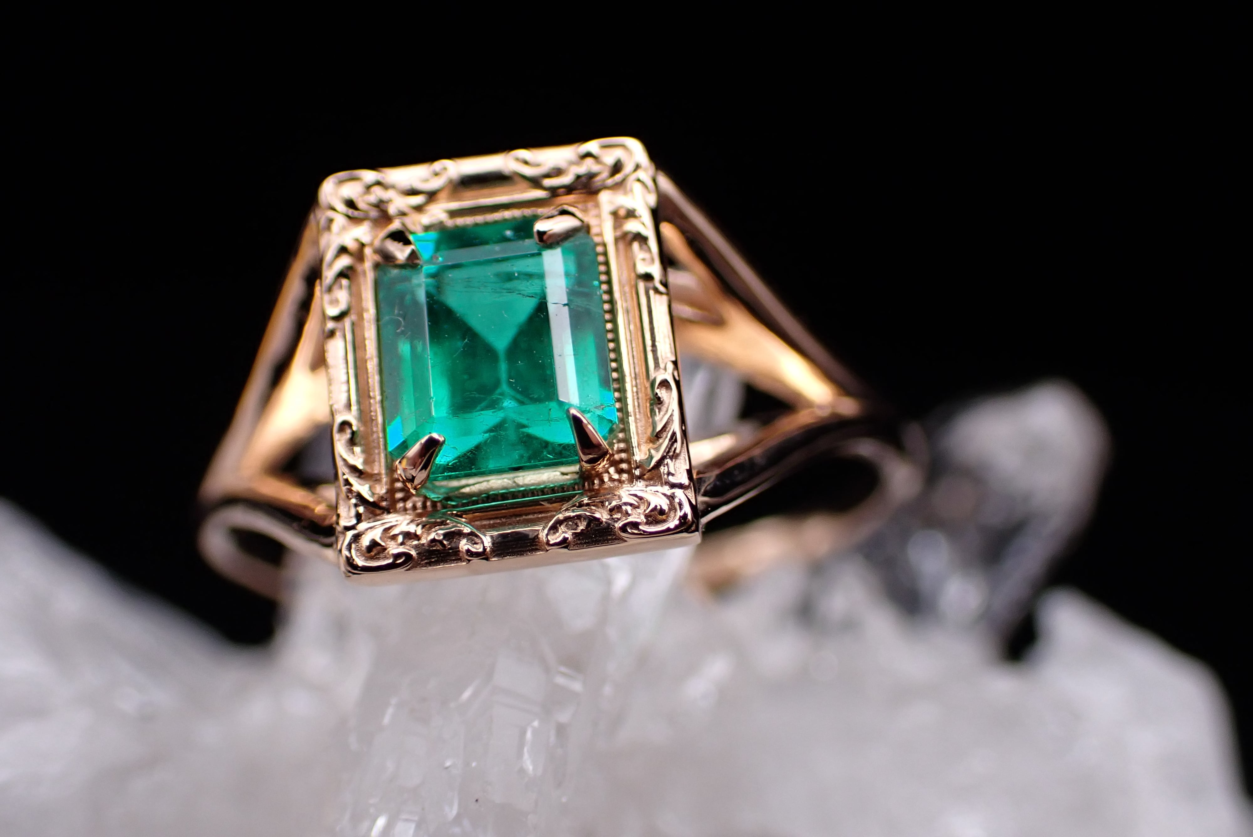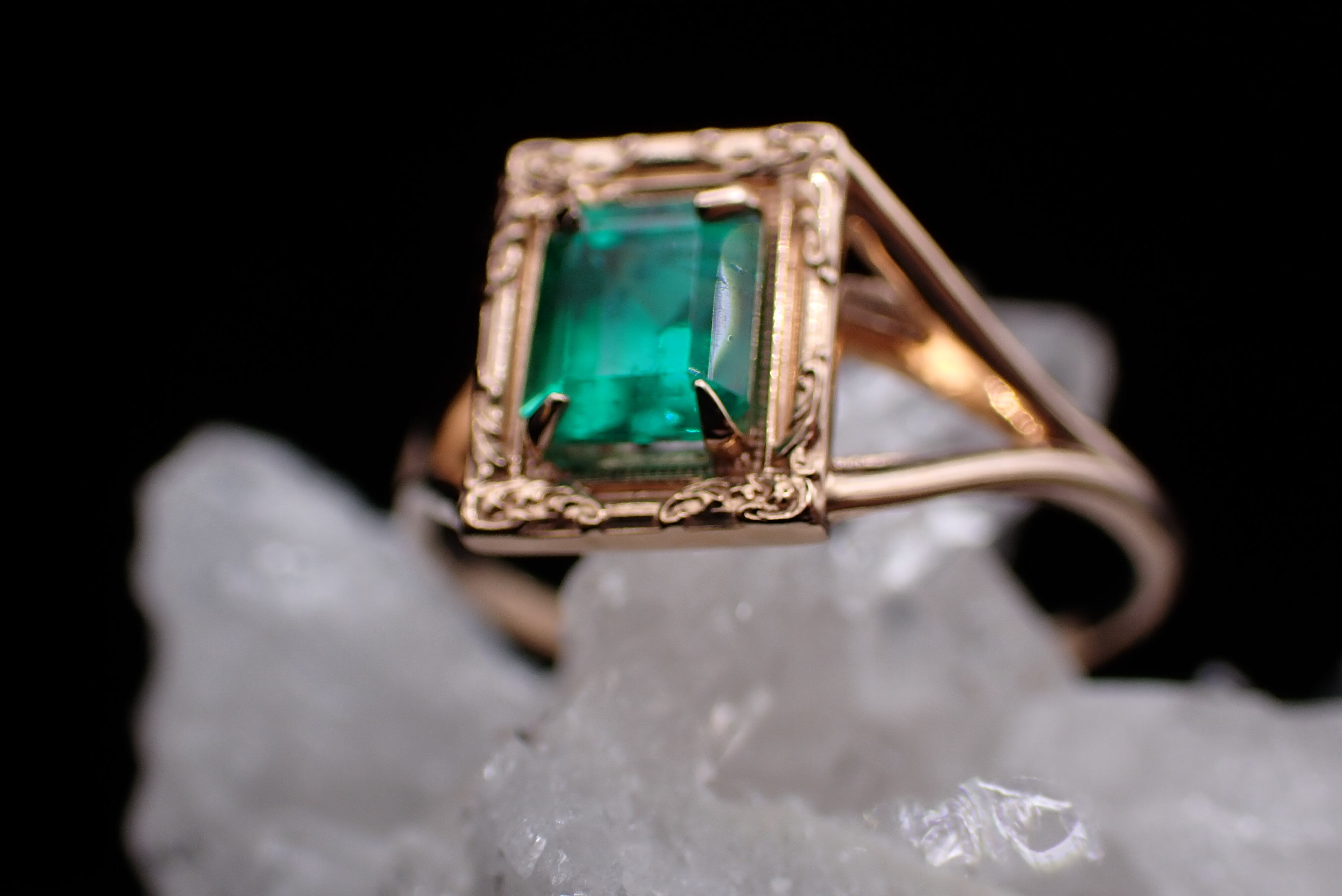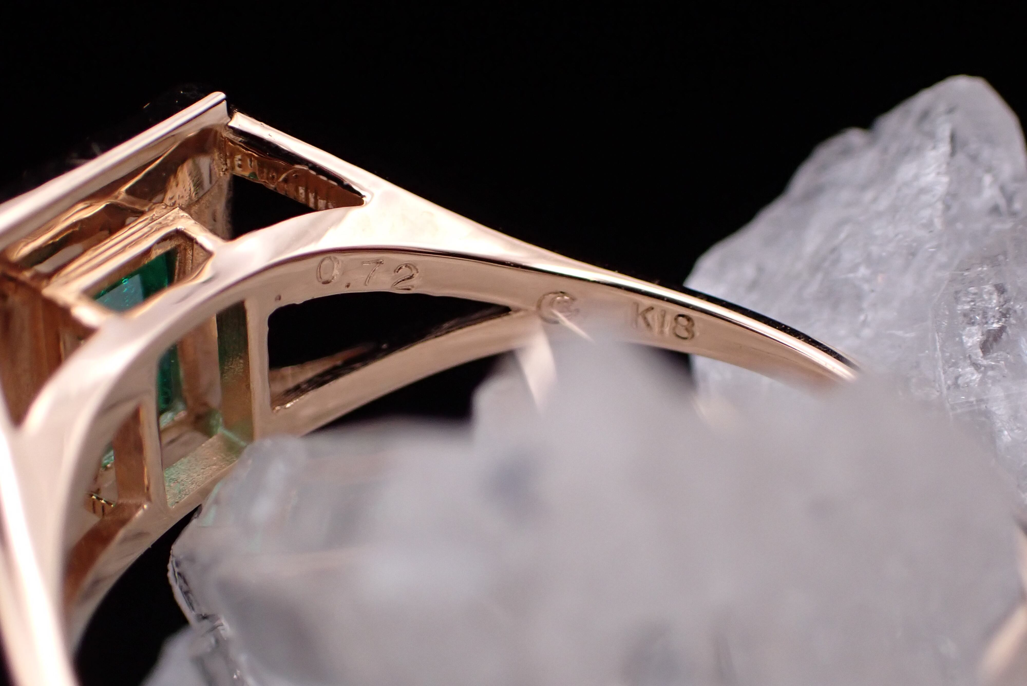 ピンクゴールドに緑の強いエメラルドを合わせることで、可愛らしくも強いリングとなっております。