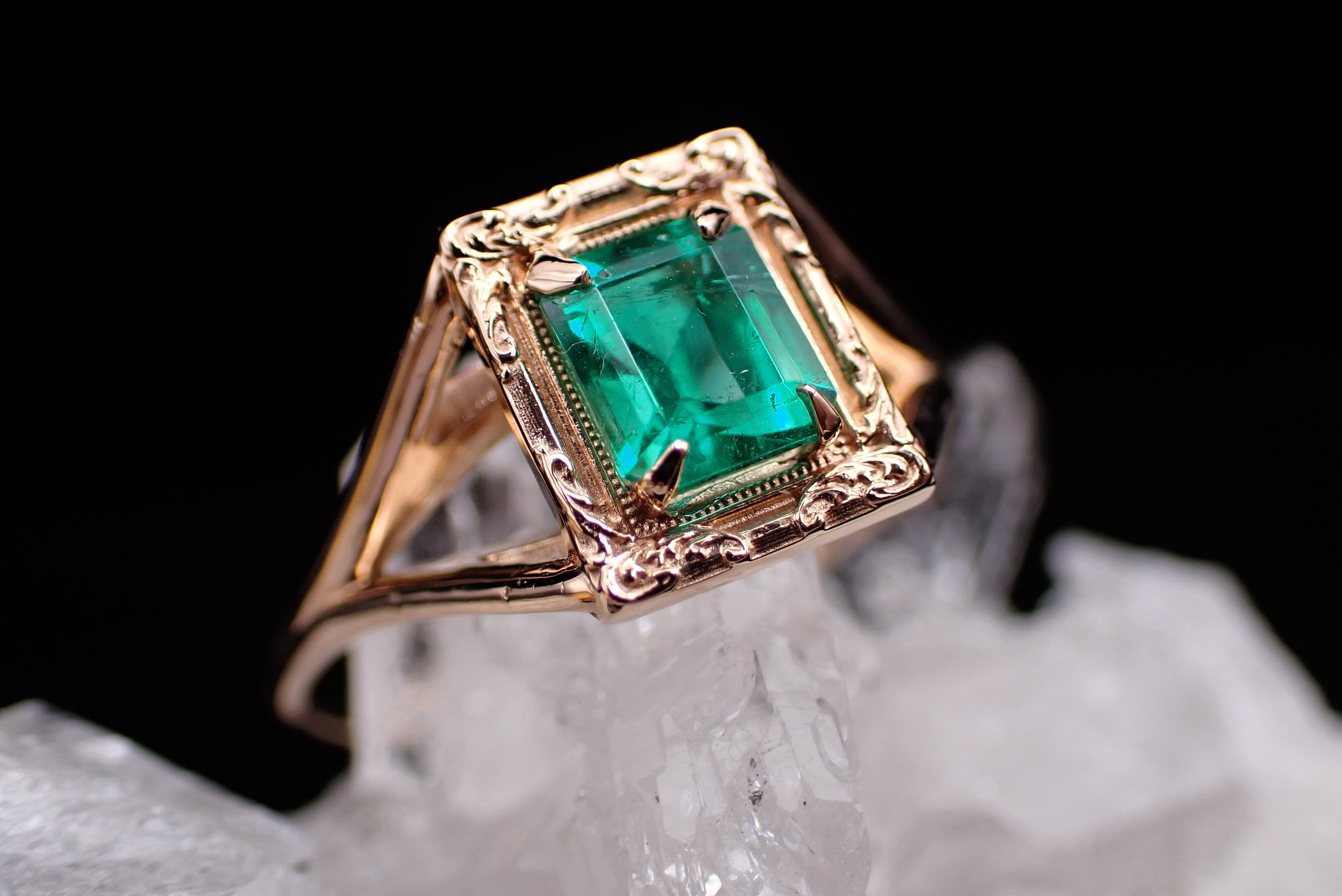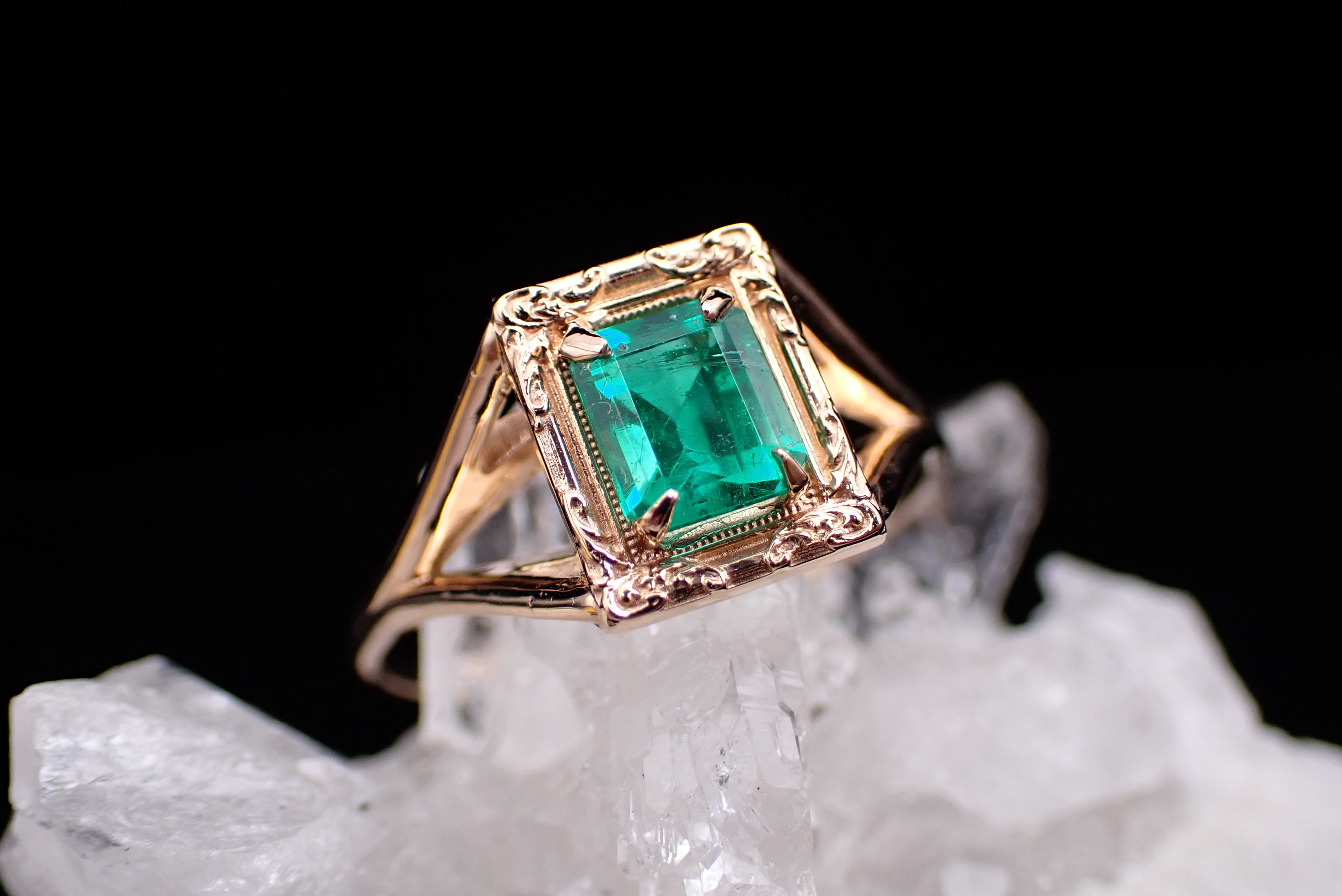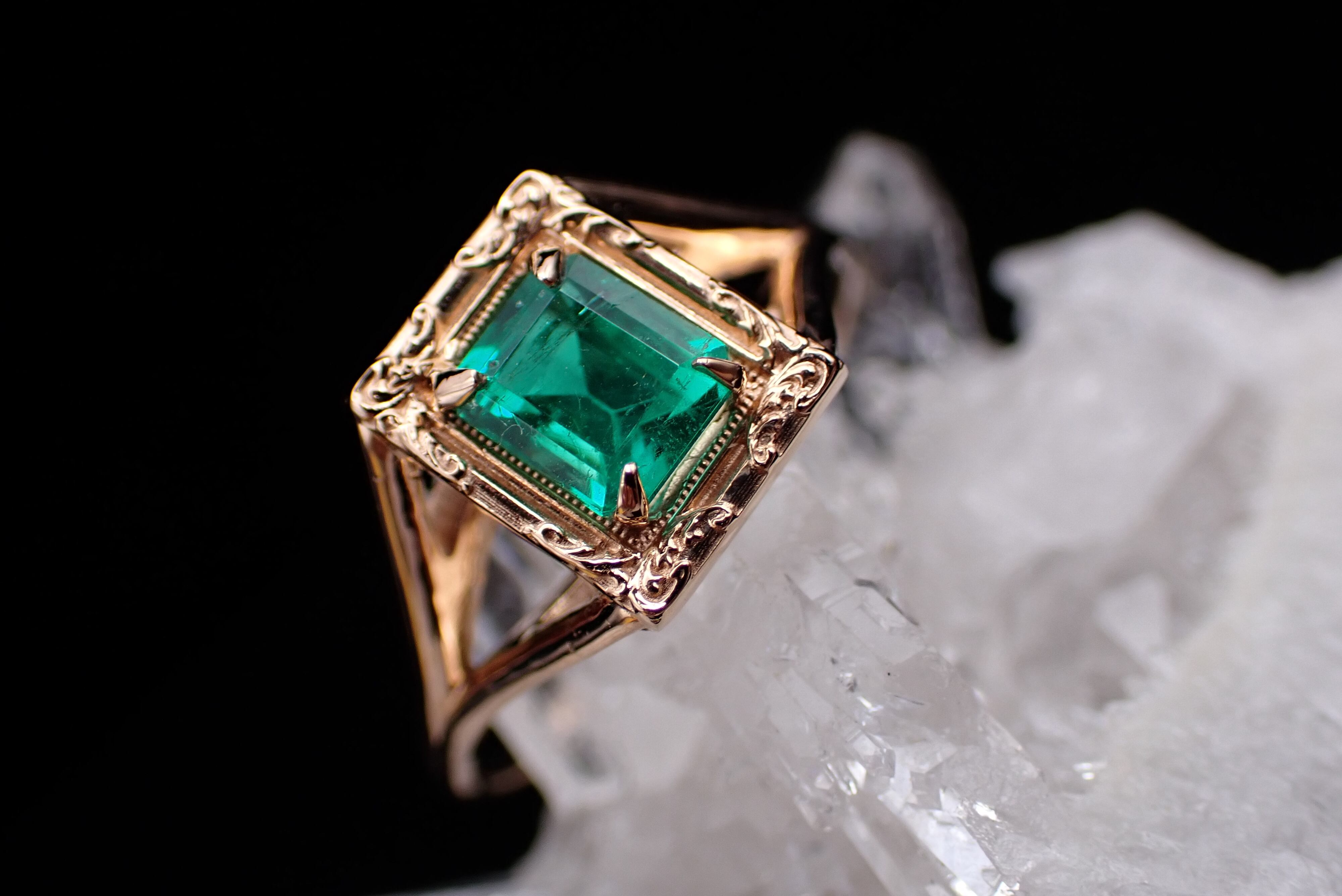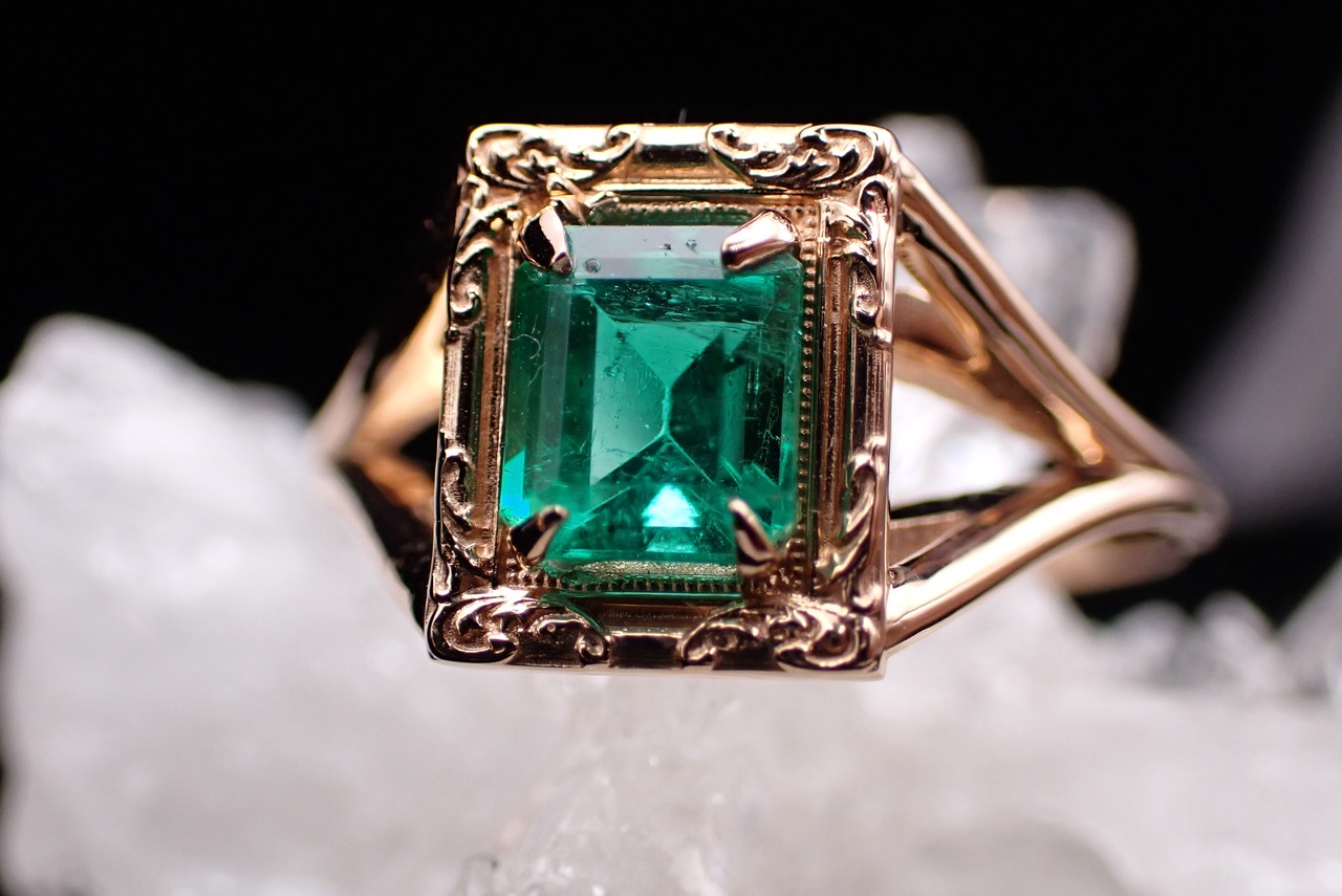 ピンクゴールドに緑の強いエメラルドを合わせることで、可愛らしくも強いリングとなっております。