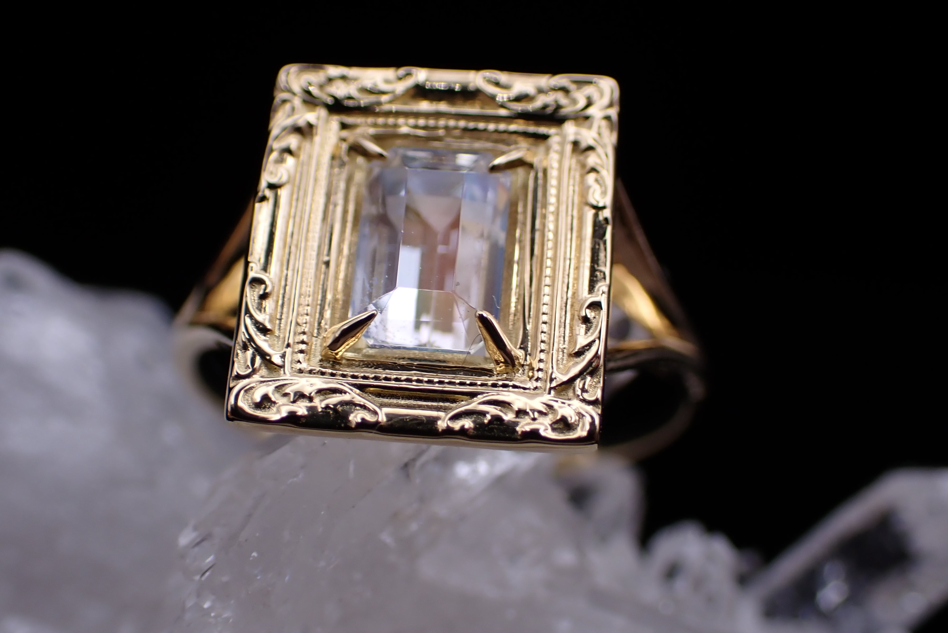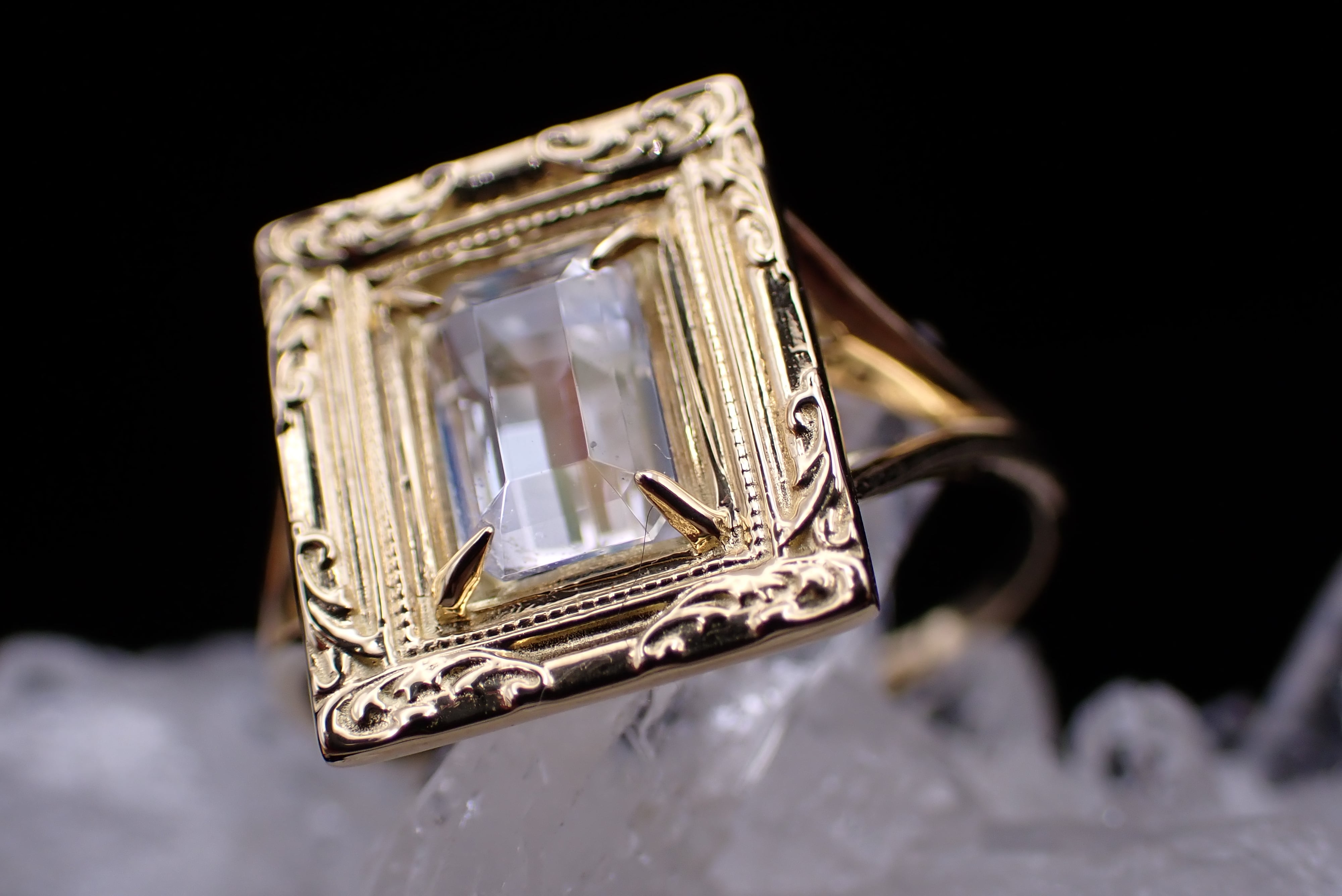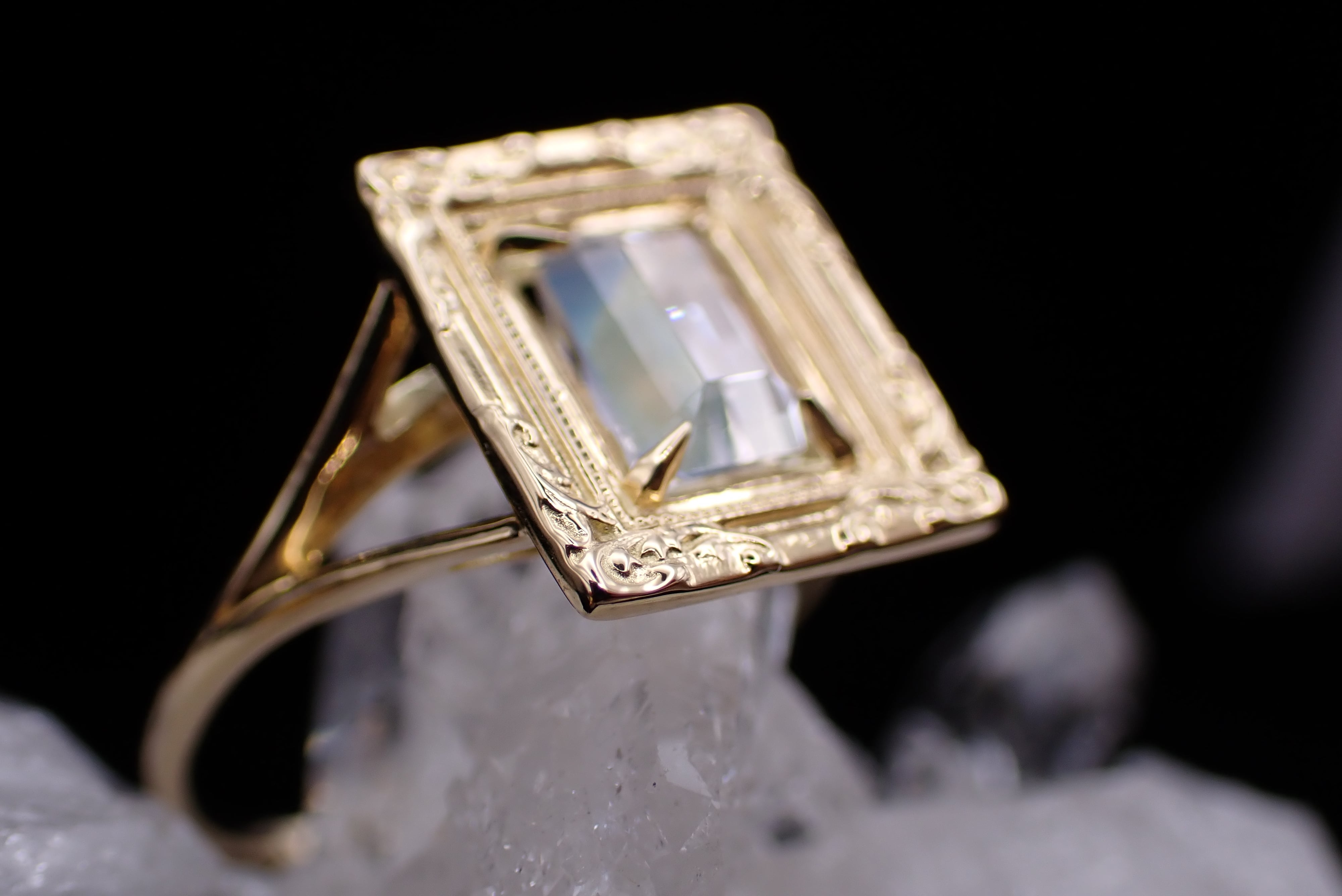 宝石そのものが肌に触れないように、光が入りやすいようにサイドを広く開けて輝きが最大限になるようにお作りしております。