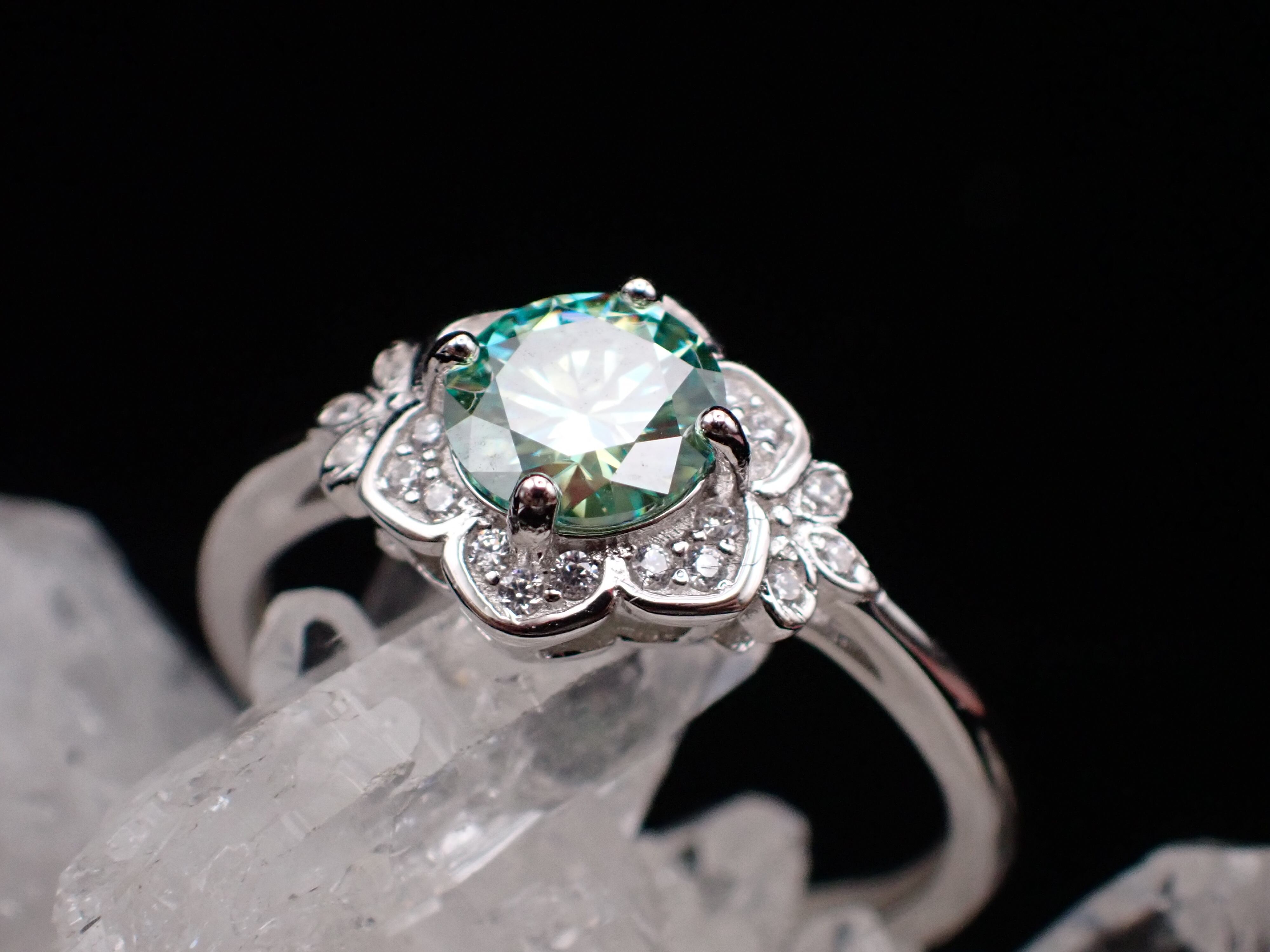 桔梗ring グリーンモアッサナイト フリーサイズSV