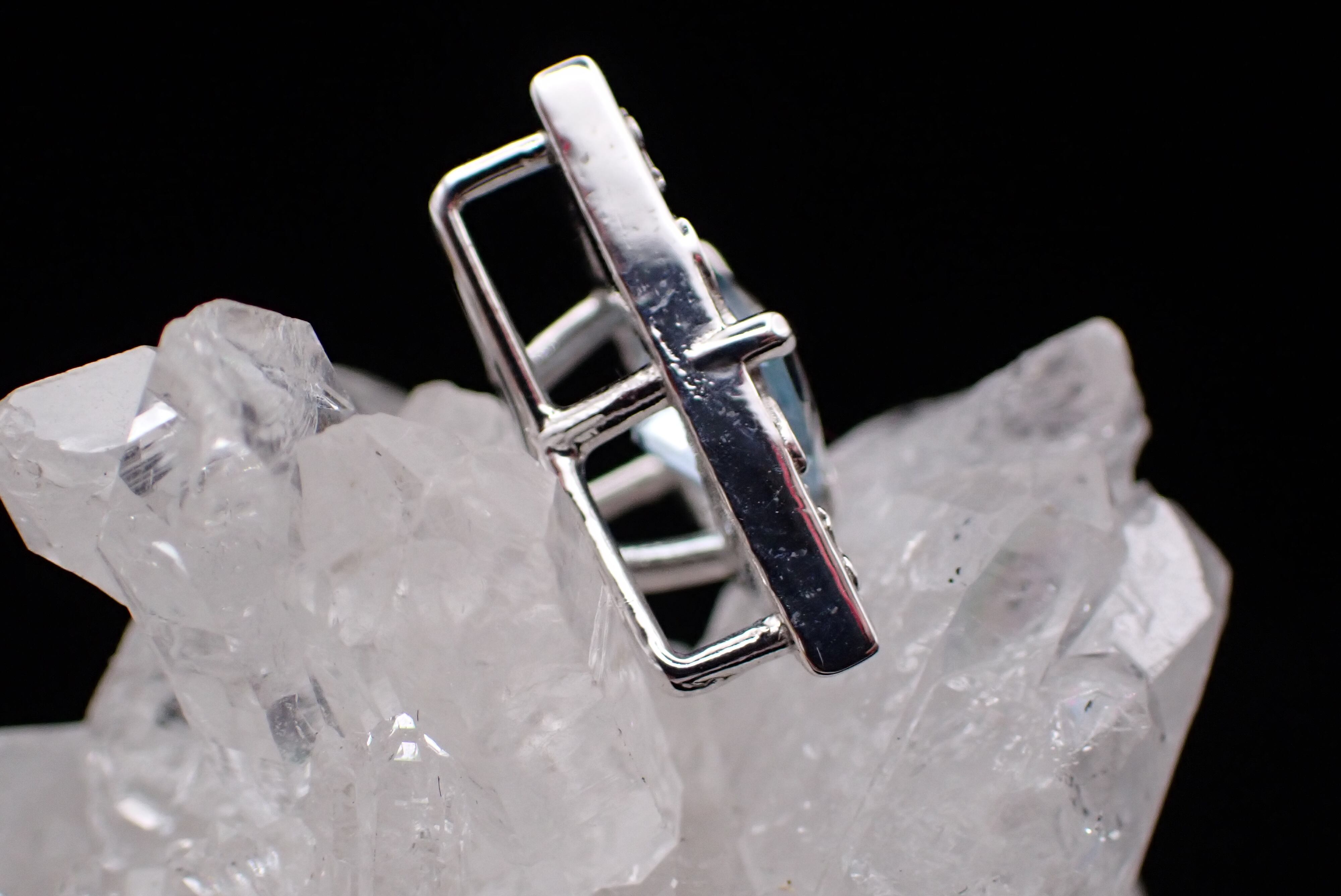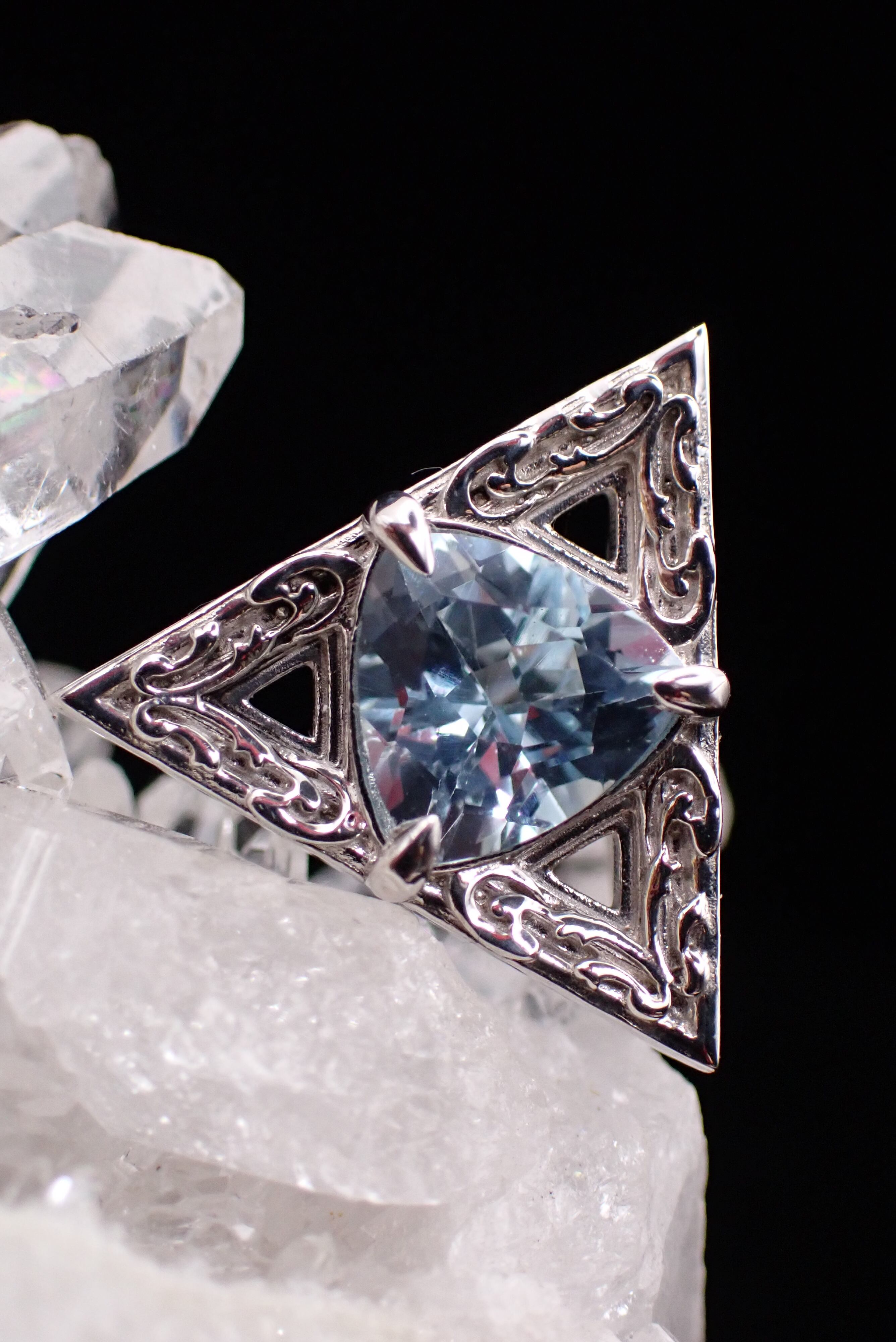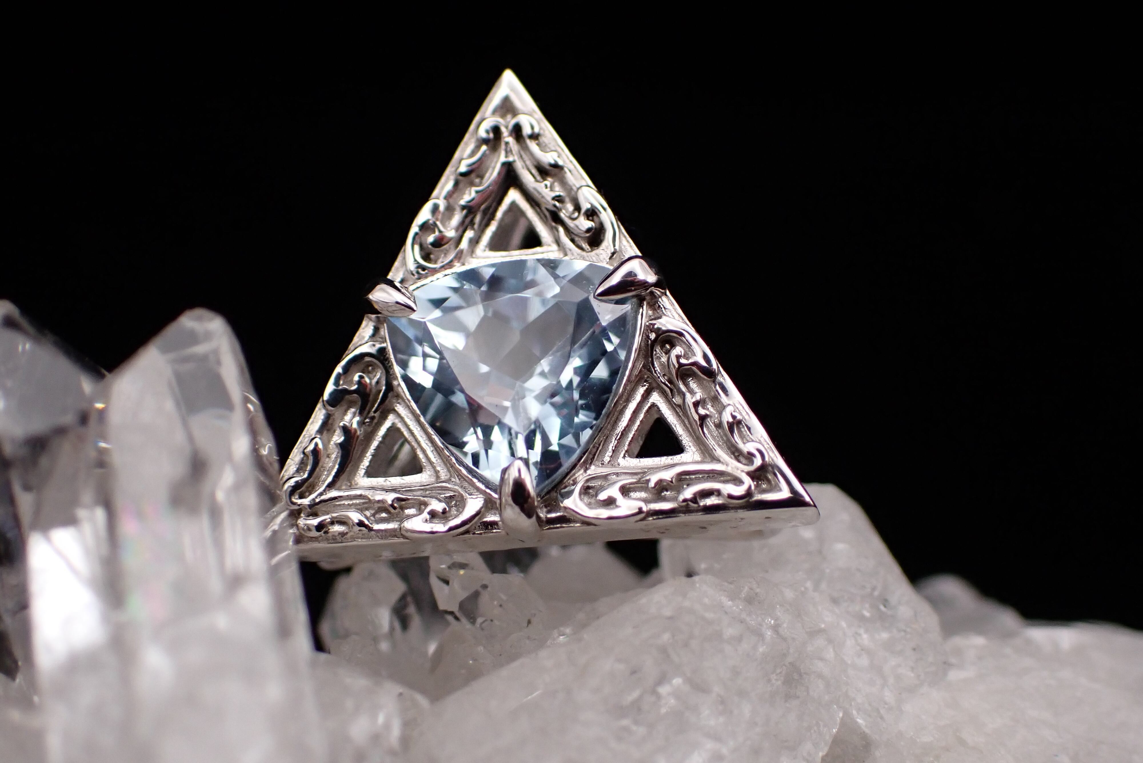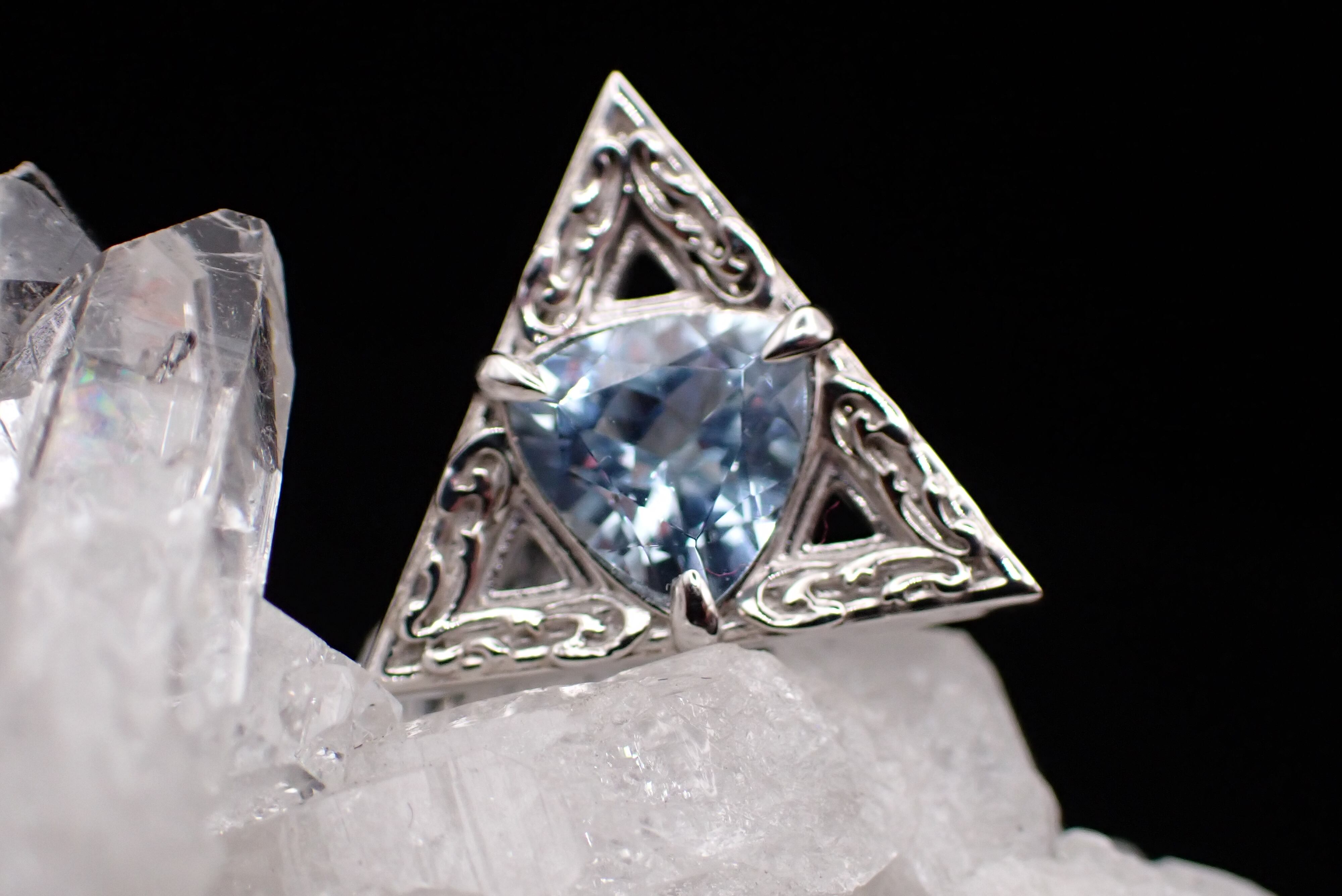 まるで絵画のように美しい三角の額縁に、澄んだアクアマリンを納めました。