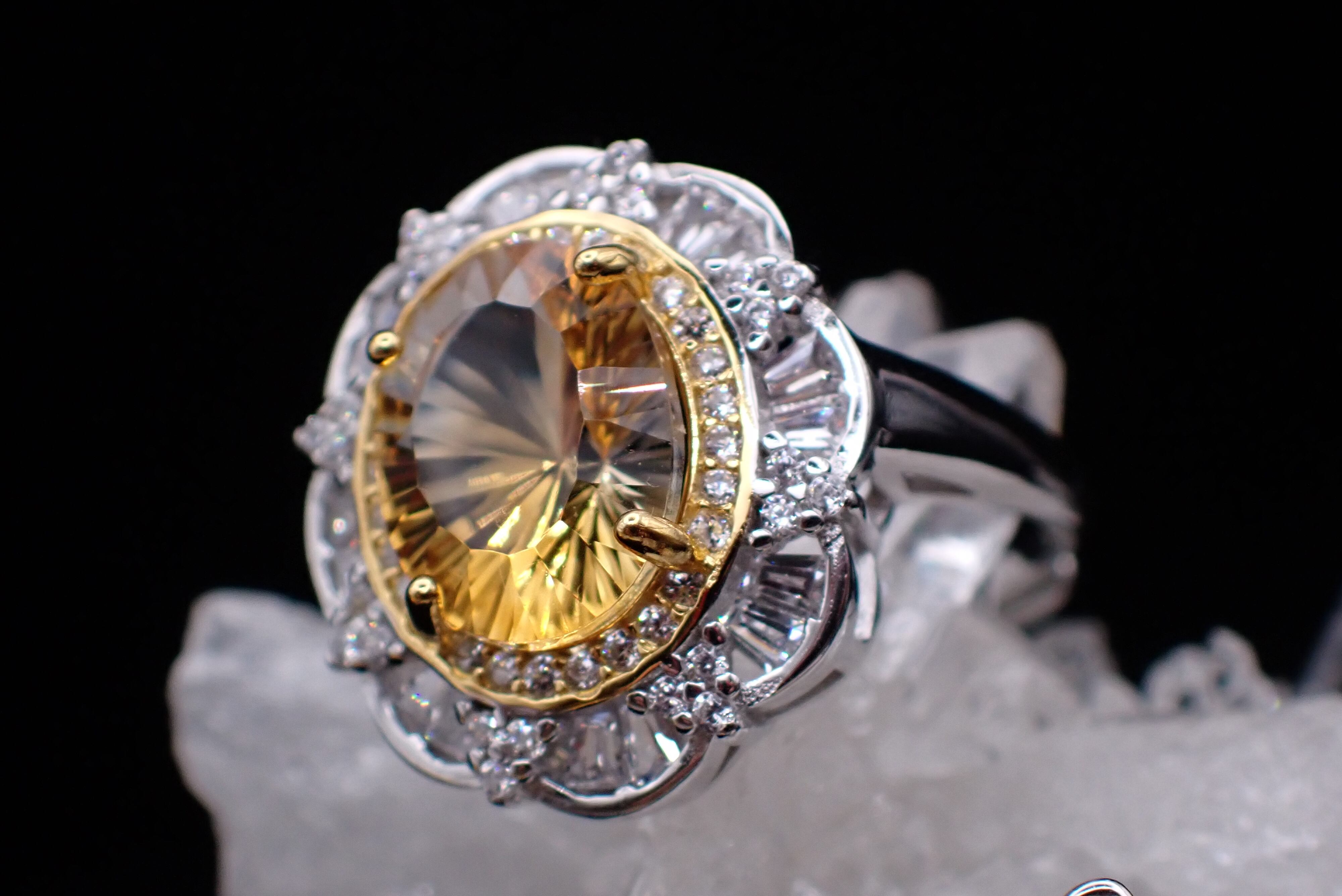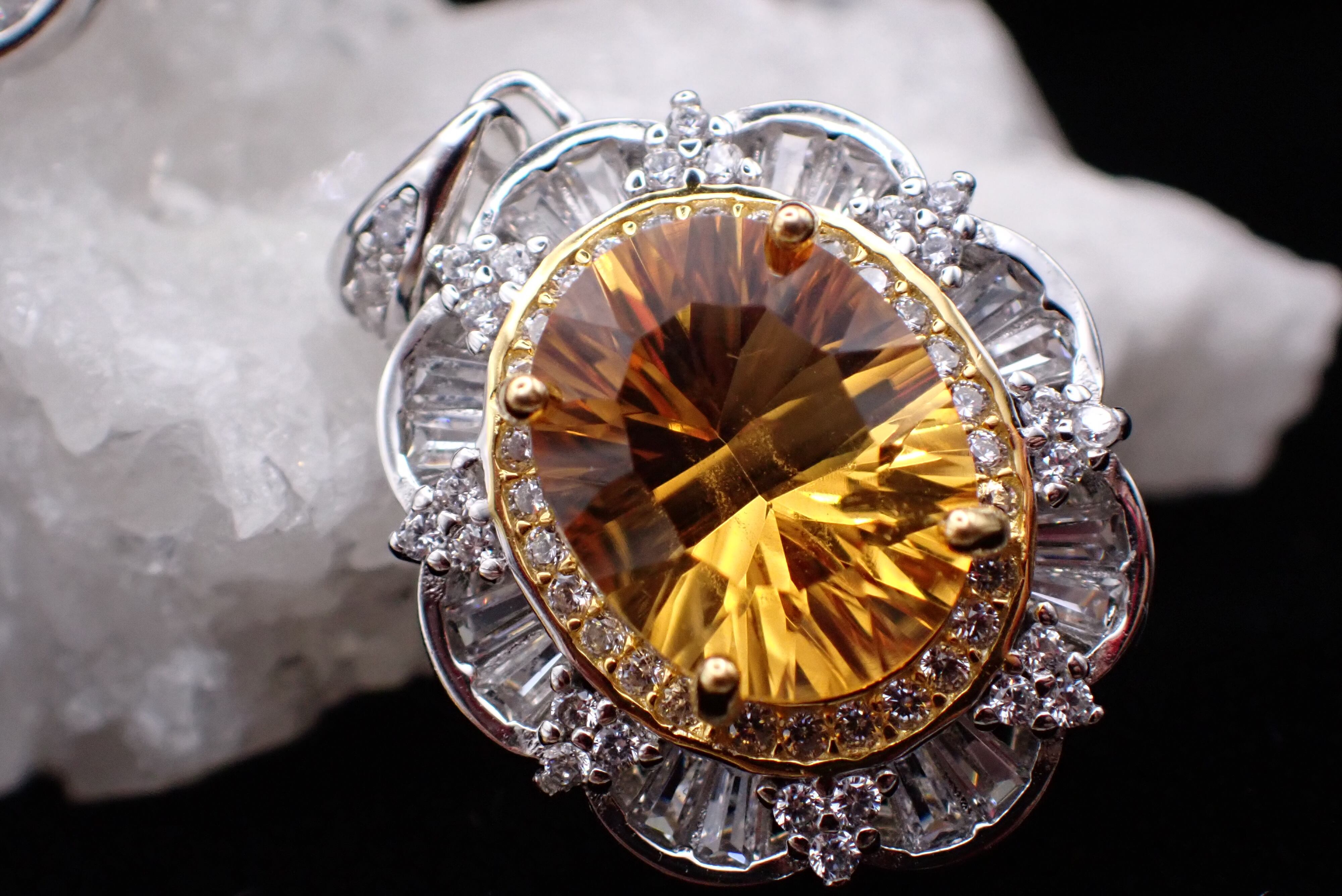 取り巻きのジルコニアたちがキラキラと輝き、シトリンの輝きを引き立てます。