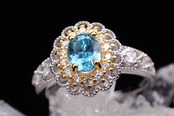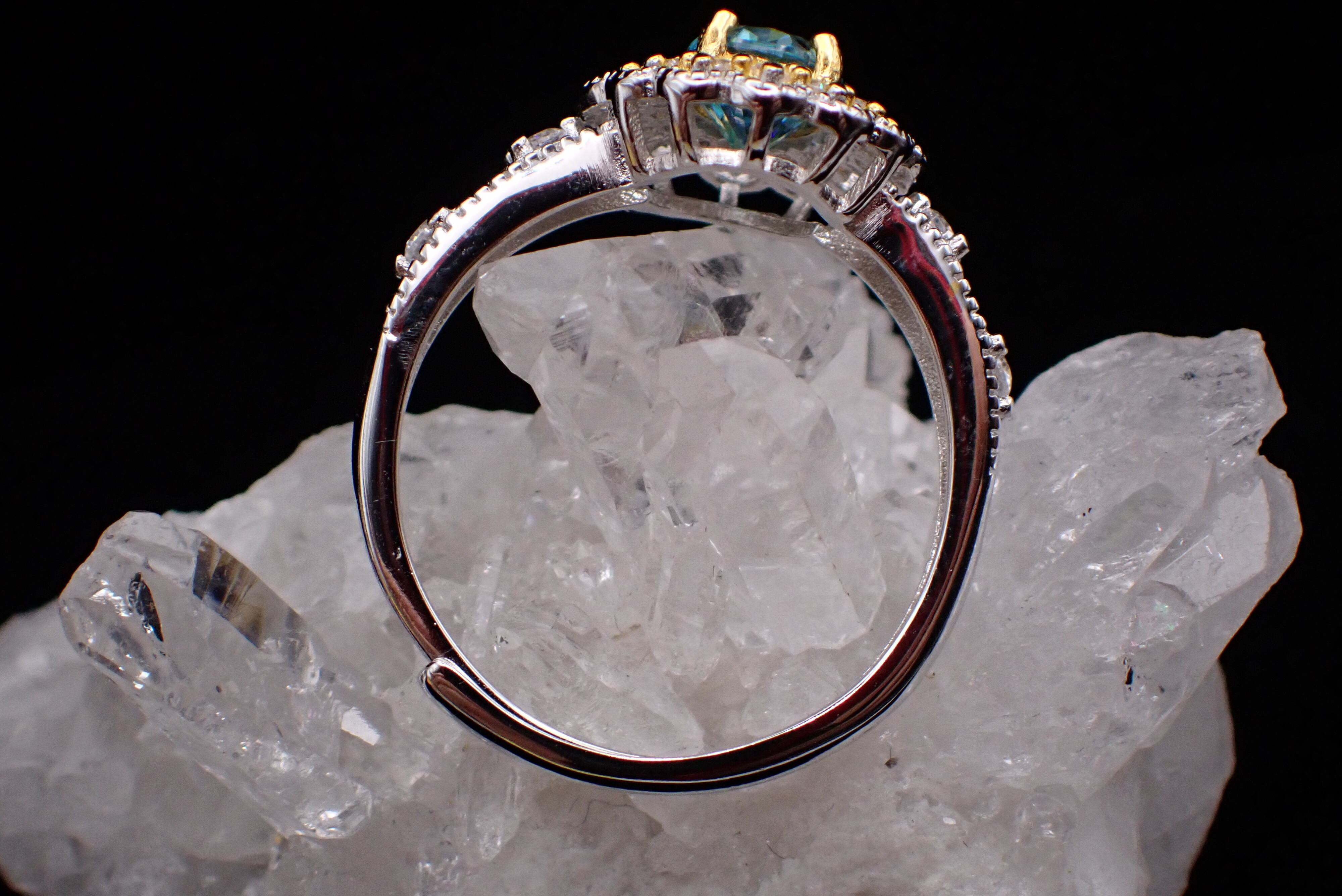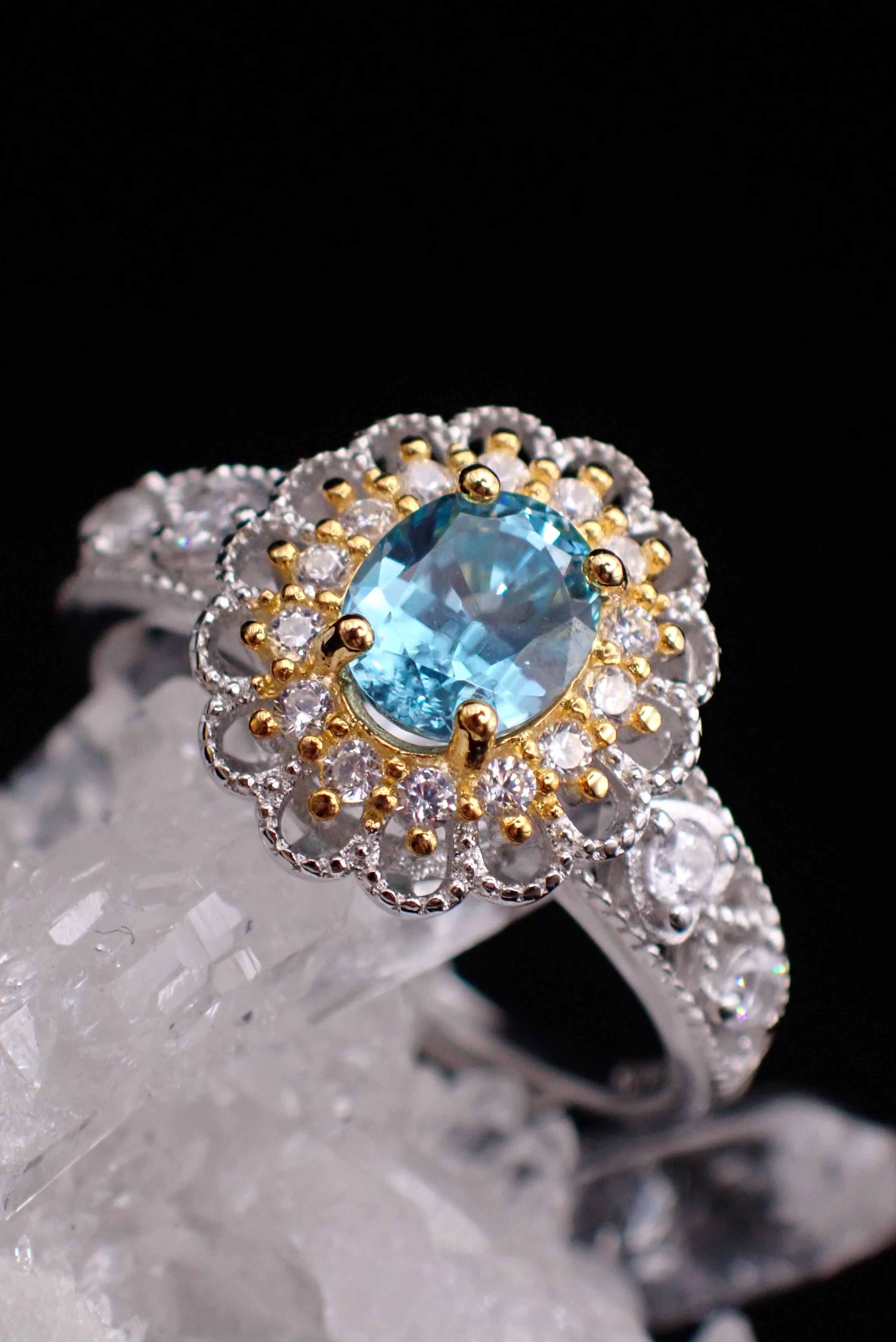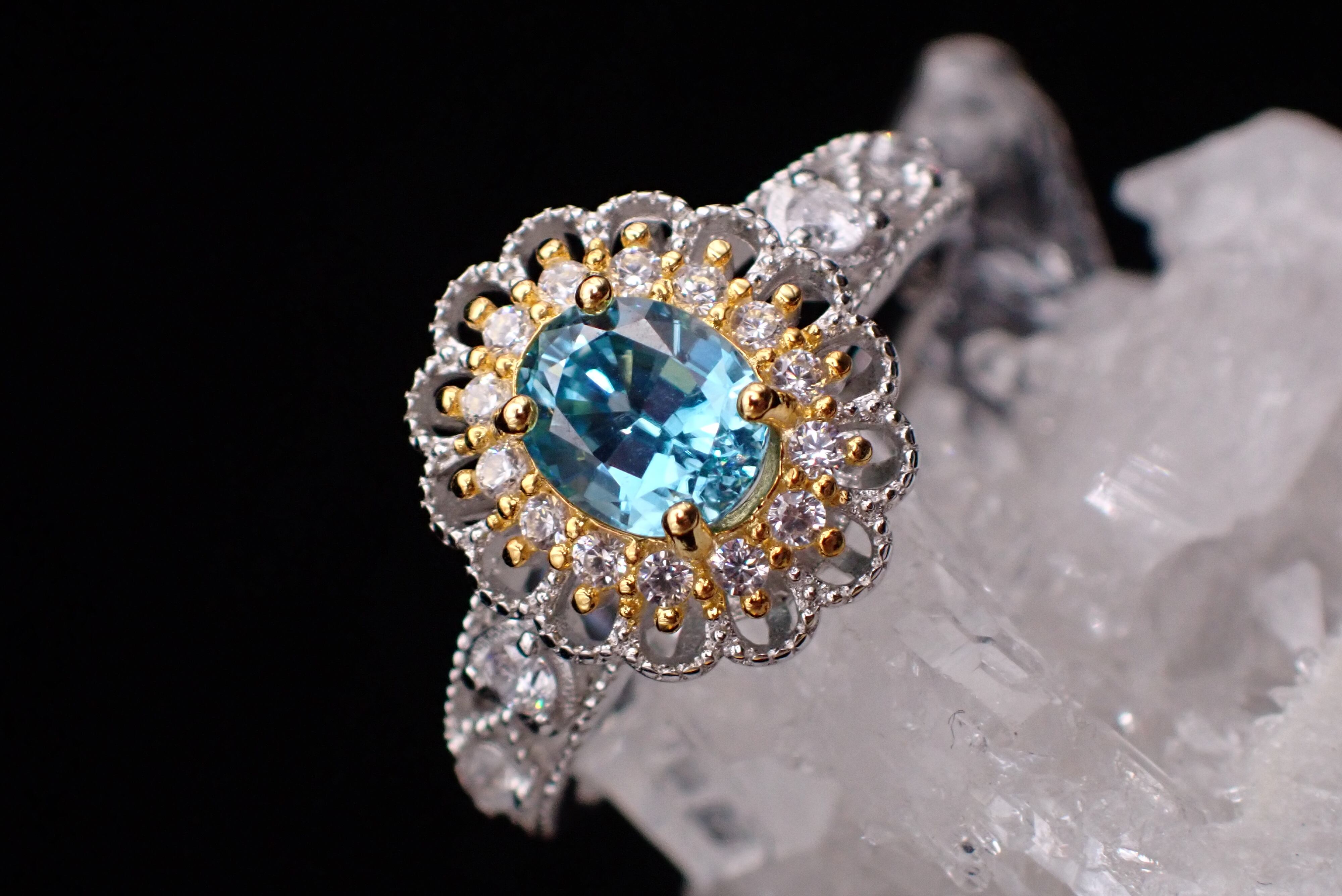 可愛らしく花開くジルコニアたちがキラキラと輝き、美しいブルージルコンの輝きを引き立てます。