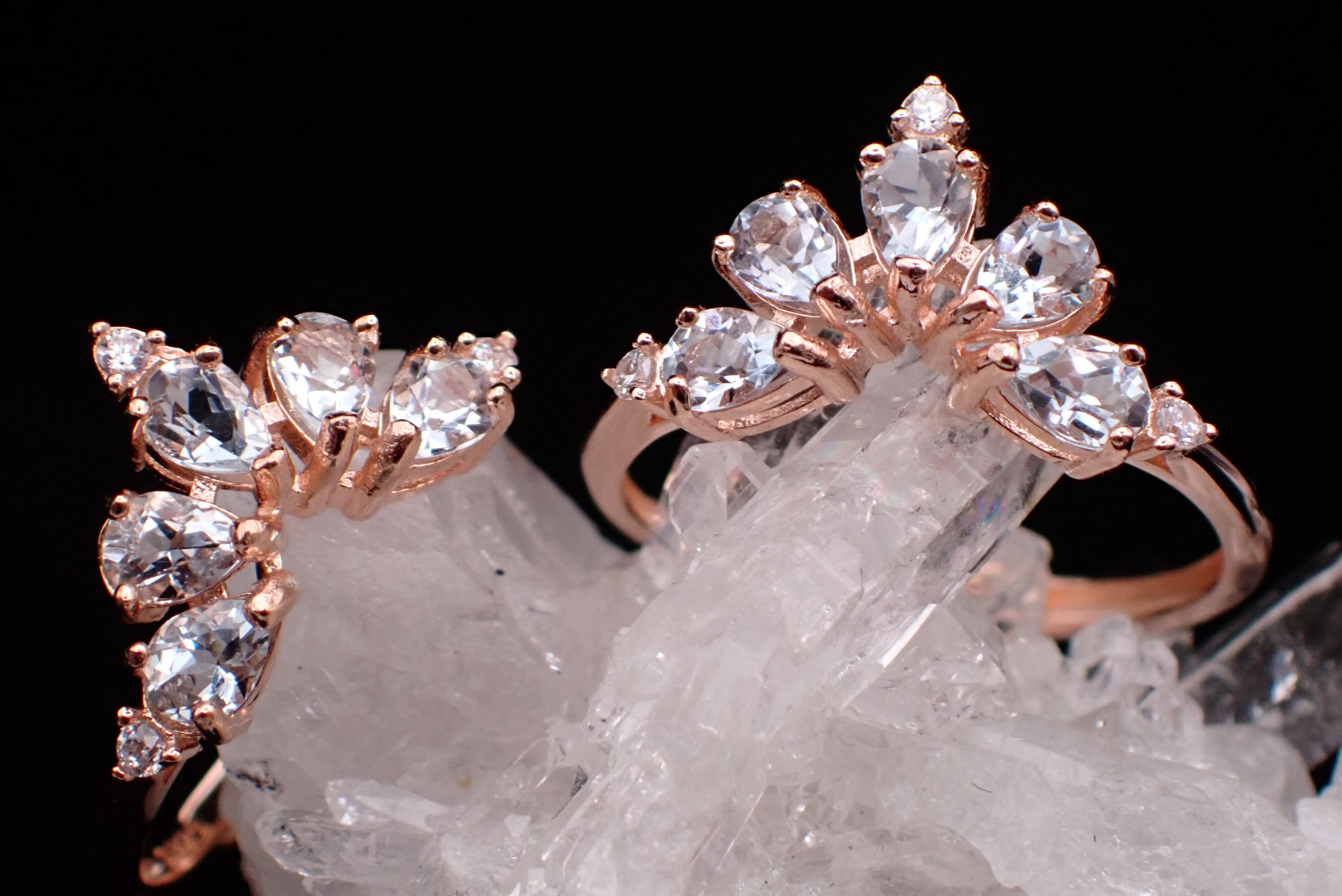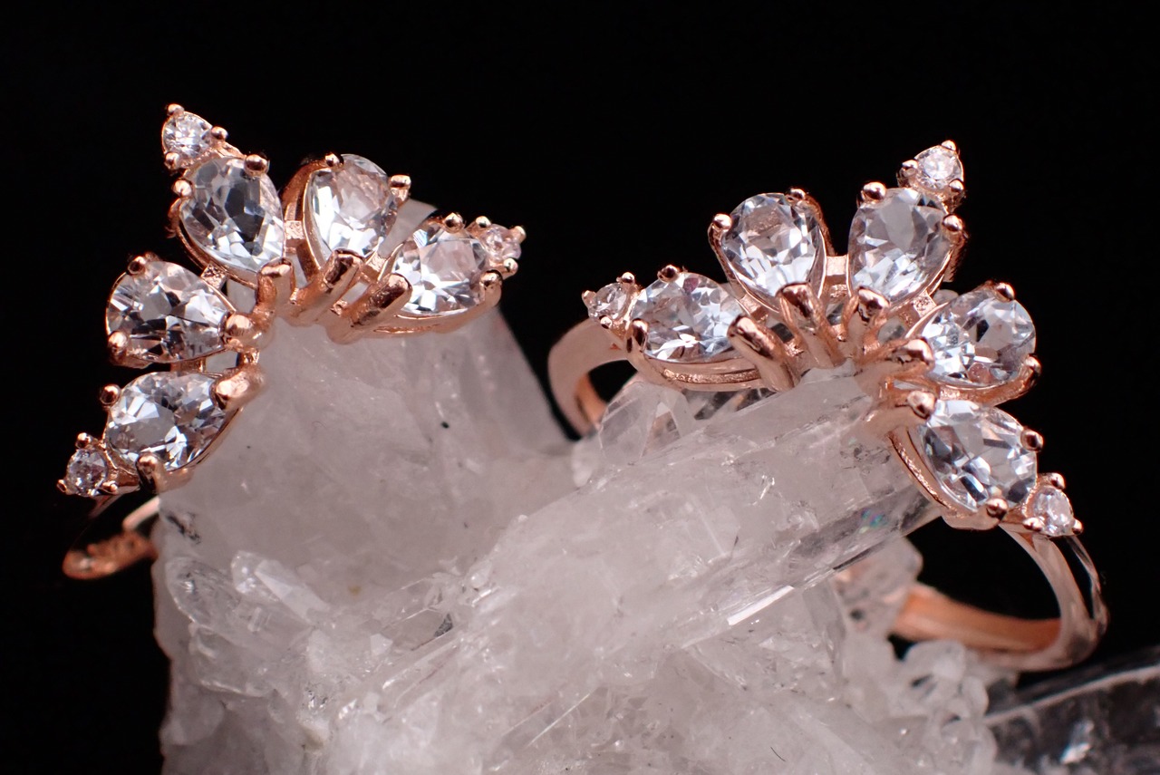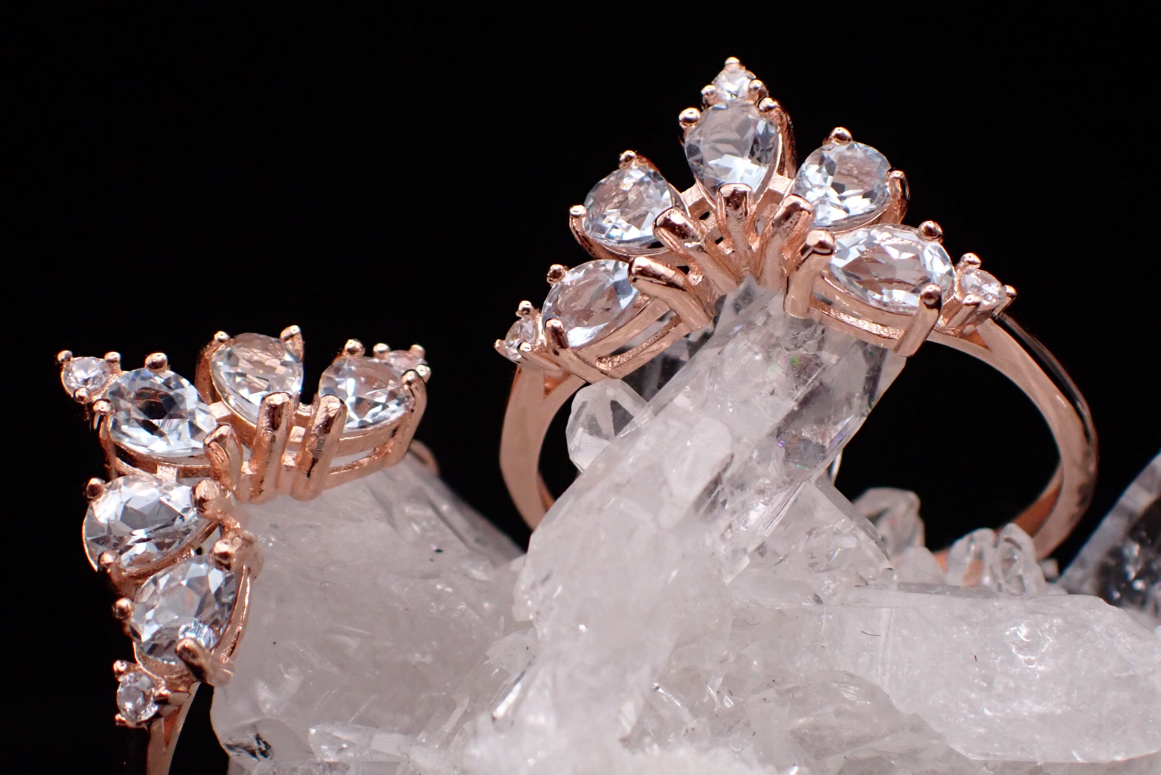 ドロップの宝石たちが5つ、孔雀が羽根をひろげたように並んだリングです。