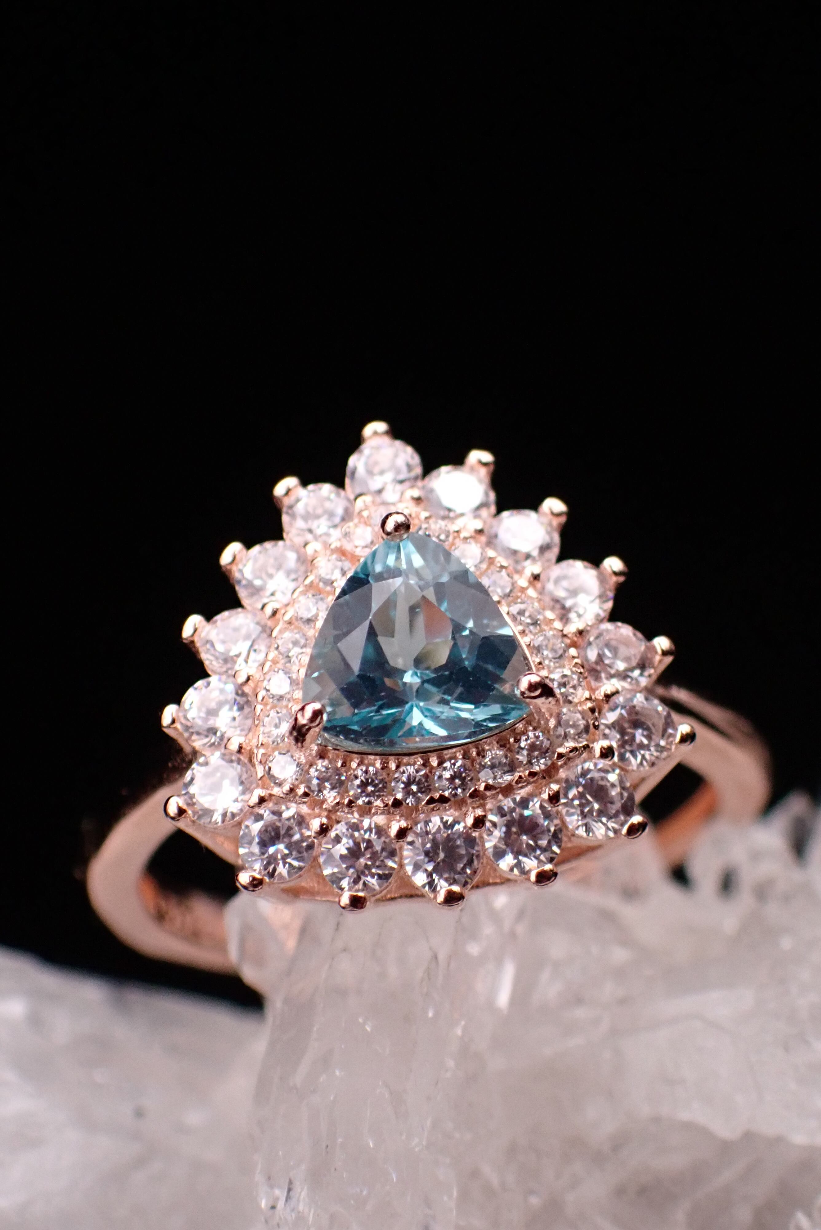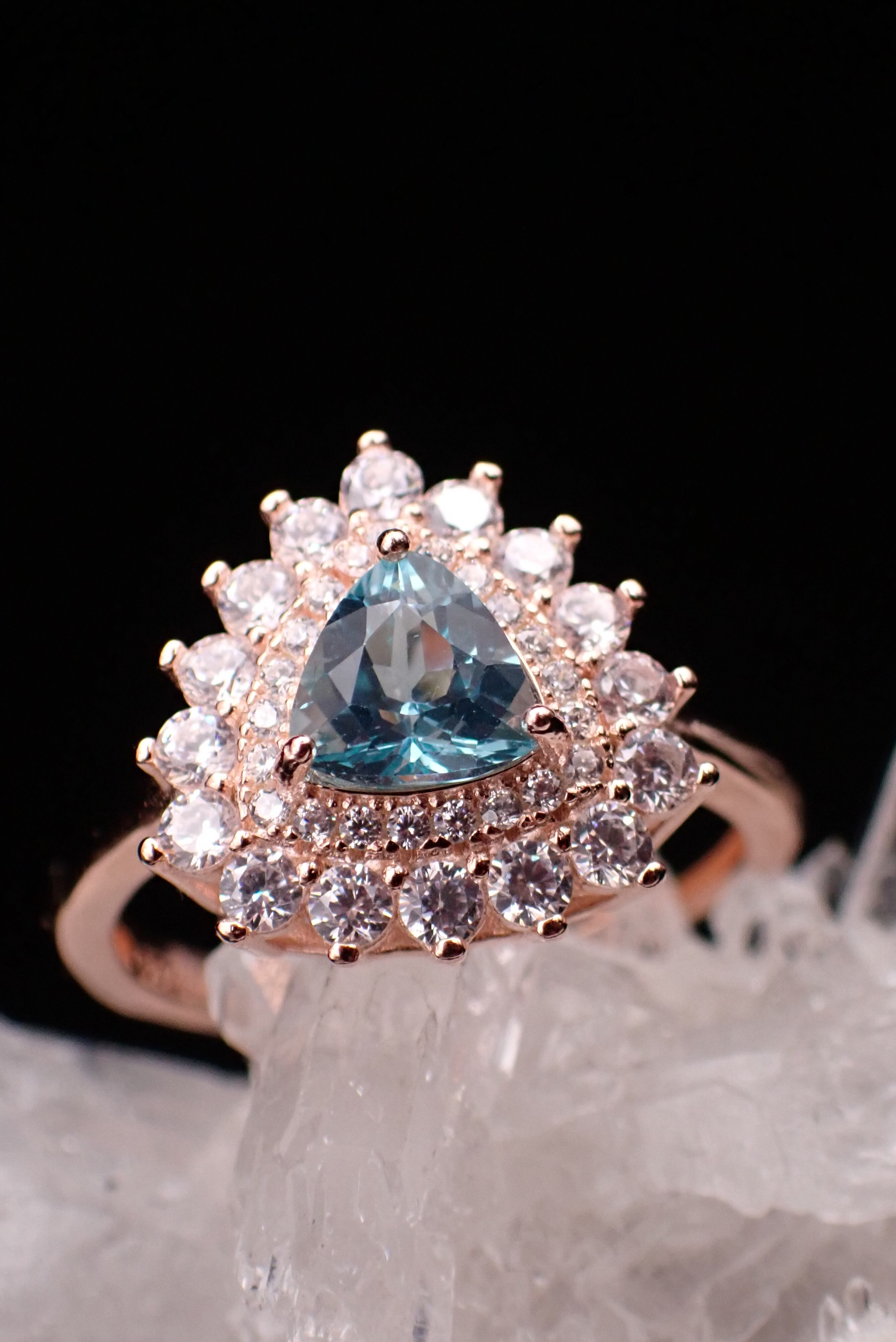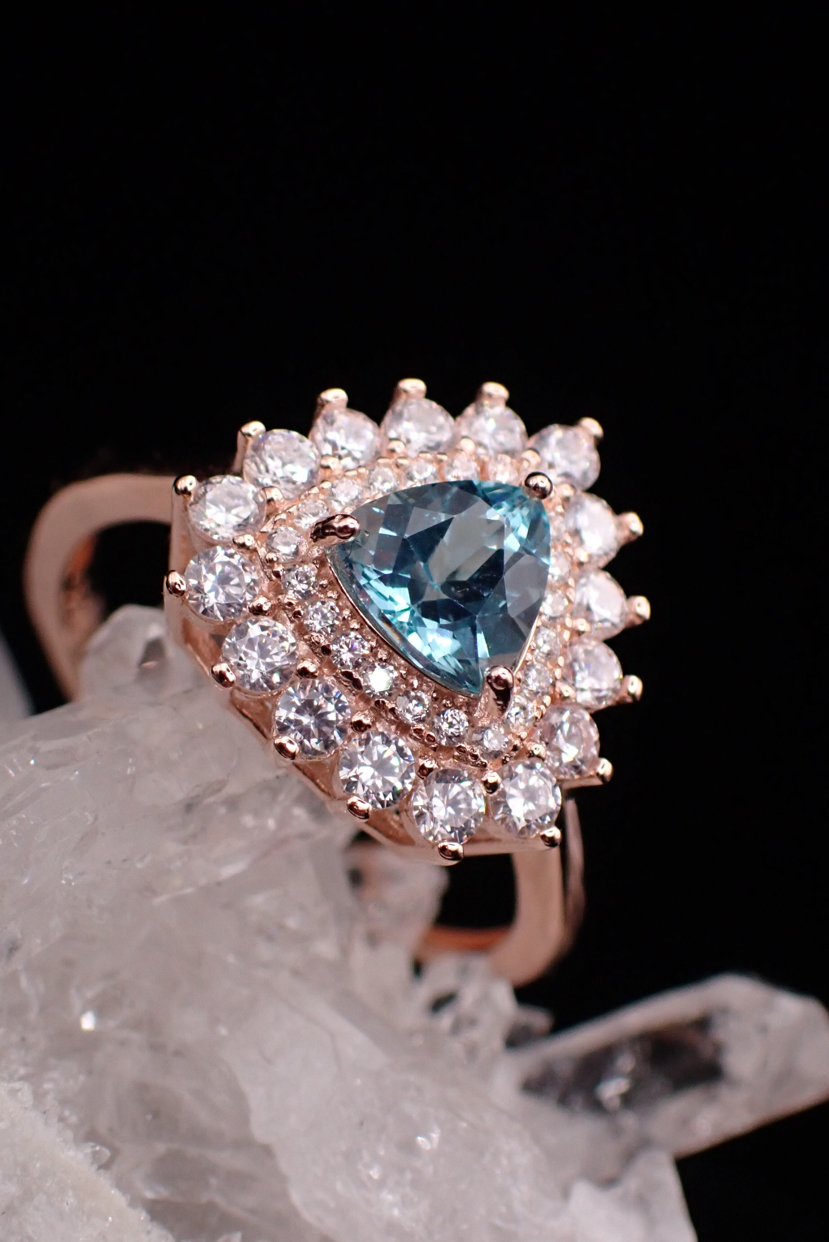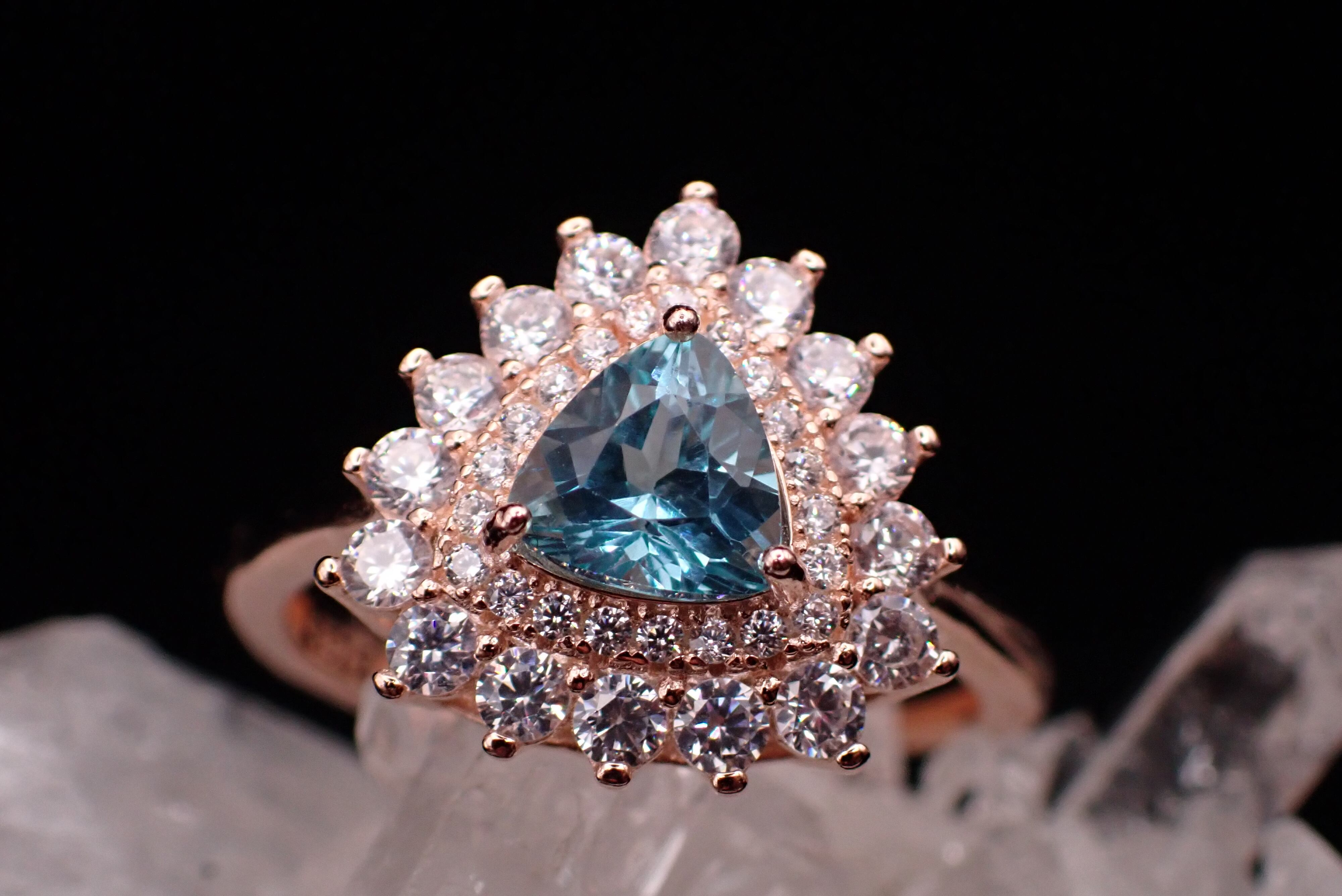 トリリアントカットのインクルージョンのないパライバカラーのアパタイトが素晴らしいピースです。