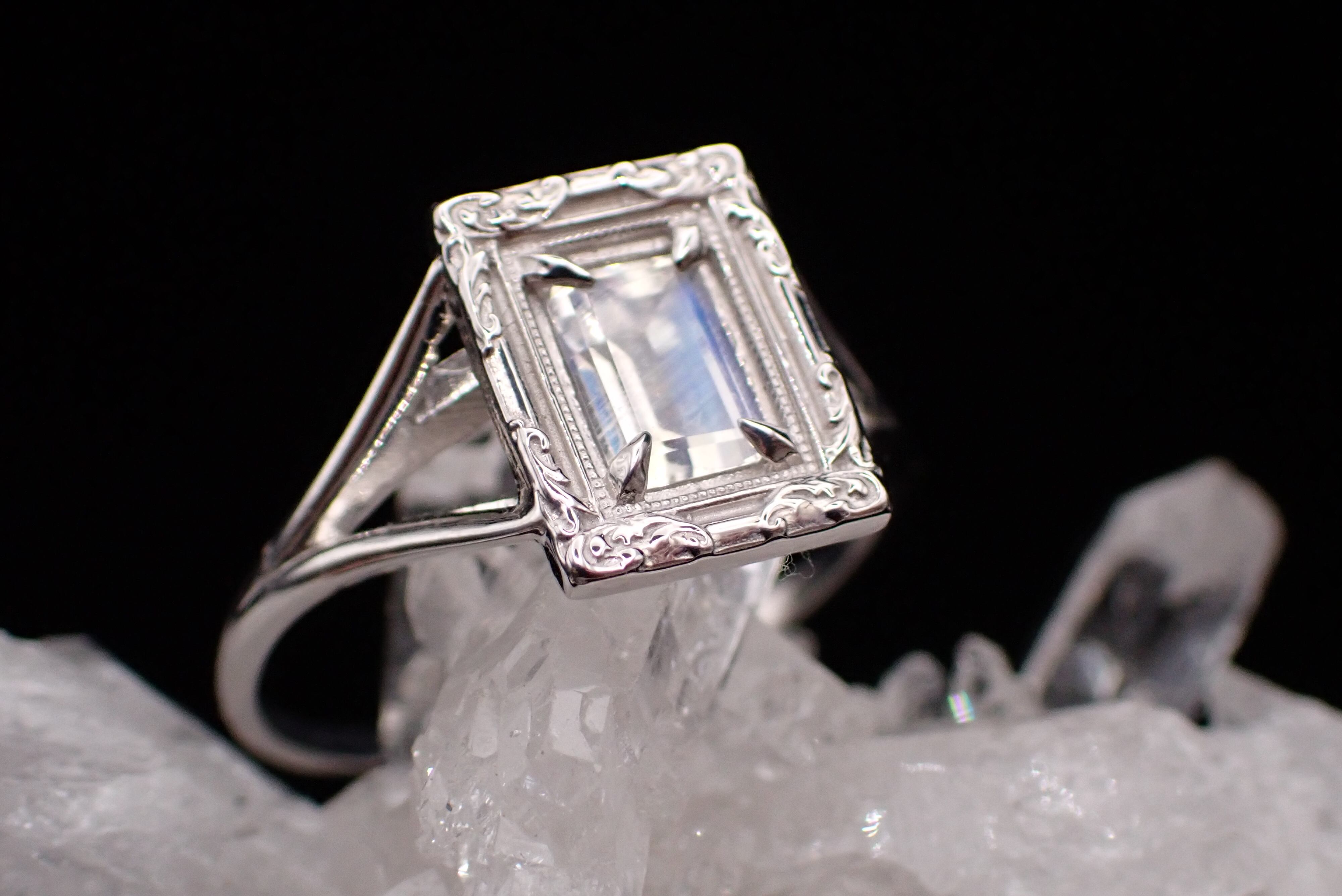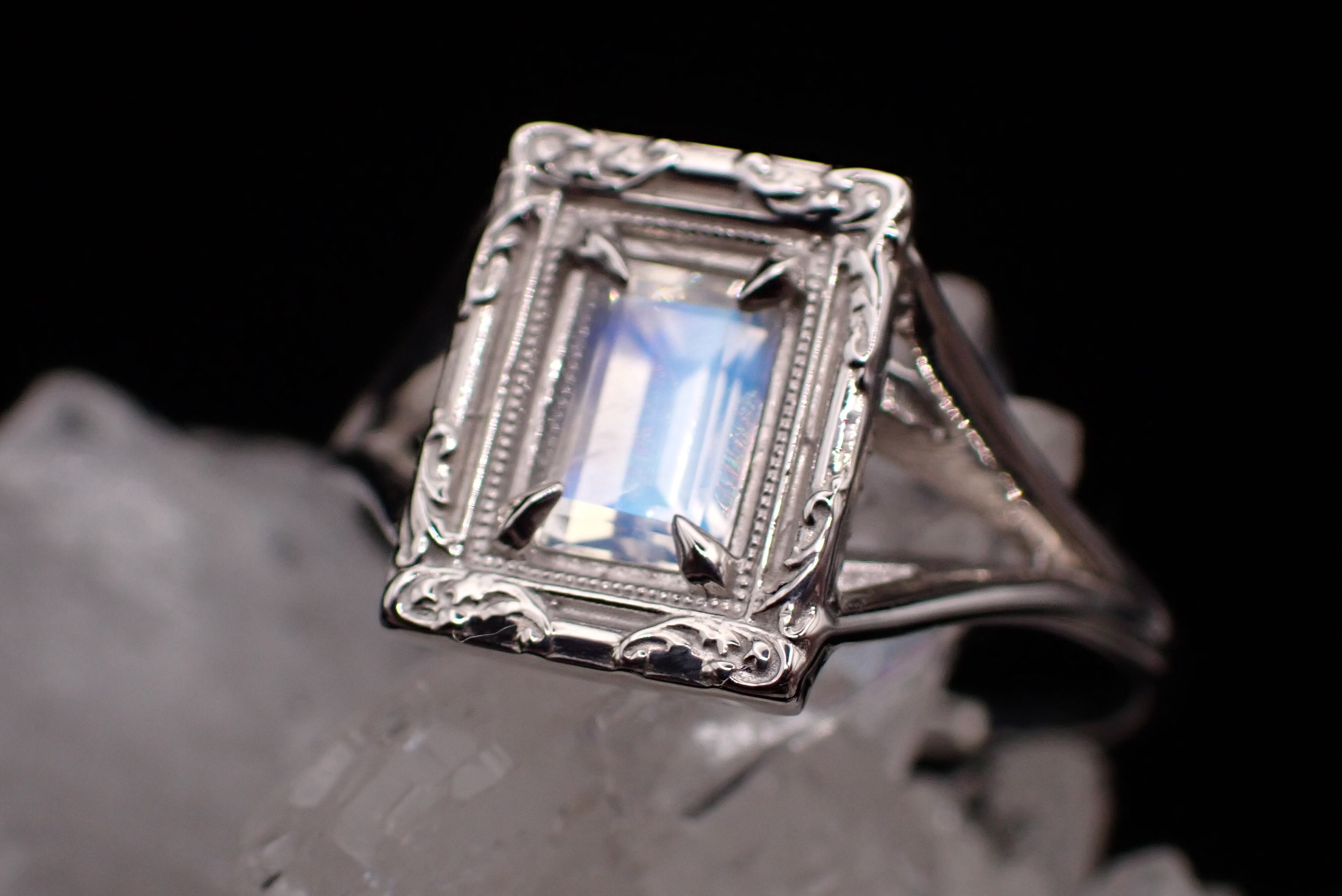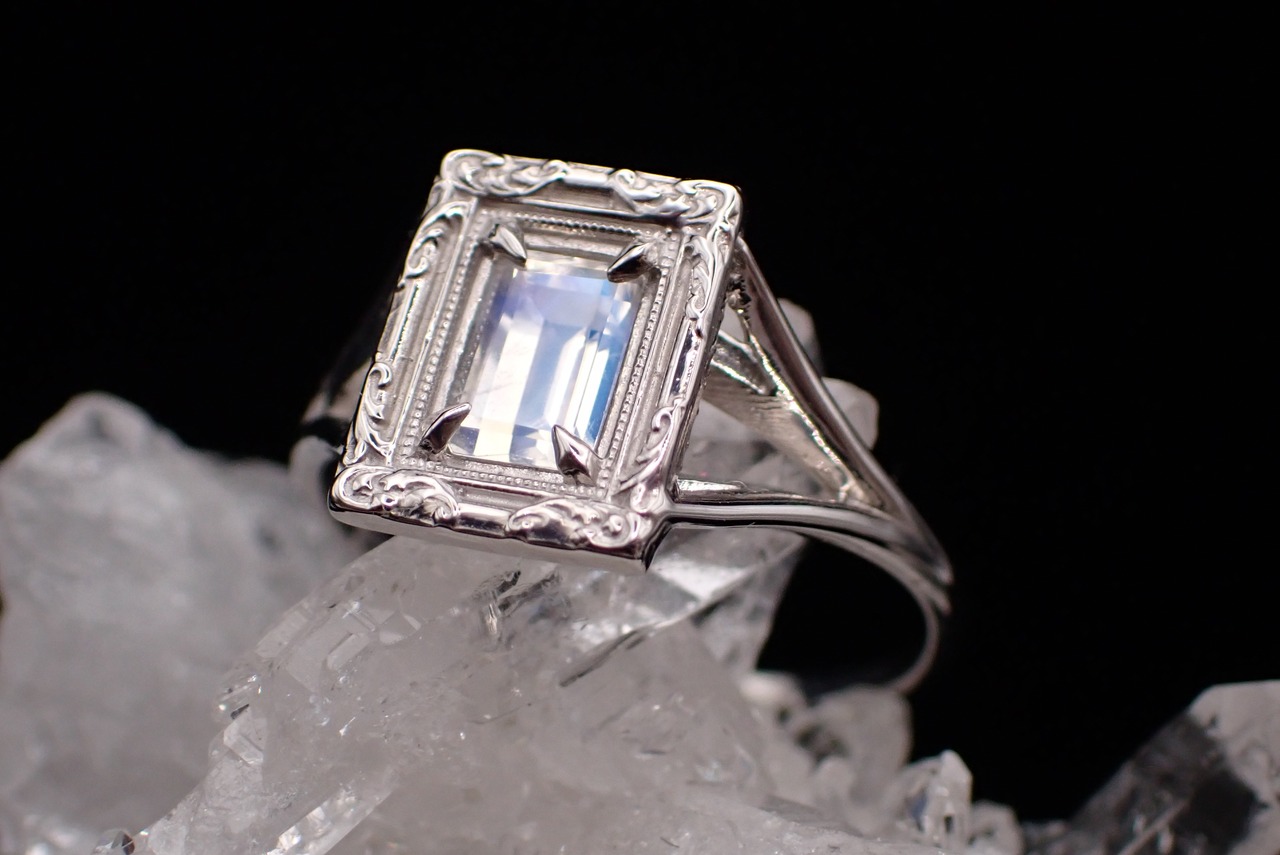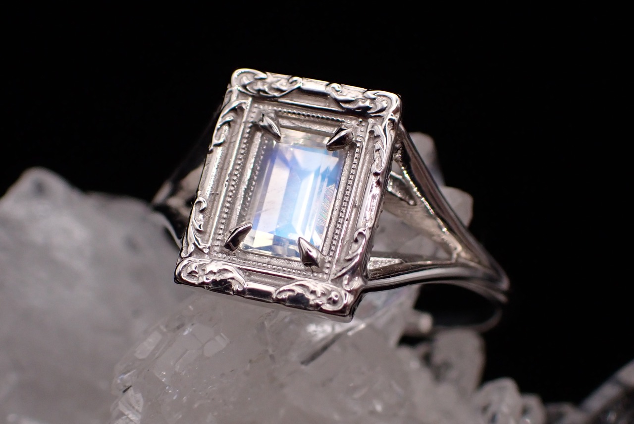 宝石そのものが肌に触れないように、光が入りやすいようにサイドを広く開けて輝きが最大限になるようにお作りしております。