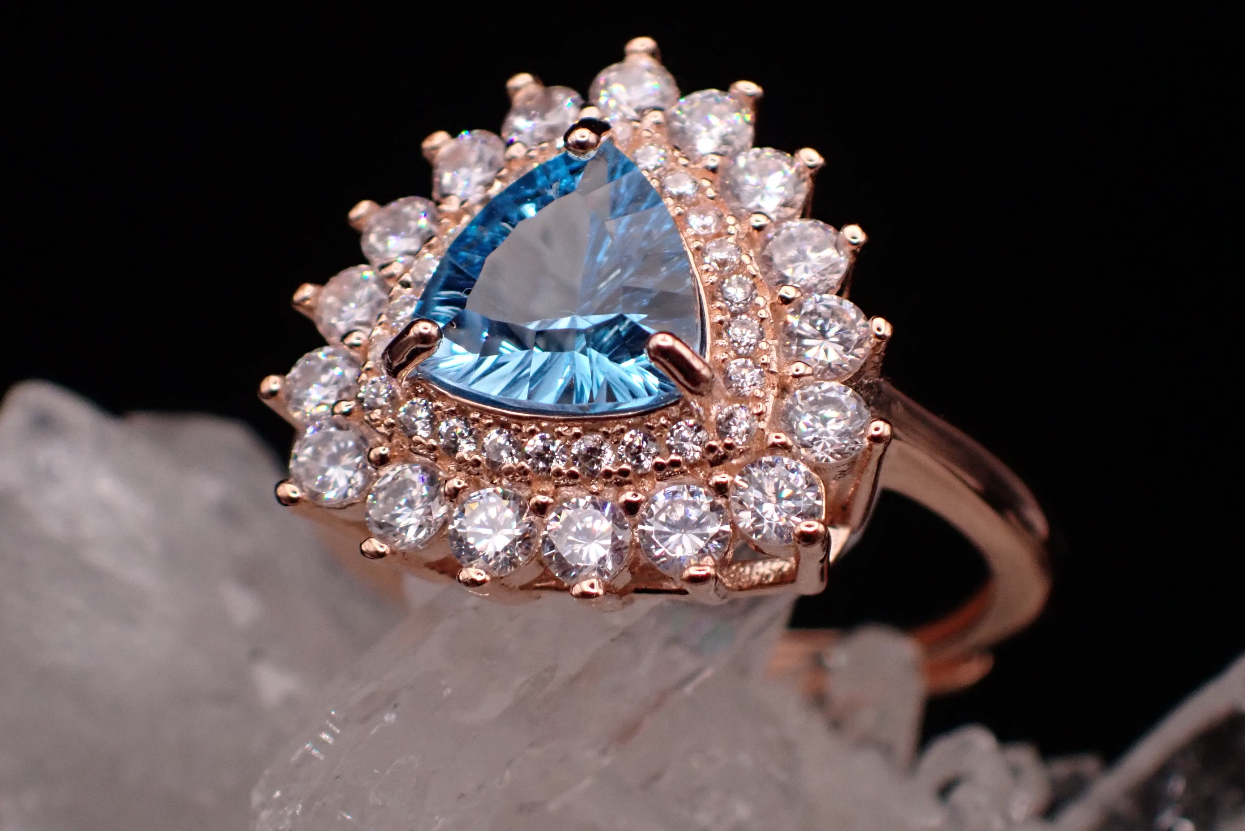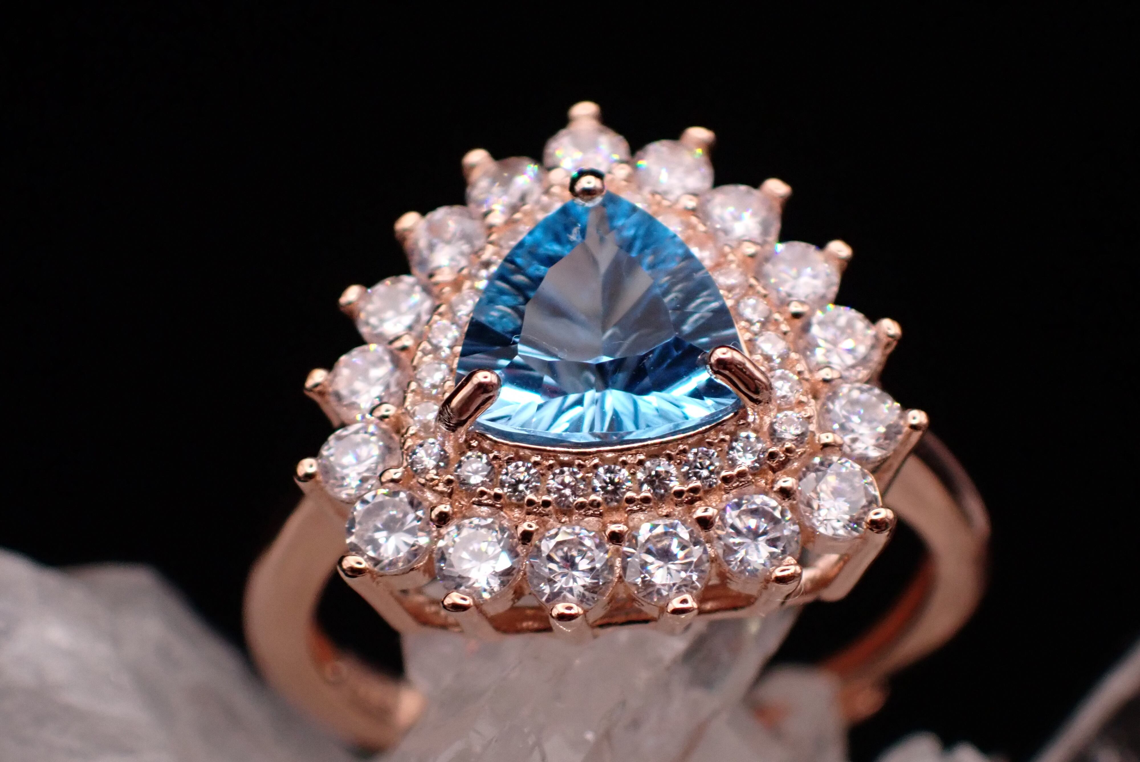 トリリアントカットのブルートパーズとして色むらもなく、青みのしっかりとした素晴らしいピースです。